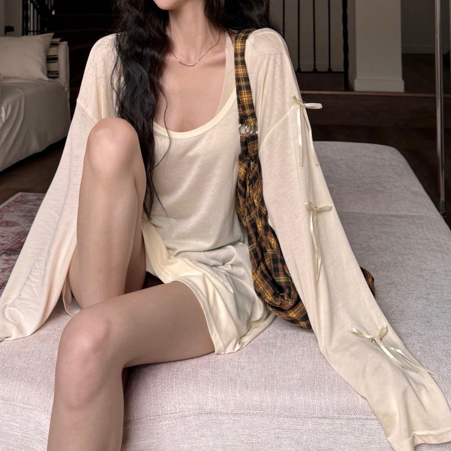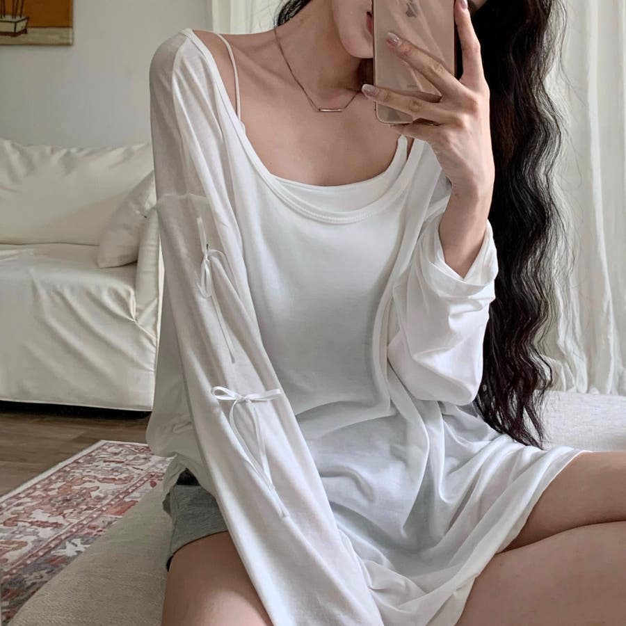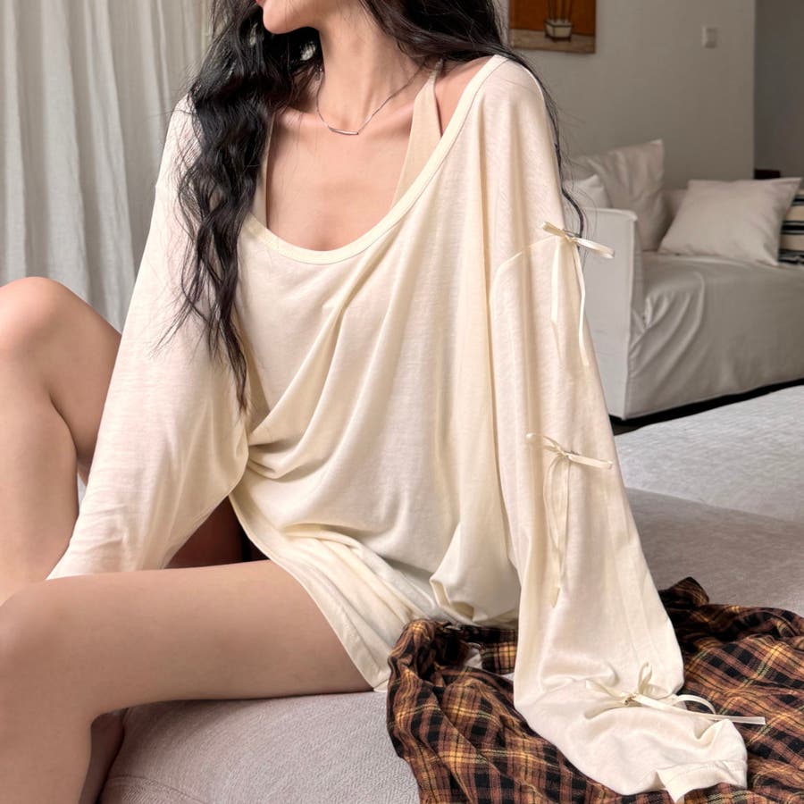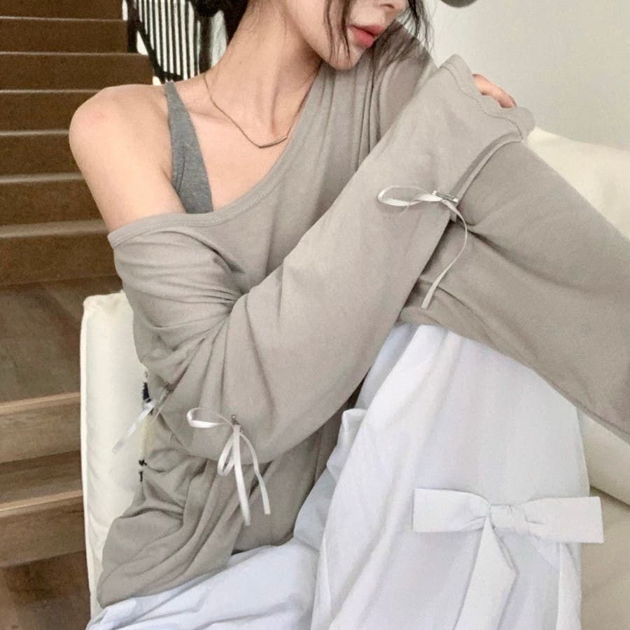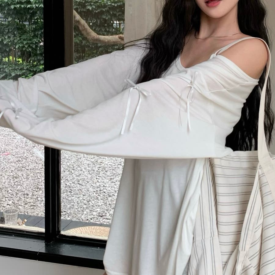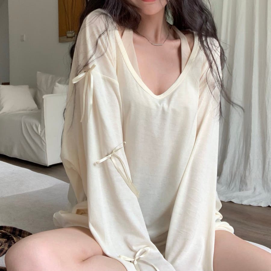 スリーブには可愛らしいリボンが施され、いつものコーデにフェミニンさをプラスします。