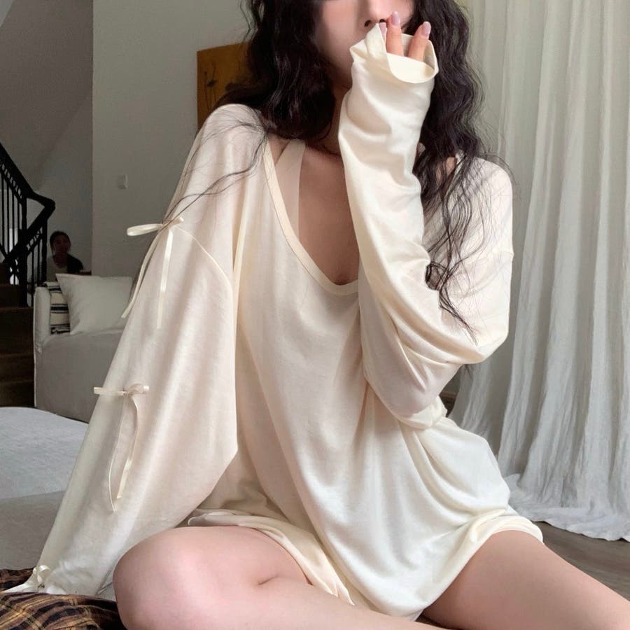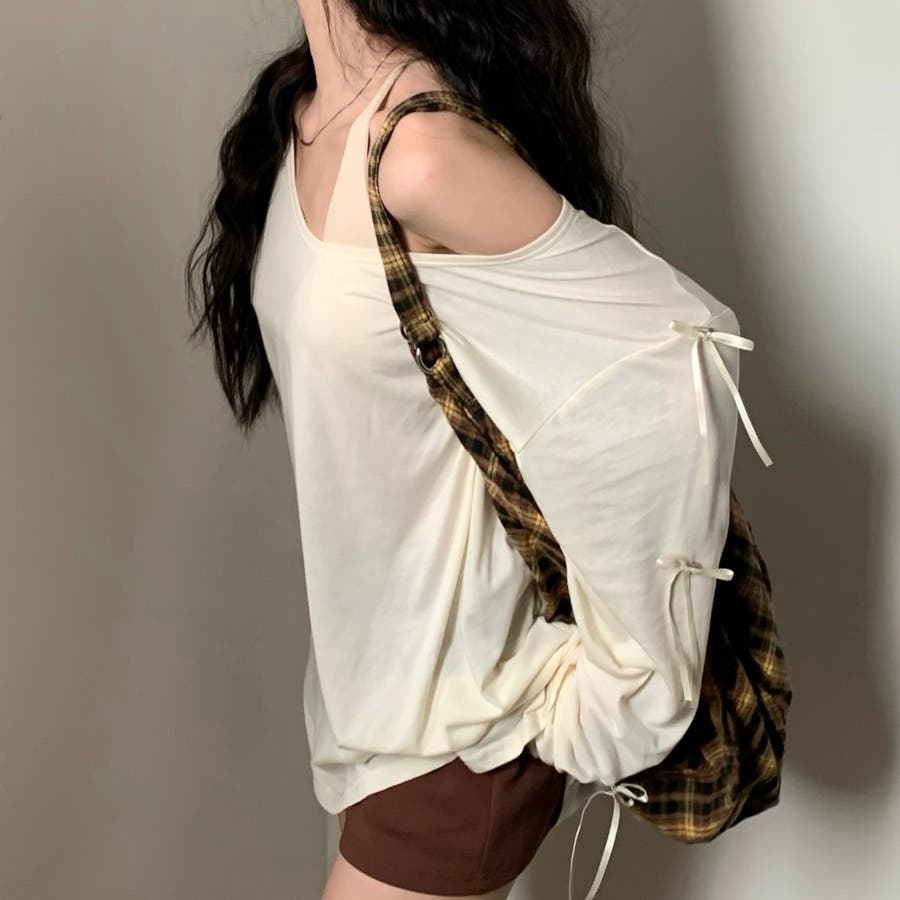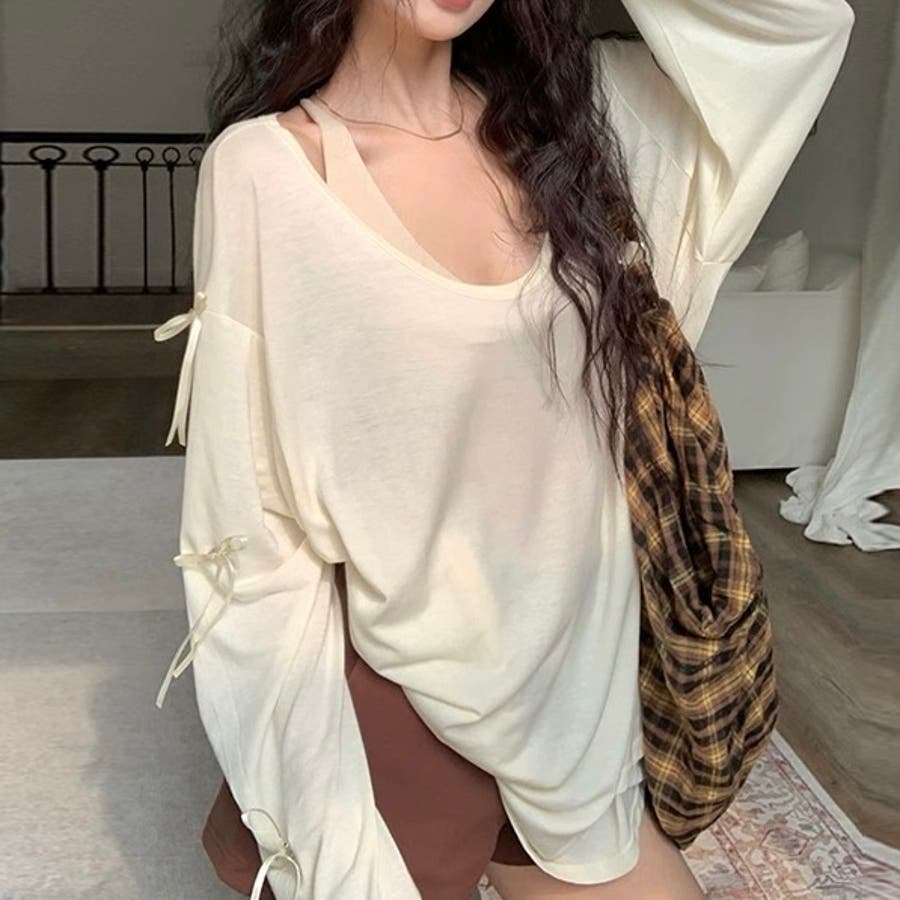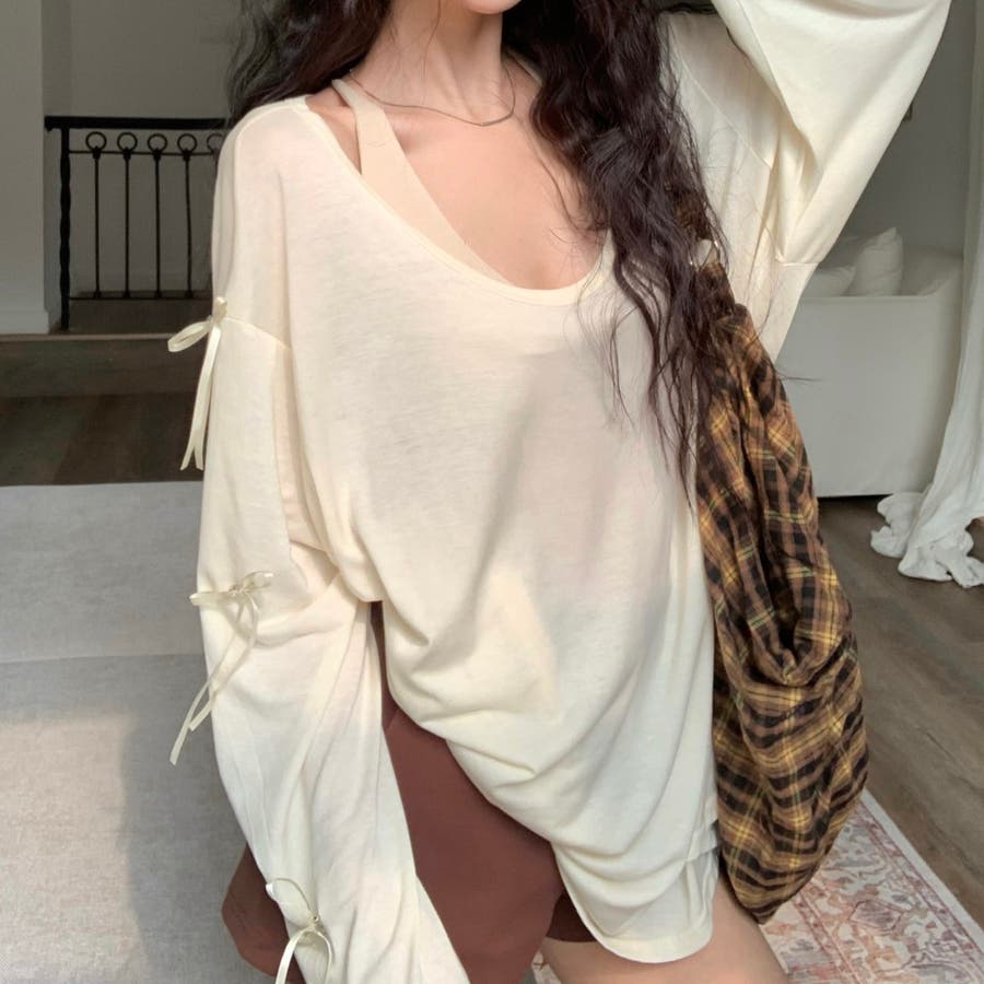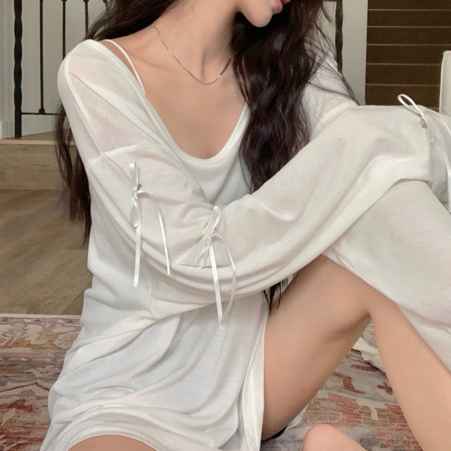 大人 カジュアル きれいめ 韓国ファッション 韓国コーデ Y2K オフィスカジュアル トップス 透け感 シアー感 Uネック 長袖 ロンT 無地 春服 夏服 秋服 10代 20代 30代 40代 春 夏 秋