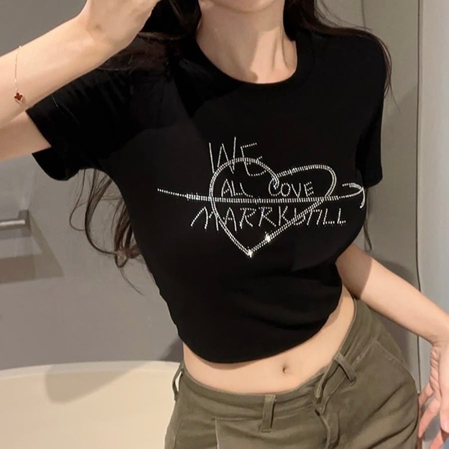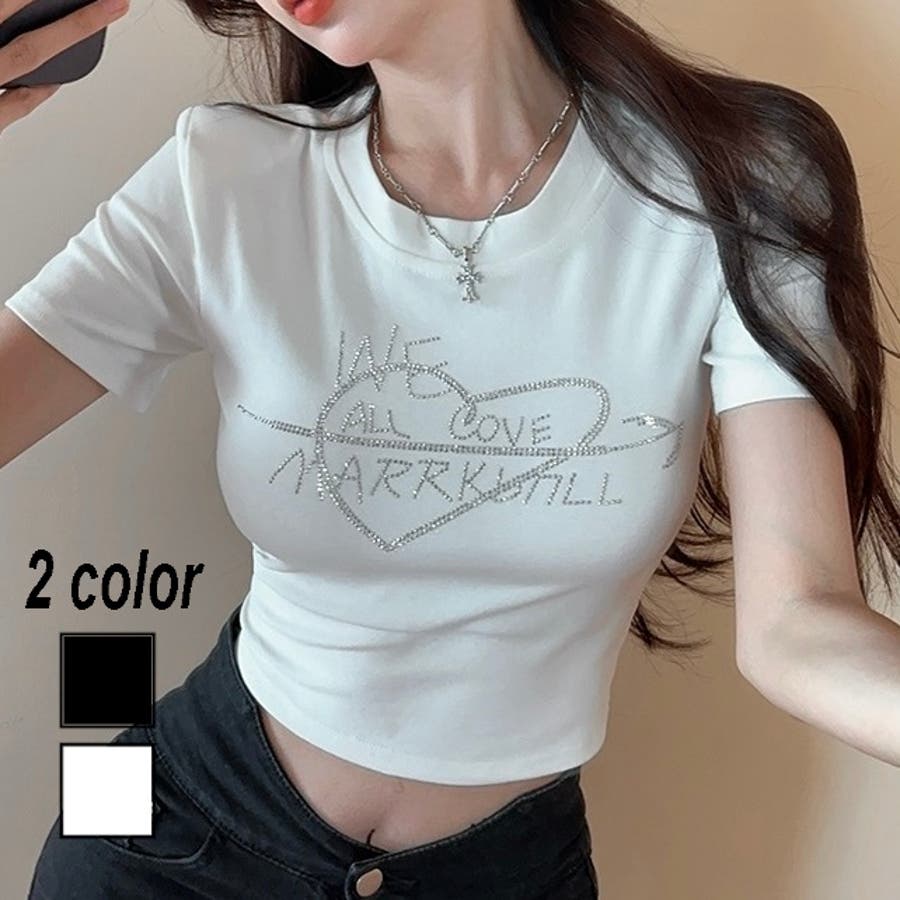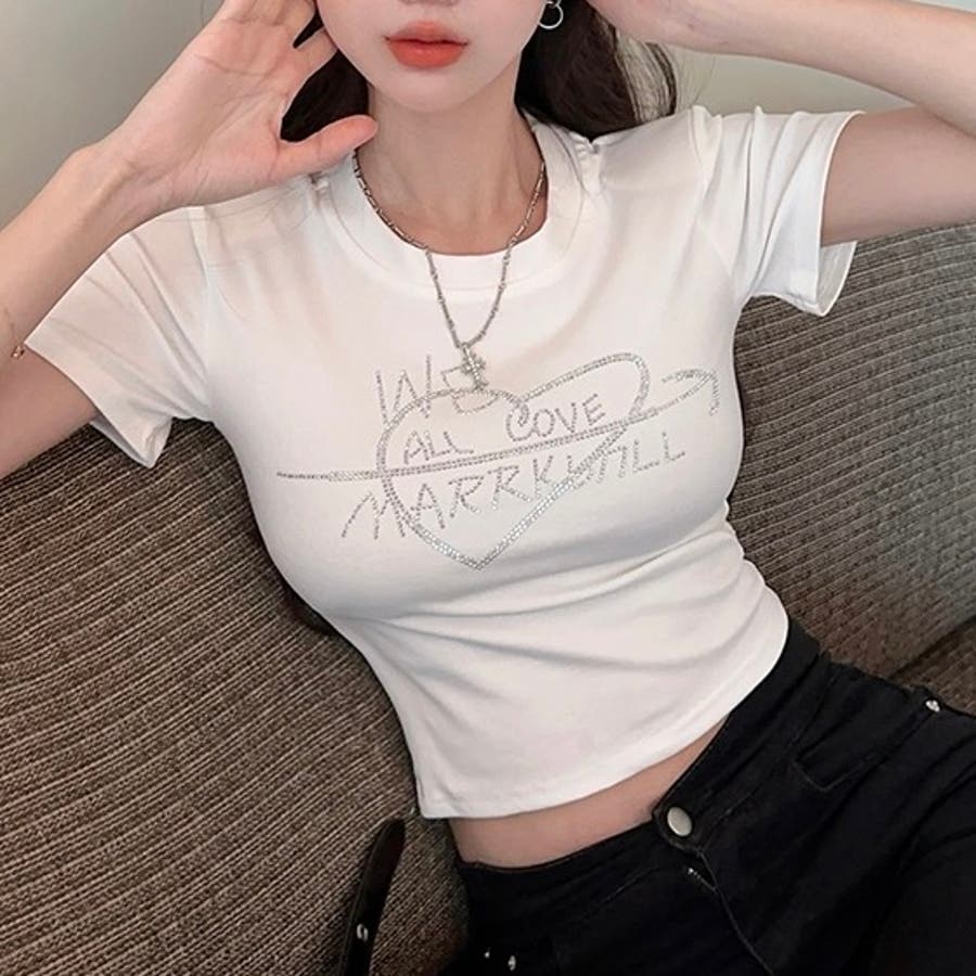 大人 カジュアル きれいめ 韓国ファッション 韓国コーデ Y2K トップス 半袖 ビジュー コンパクト キラキラ ショート丈 オフィスカジュアル 春服 夏服 秋服 10代 20代 30代 40代 春 夏 秋