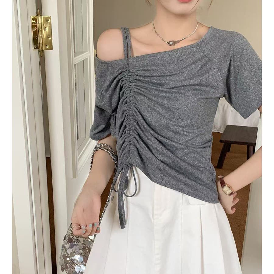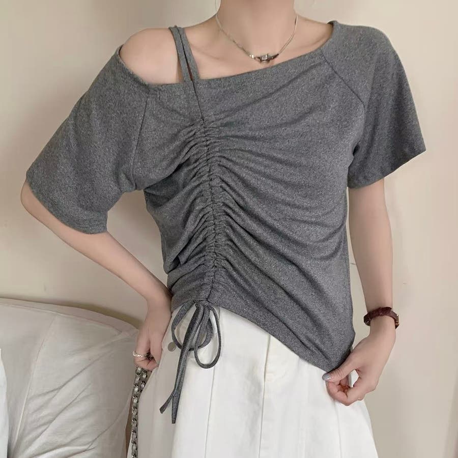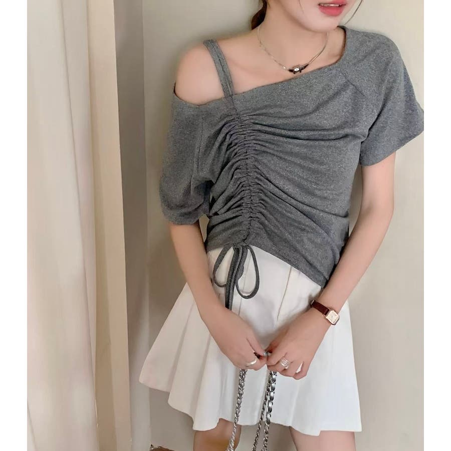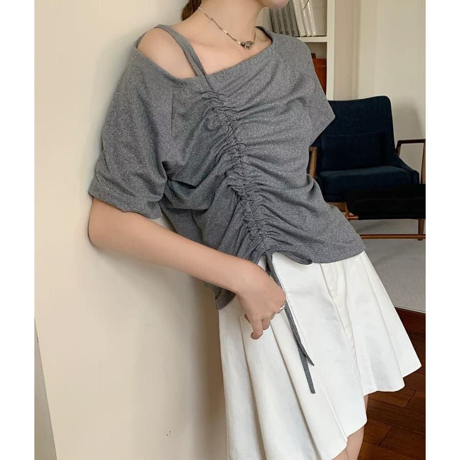 ドローストリング肩見せトップス