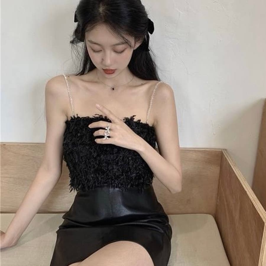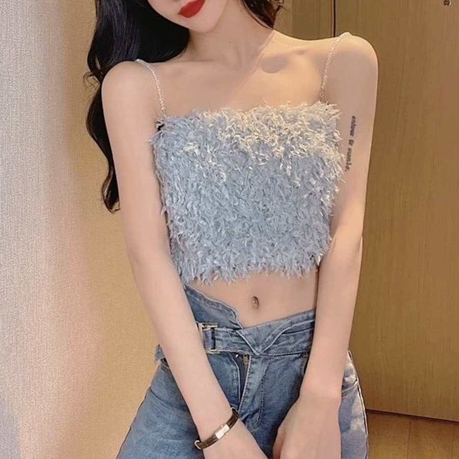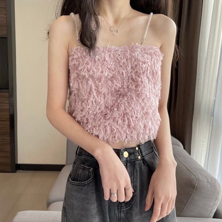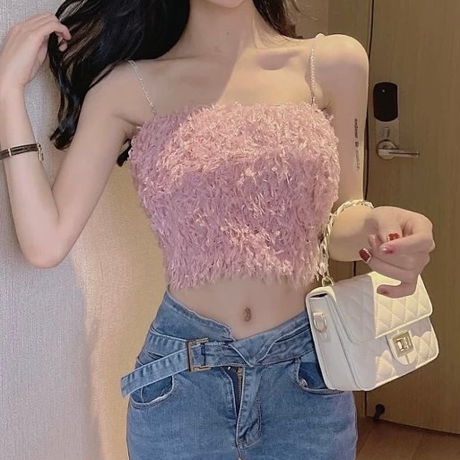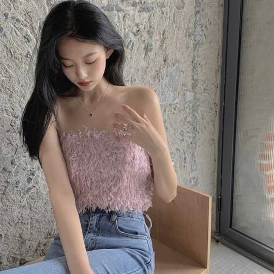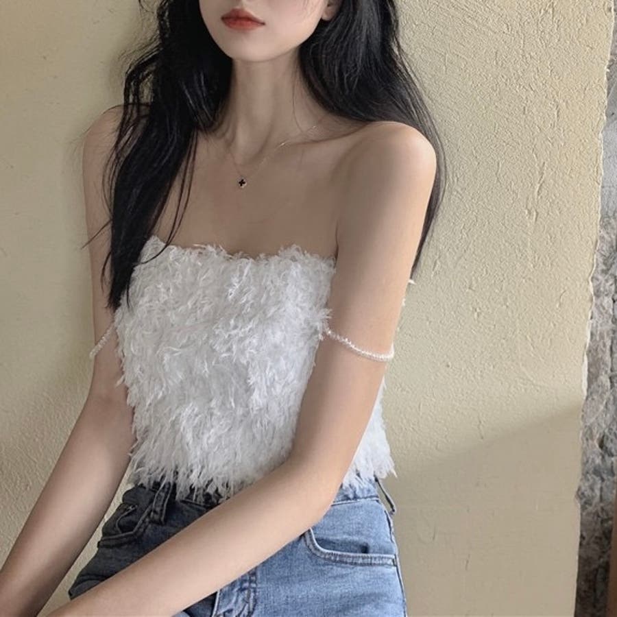 大人 カジュアル きれいめ 韓国ファッション 韓国コーデ Y2K キャミソール ベアトップ ふわふわ シャギー オフィスカジュアル 春服 夏服 秋服 10代 20代 30代 40代 春 夏 秋