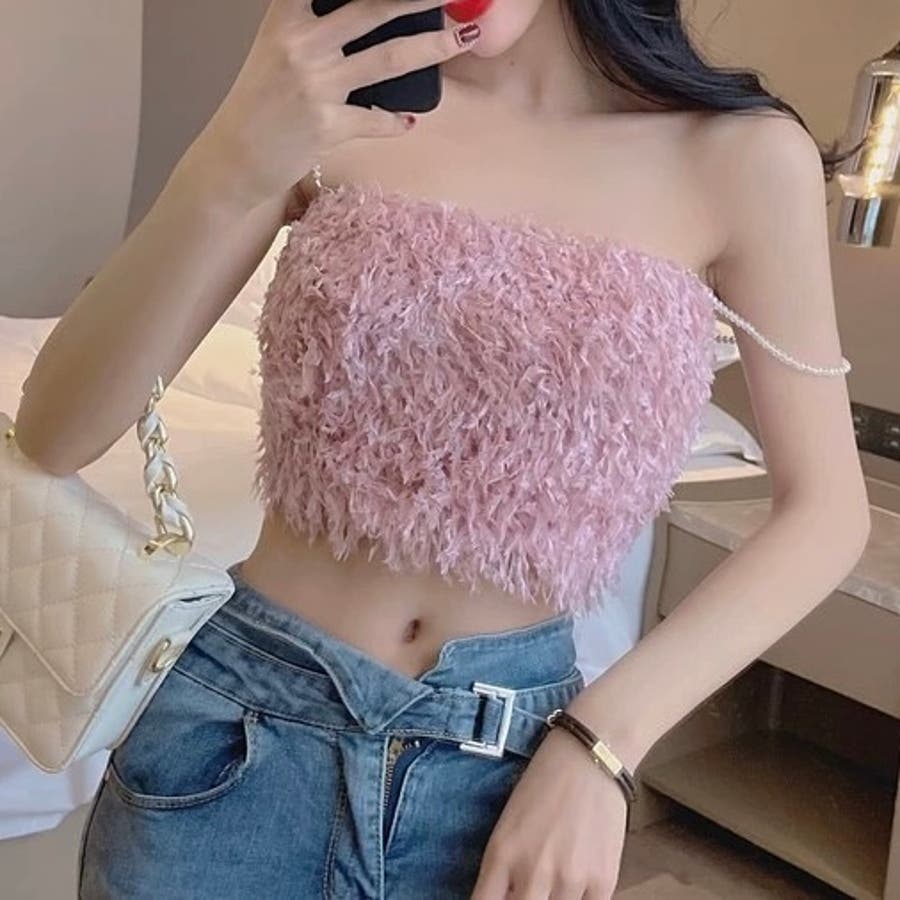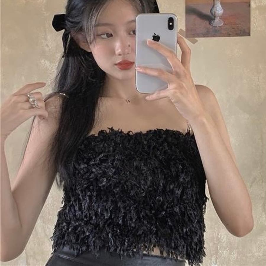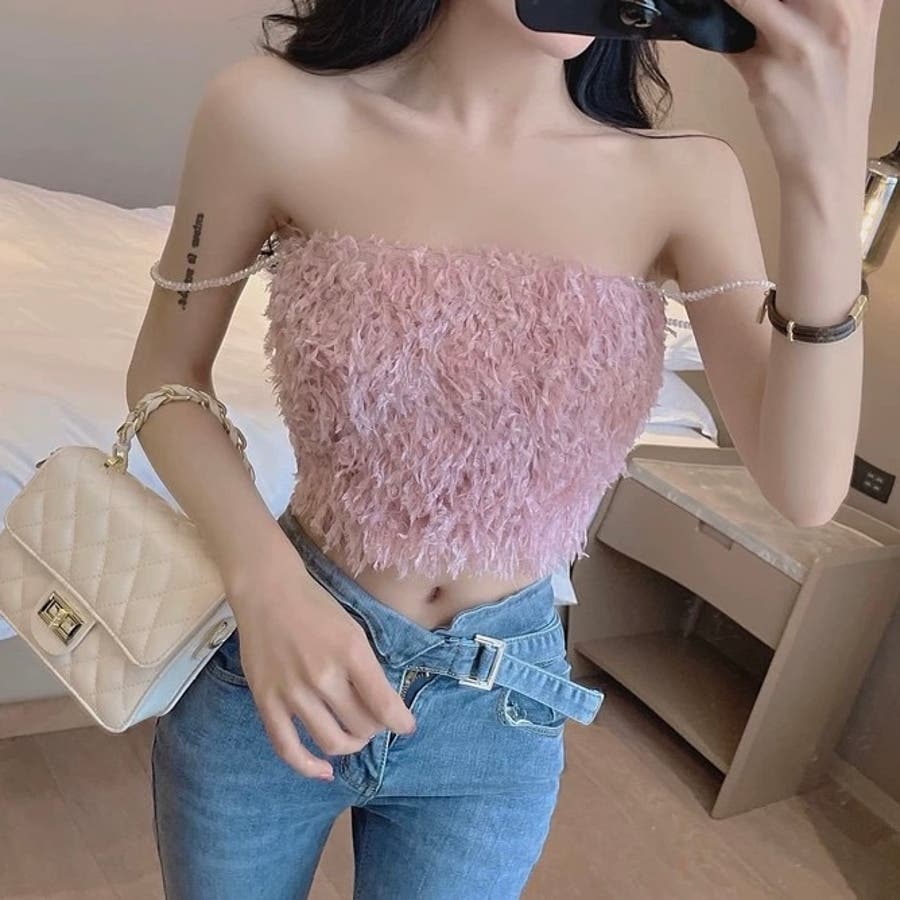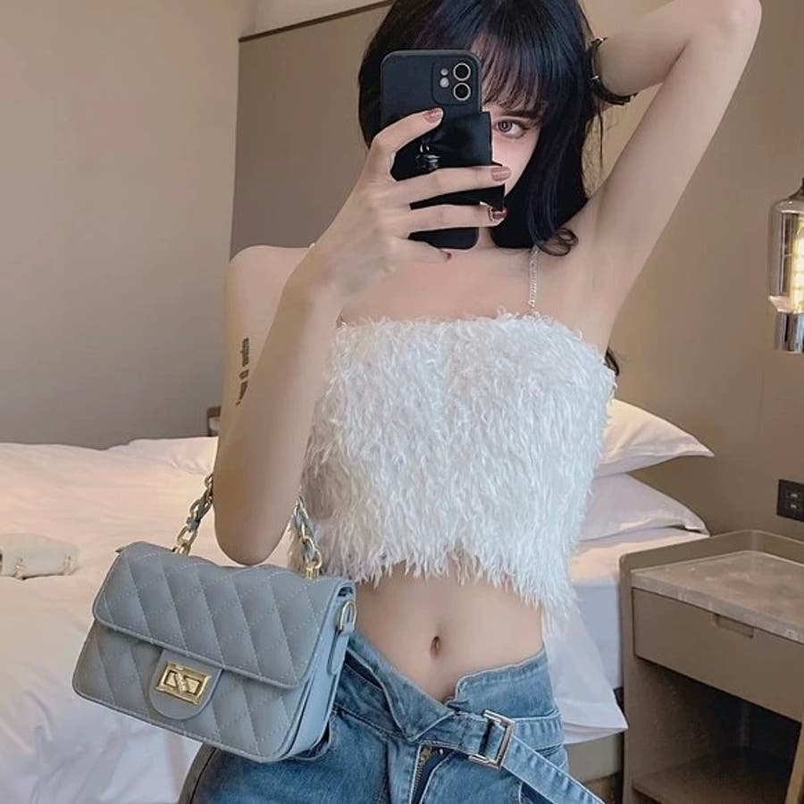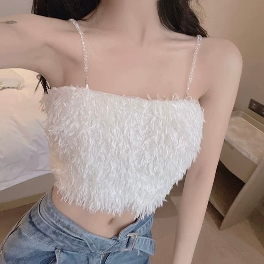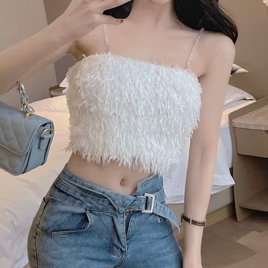 大人 カジュアル きれいめ 韓国ファッション 韓国コーデ Y2K キャミソール ベアトップ ふわふわ シャギー オフィスカジュアル 春服 夏服 秋服 10代 20代 30代 40代 春 夏 秋