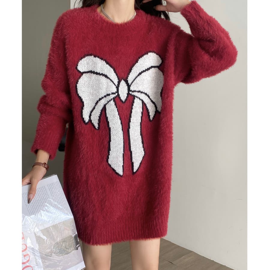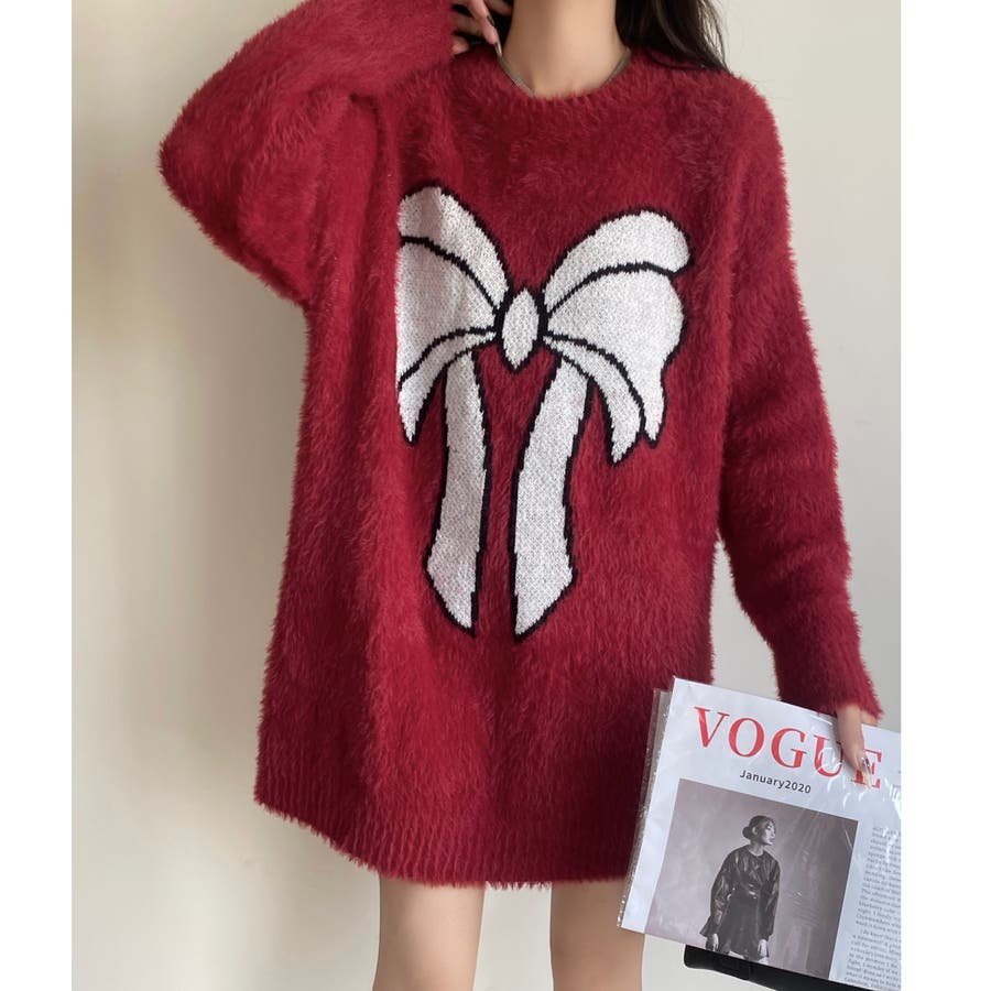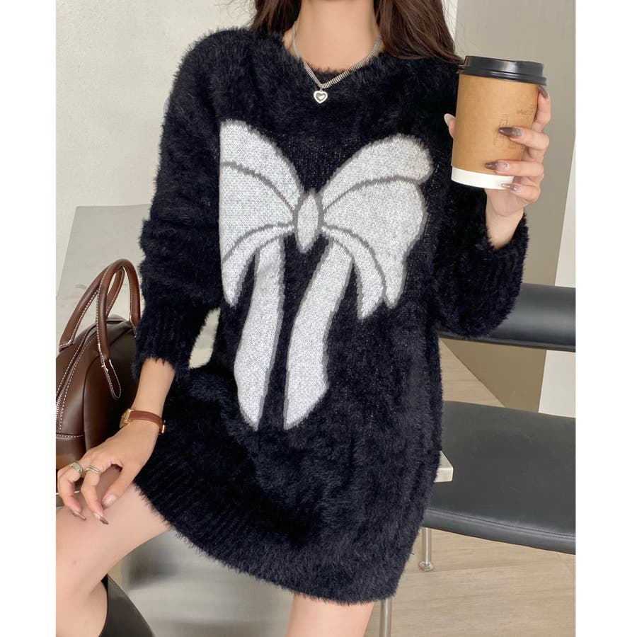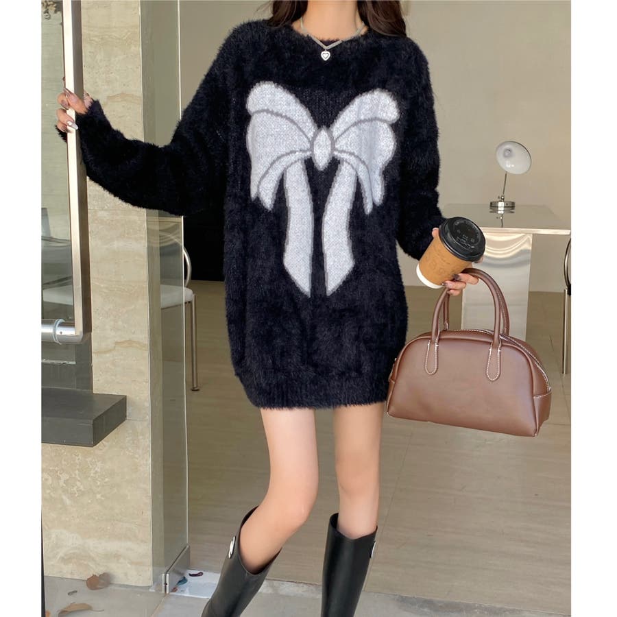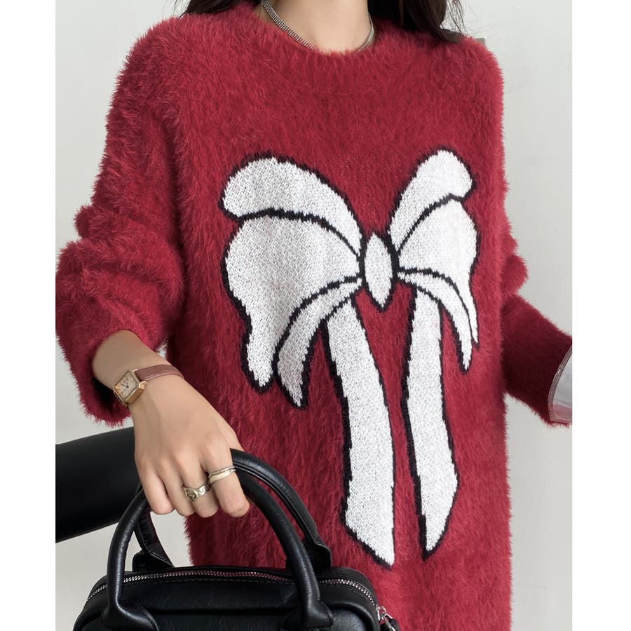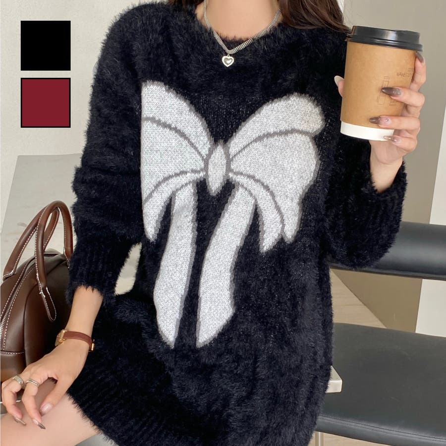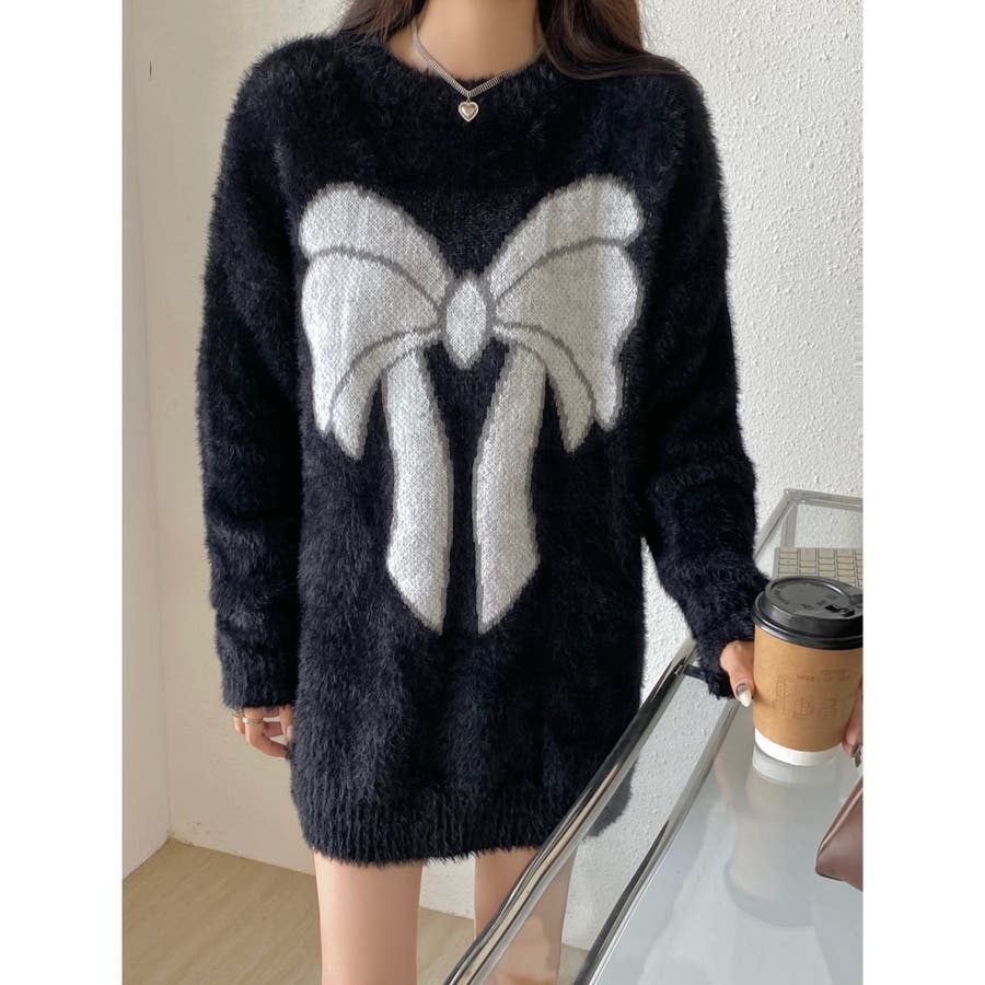 大きなリボンが目を引く、ふわふわとしたシャギーニットが登場!
