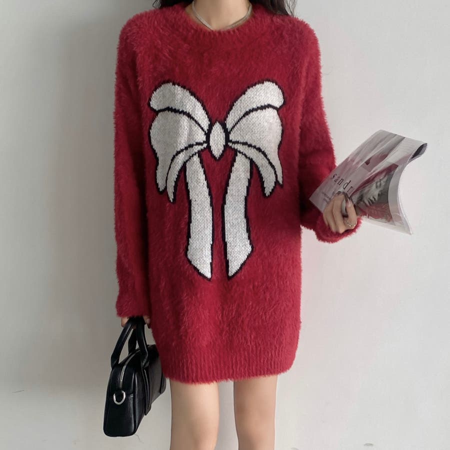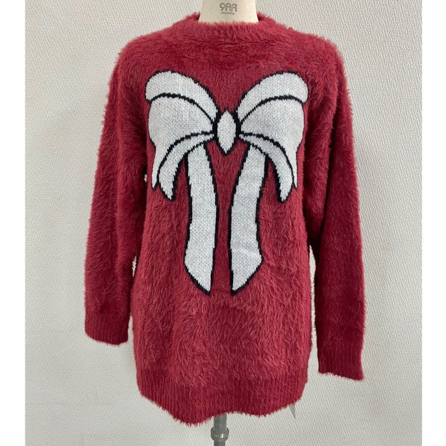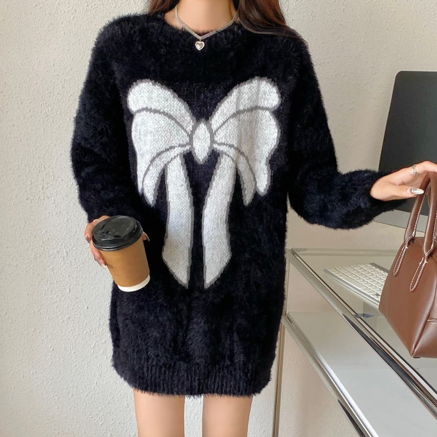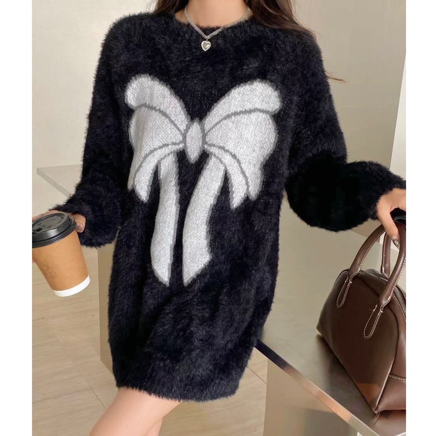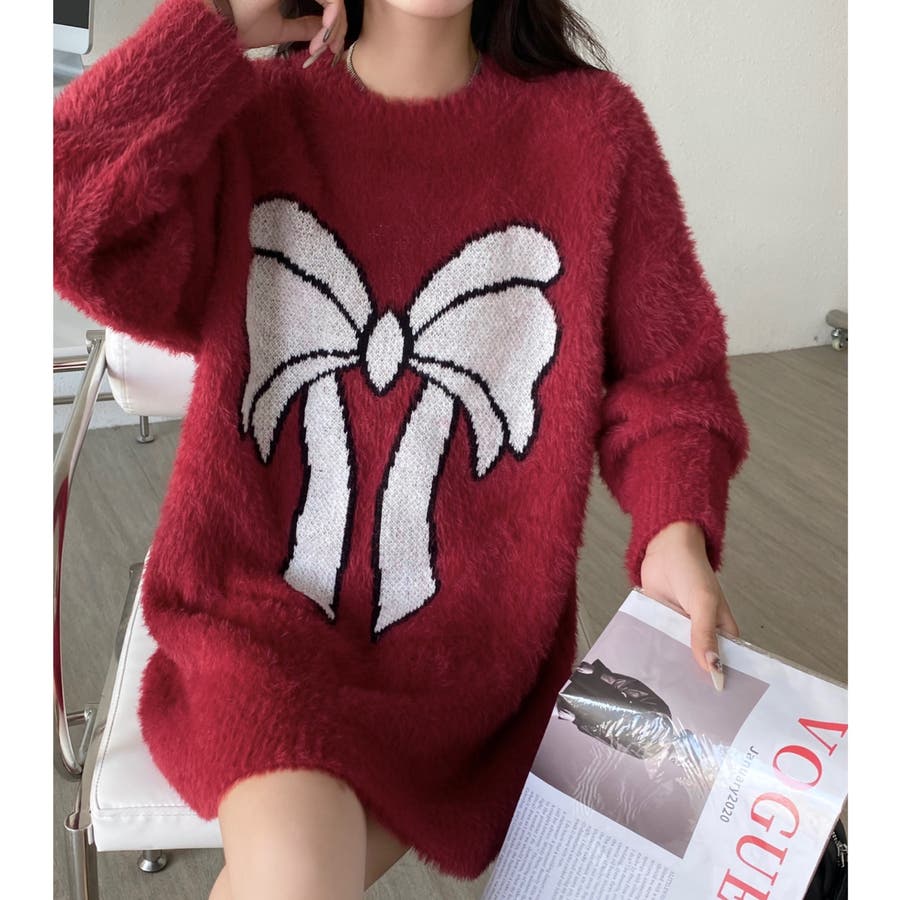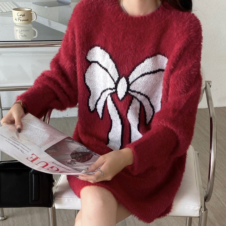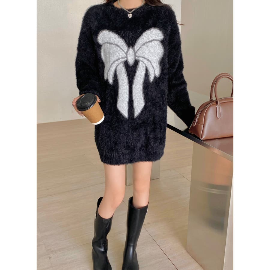 大きなリボンが目を引く、ふわふわとしたシャギーニットが登場!