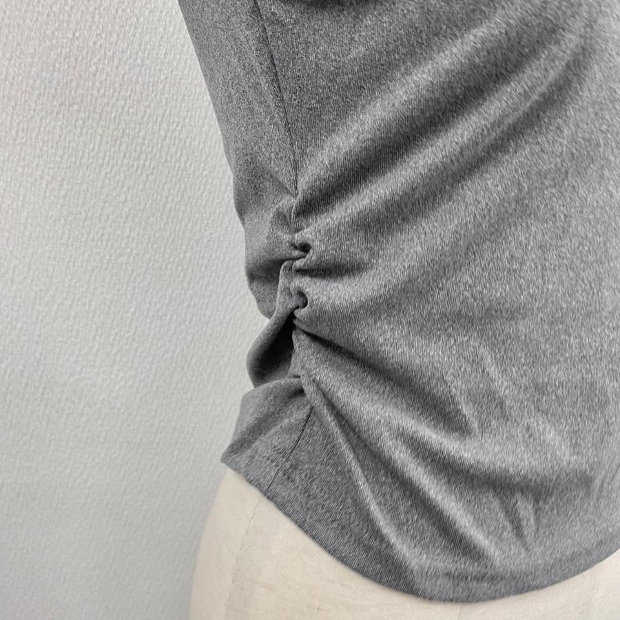 サイドに施されたシャーリングが、シルエットに動きを持たせ、体型を美しく見せる効果があります。