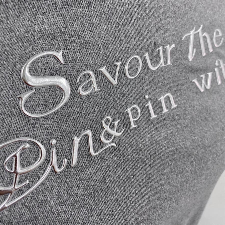 立体感のある箔プリントのロゴがフロントに施されており、キラキラと美しい輝きを放ちます。