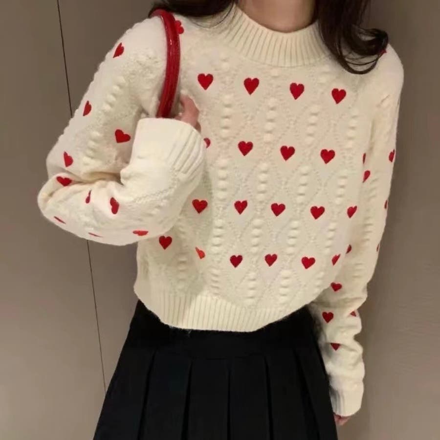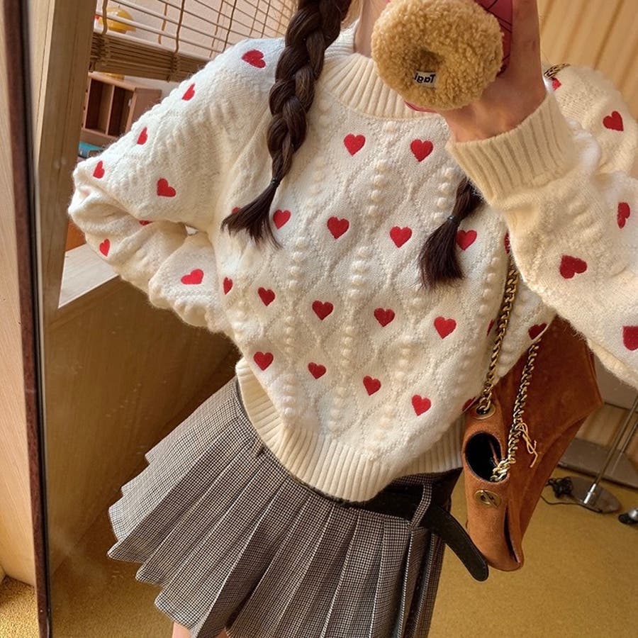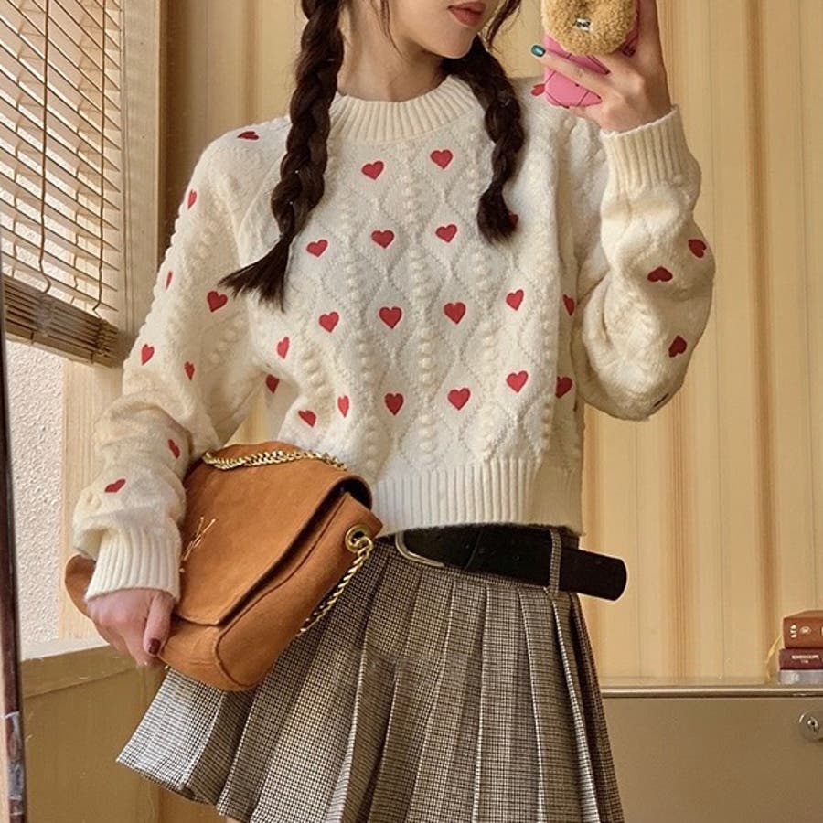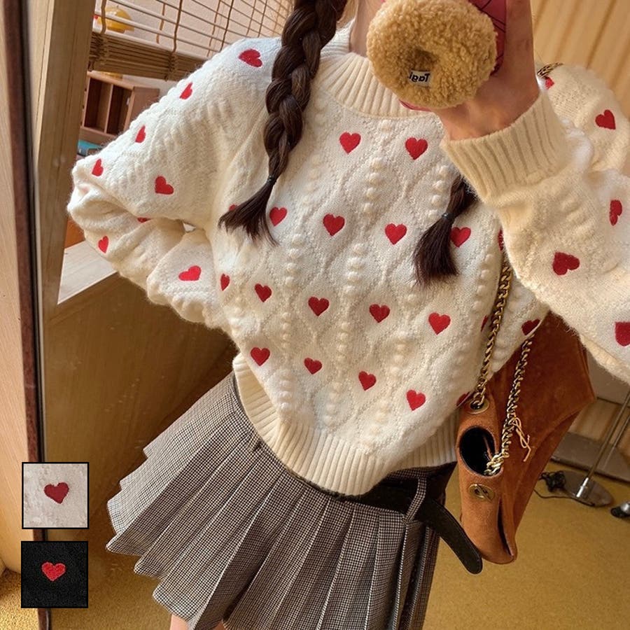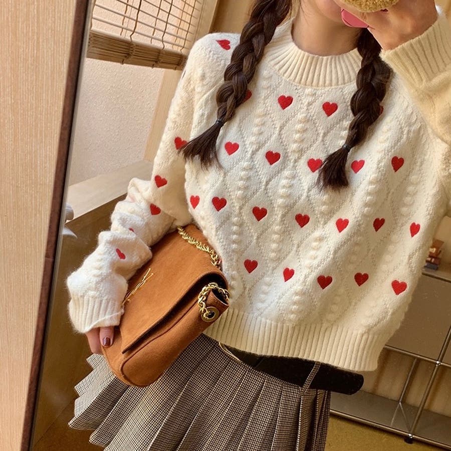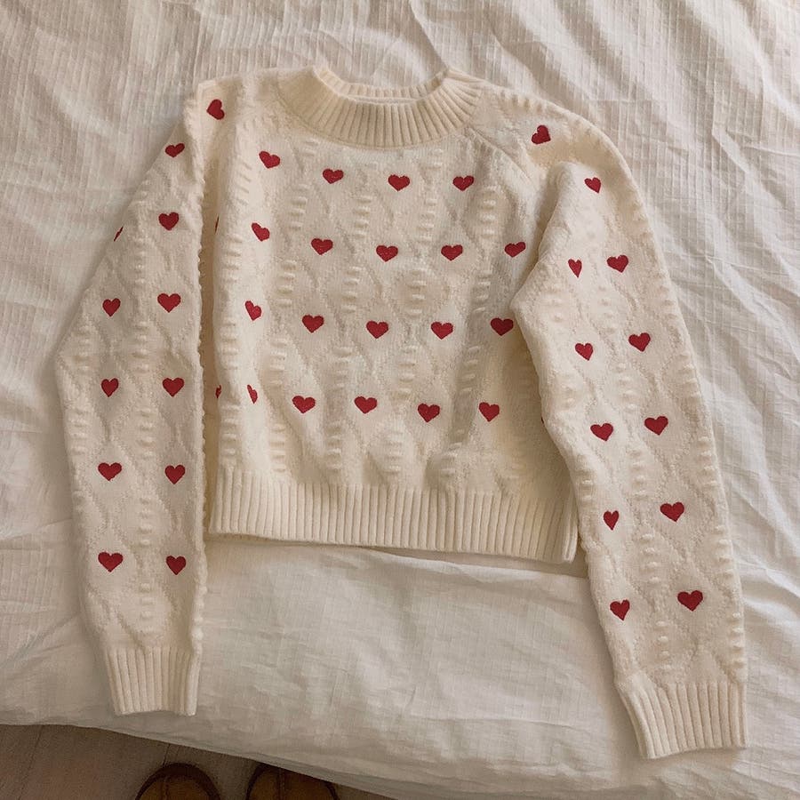 かわいさ満点のハート柄セーターで、秋冬のコーディネートにアクセントを!