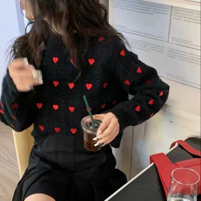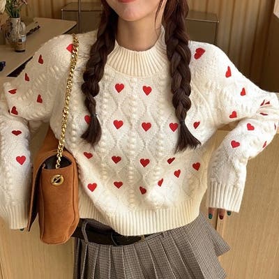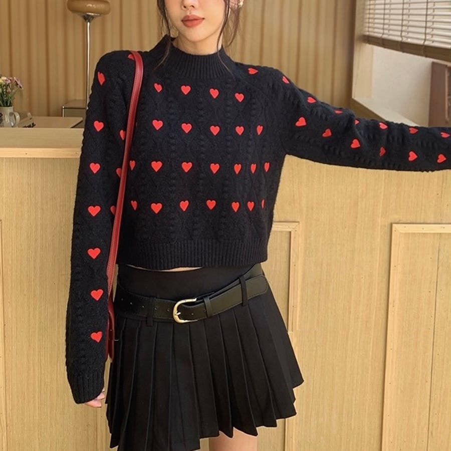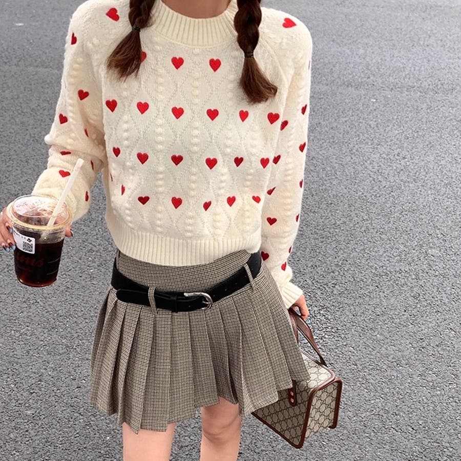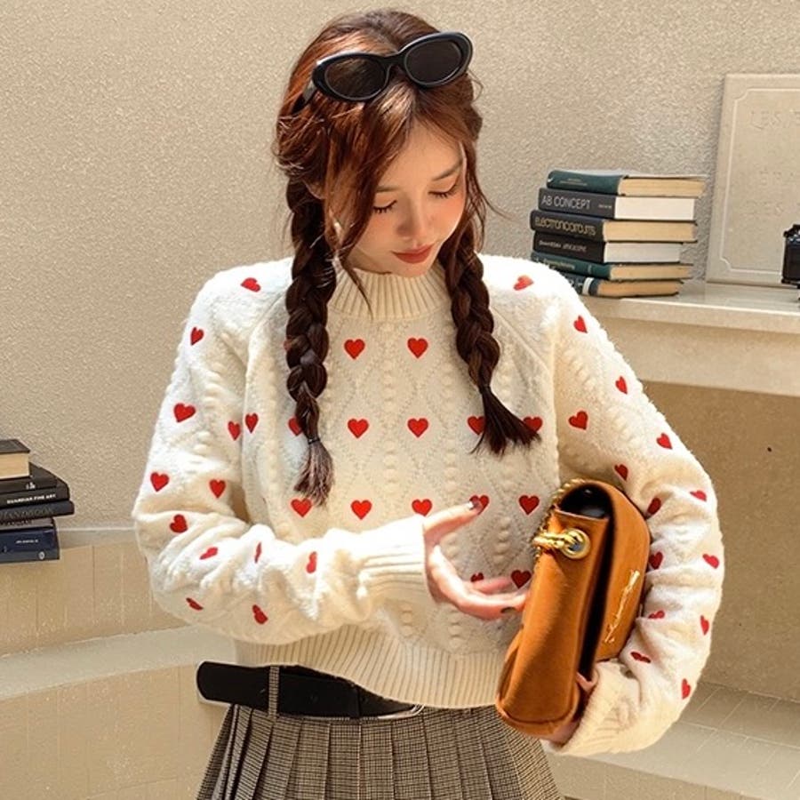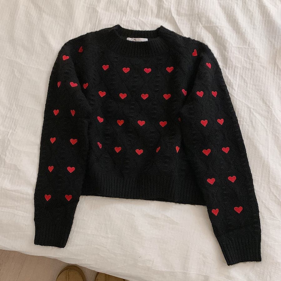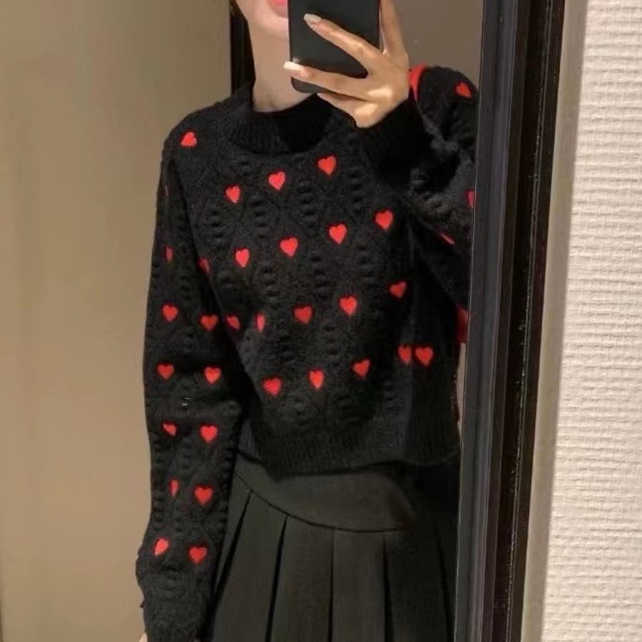 かわいさ満点のハート柄セーターで、秋冬のコーディネートにアクセントを!