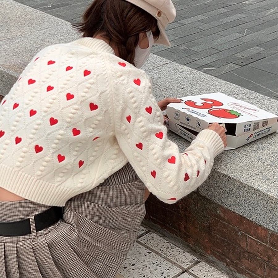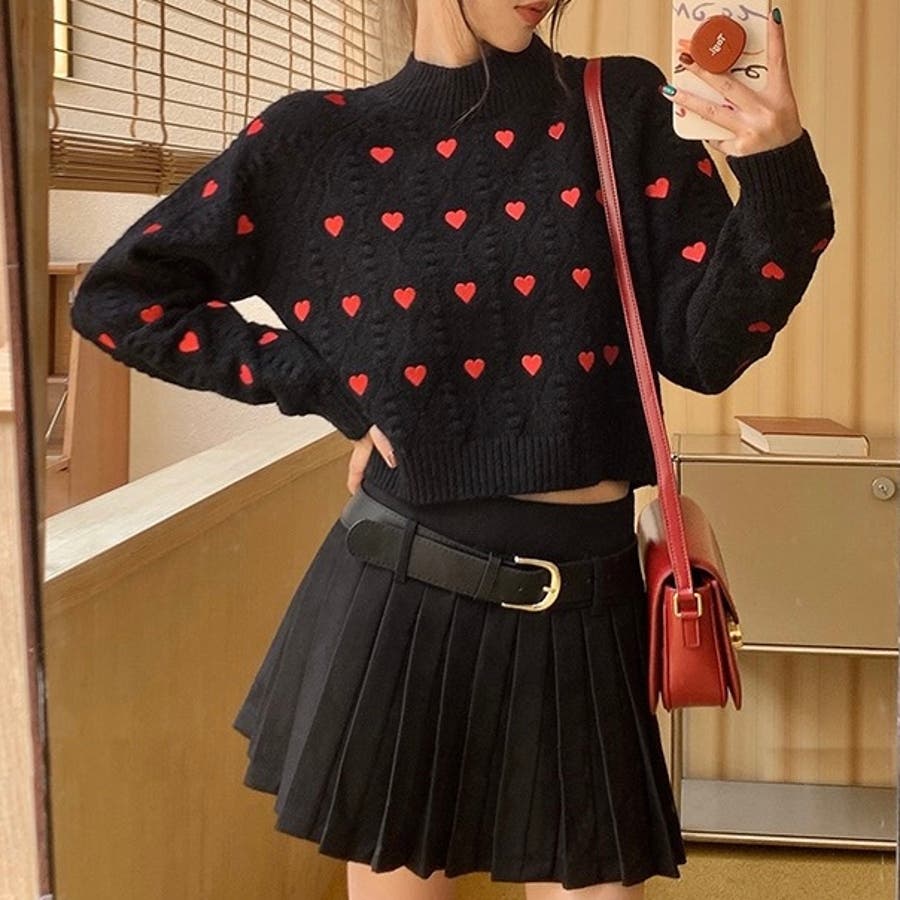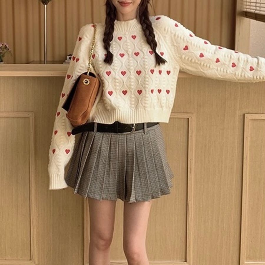大人 カジュアル きれいめ 韓国ファッション 韓国コーデ ニット ハート フェミニン ガーリー クロップド丈 ショート丈 かわいい Y2K オフィスカジュアル 春服 冬服 秋服 10代 20代 30代 40代 春 冬 秋