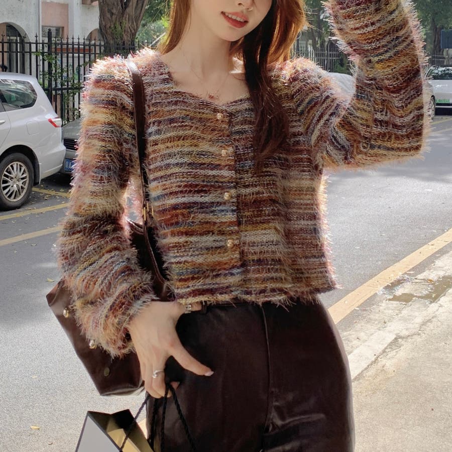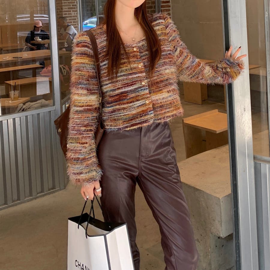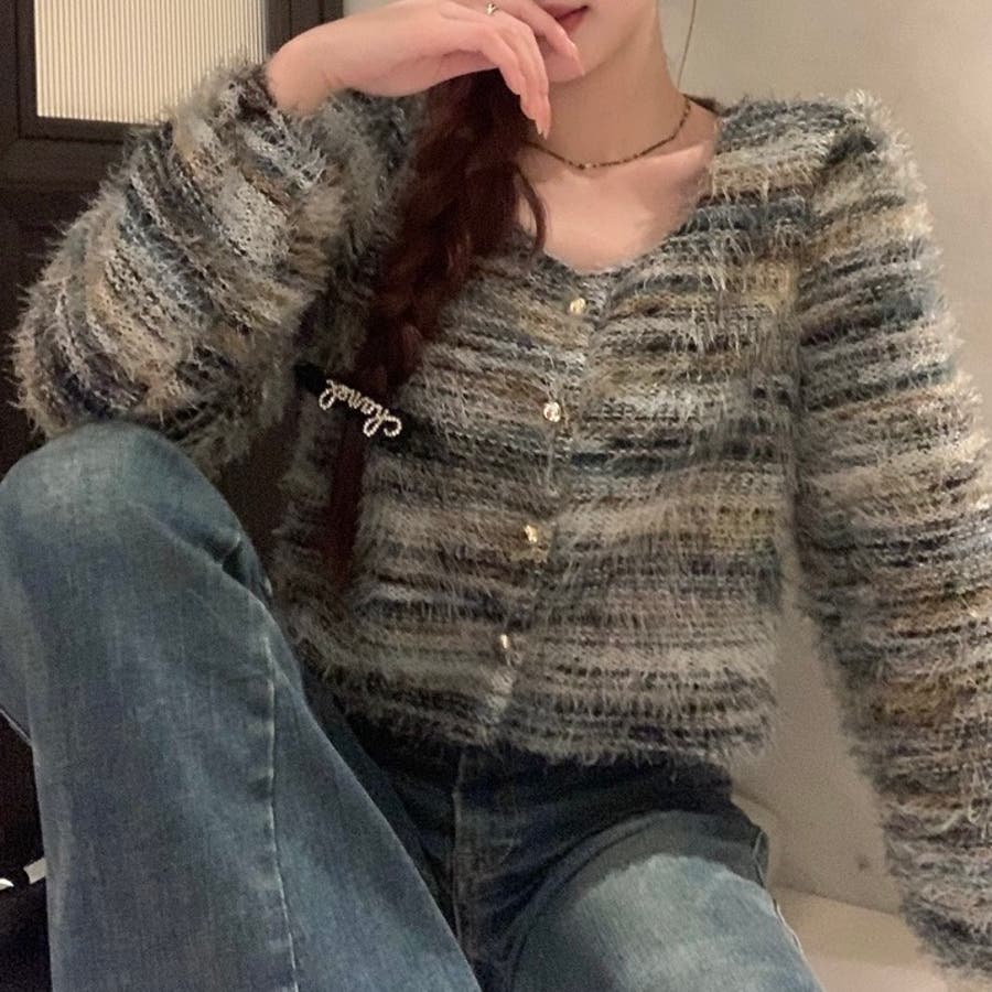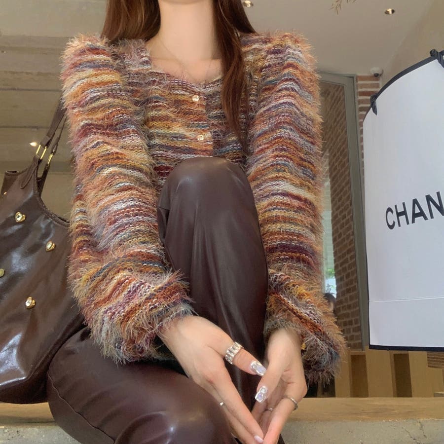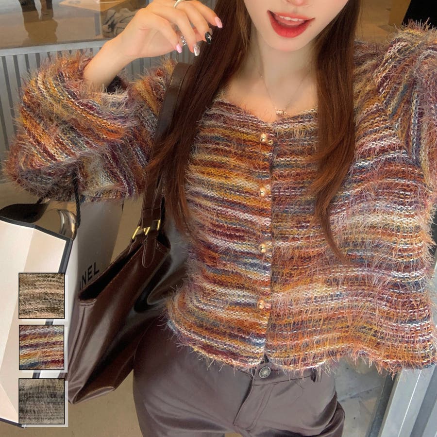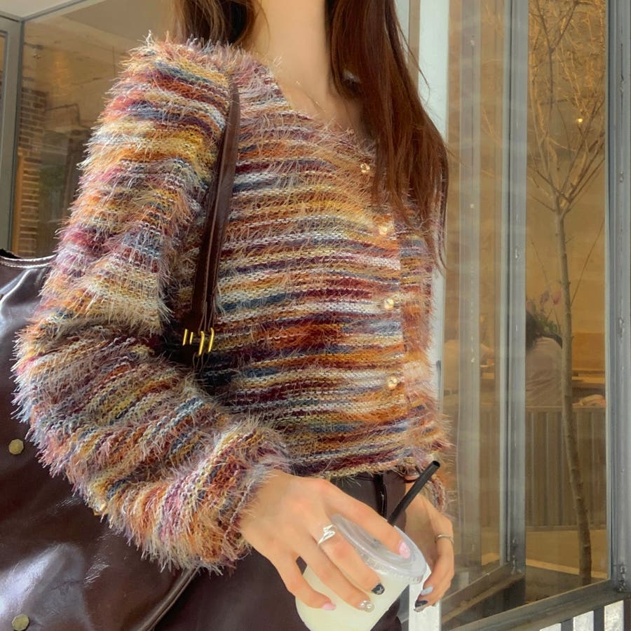 大人 カジュアル きれいめ 韓国ファッション 韓国コーデ Y2K カーデガン シャギー 長袖 ボーダー 通勤 通学 オフィスカジュアル 春服 冬服 秋服 10代 20代 30代 40代 春 冬 秋
