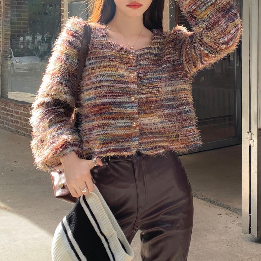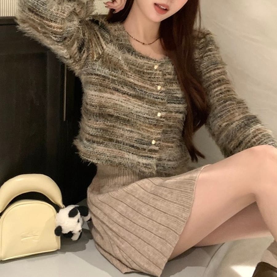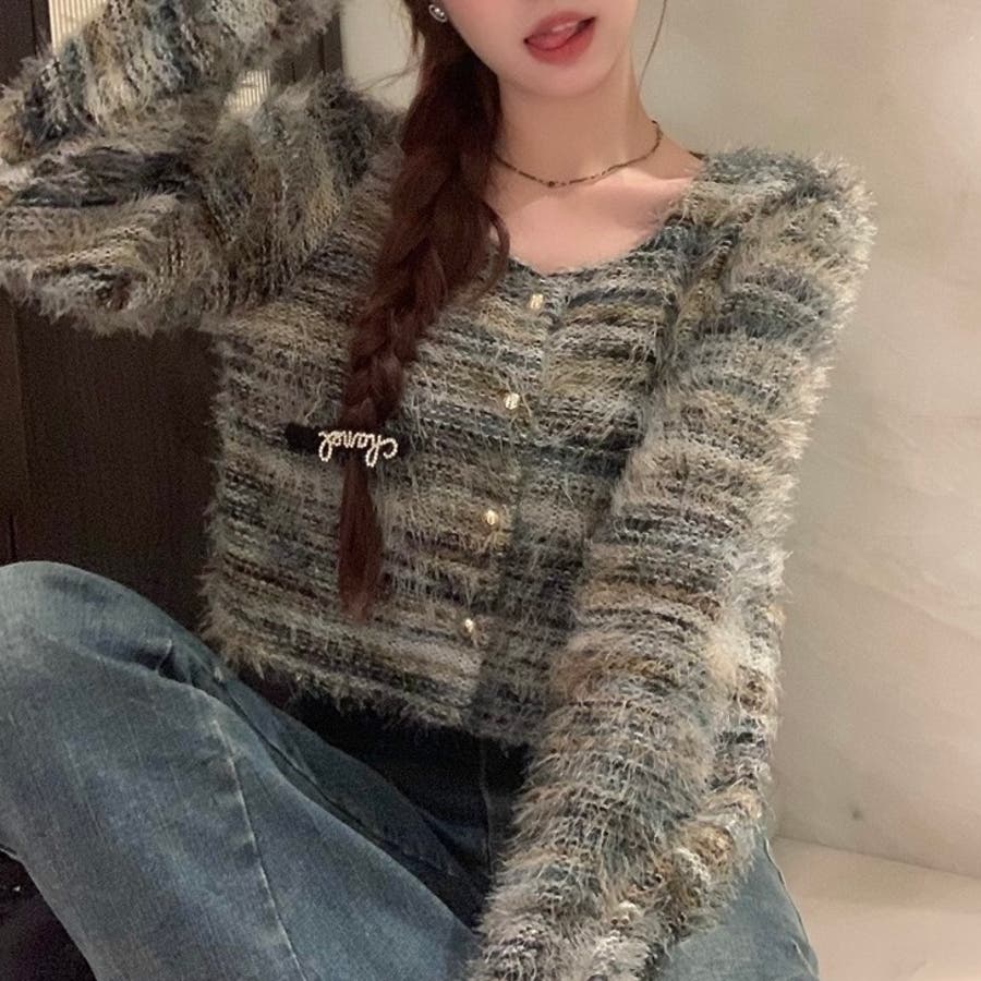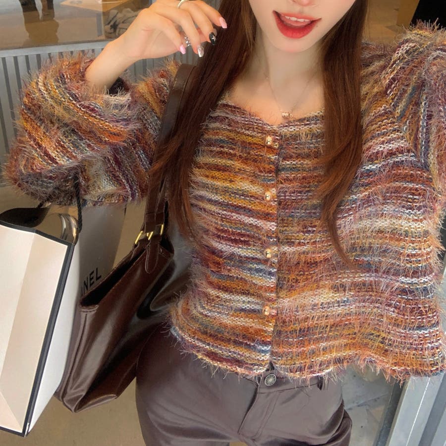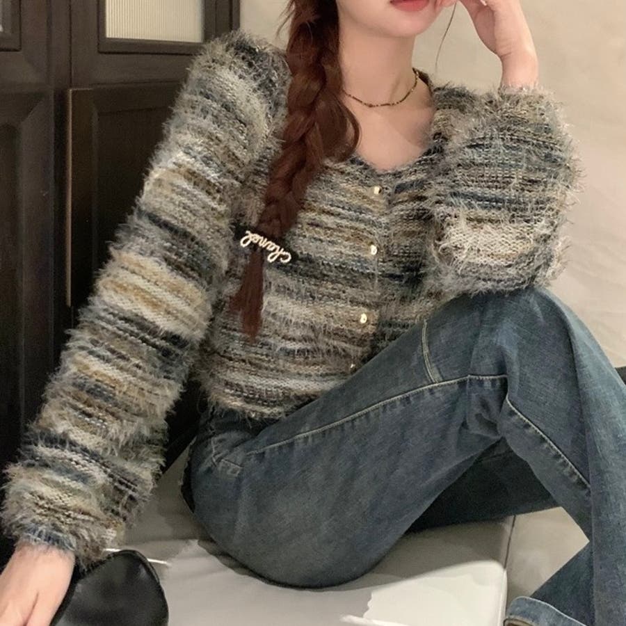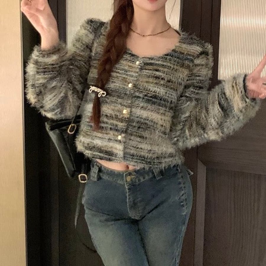 大人 カジュアル きれいめ 韓国ファッション 韓国コーデ Y2K カーデガン シャギー 長袖 ボーダー 通勤 通学 オフィスカジュアル 春服 冬服 秋服 10代 20代 30代 40代 春 冬 秋