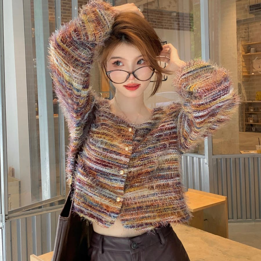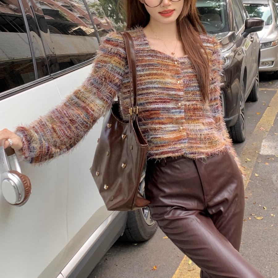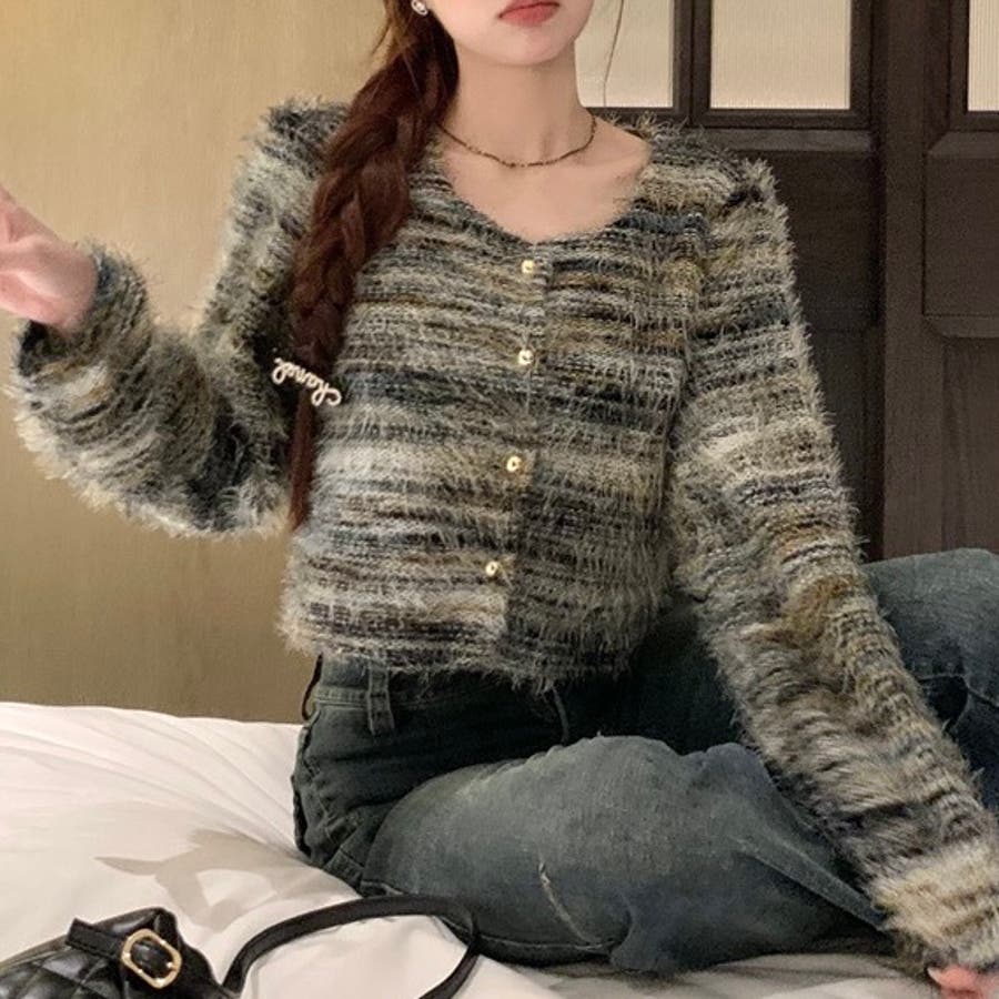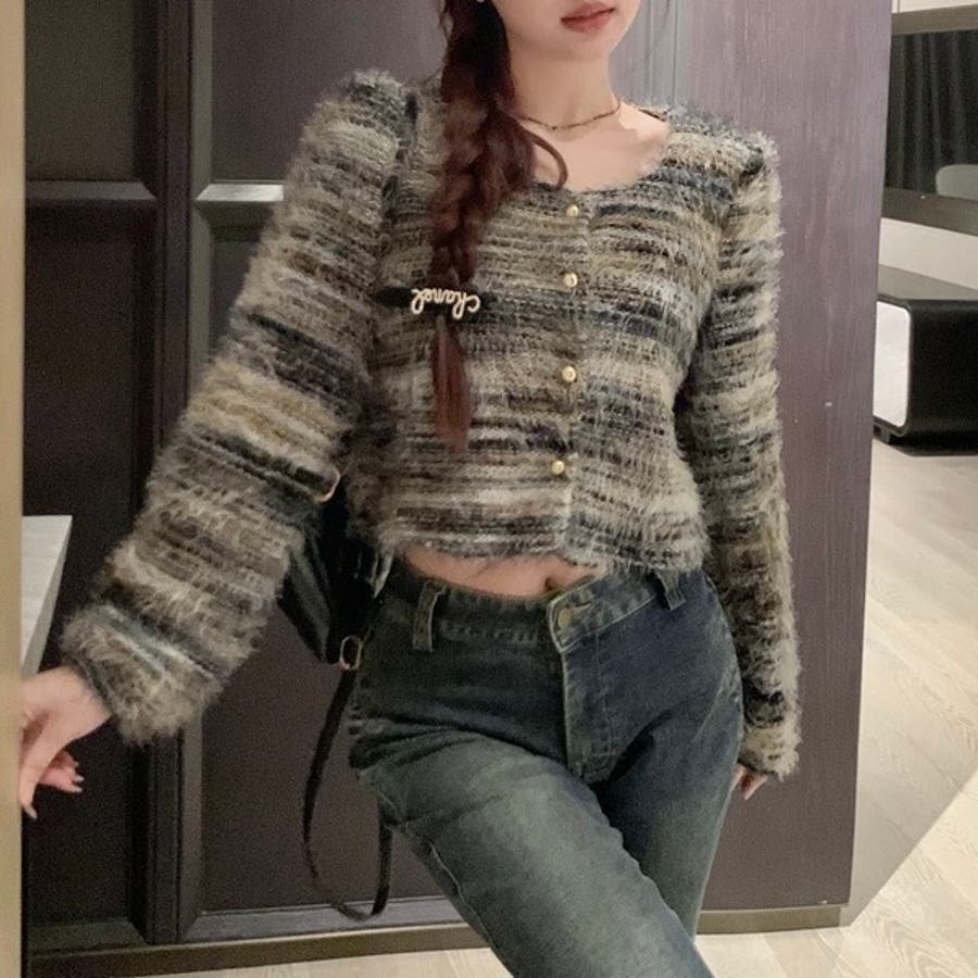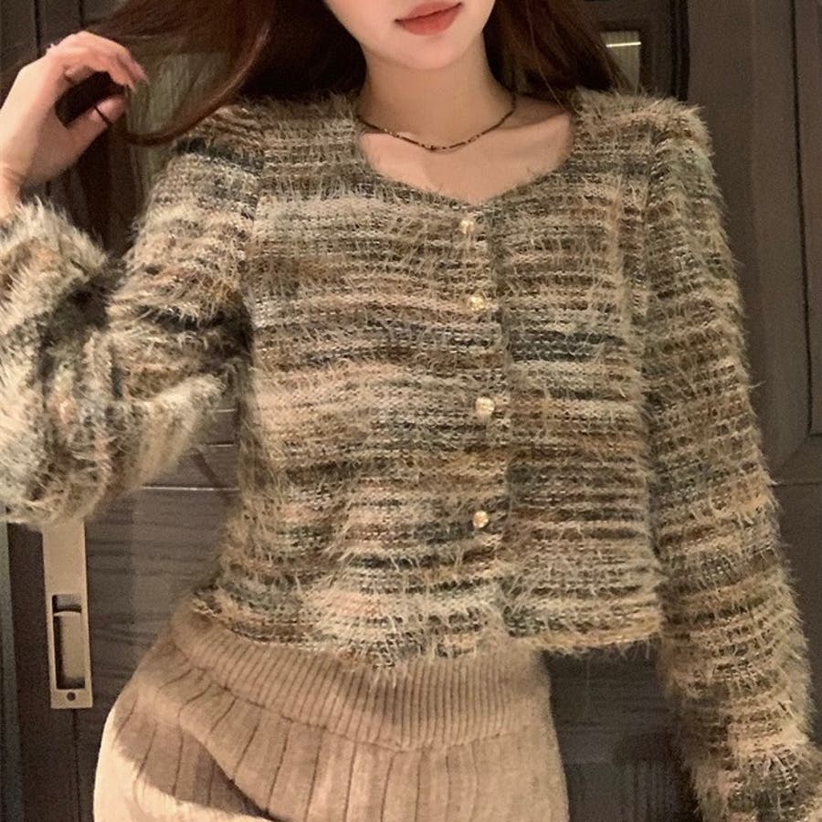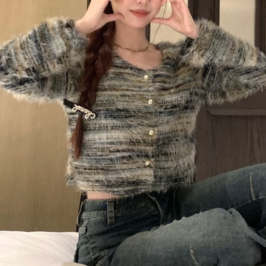 大人 カジュアル きれいめ 韓国ファッション 韓国コーデ Y2K カーデガン シャギー 長袖 ボーダー 通勤 通学 オフィスカジュアル 春服 冬服 秋服 10代 20代 30代 40代 春 冬 秋