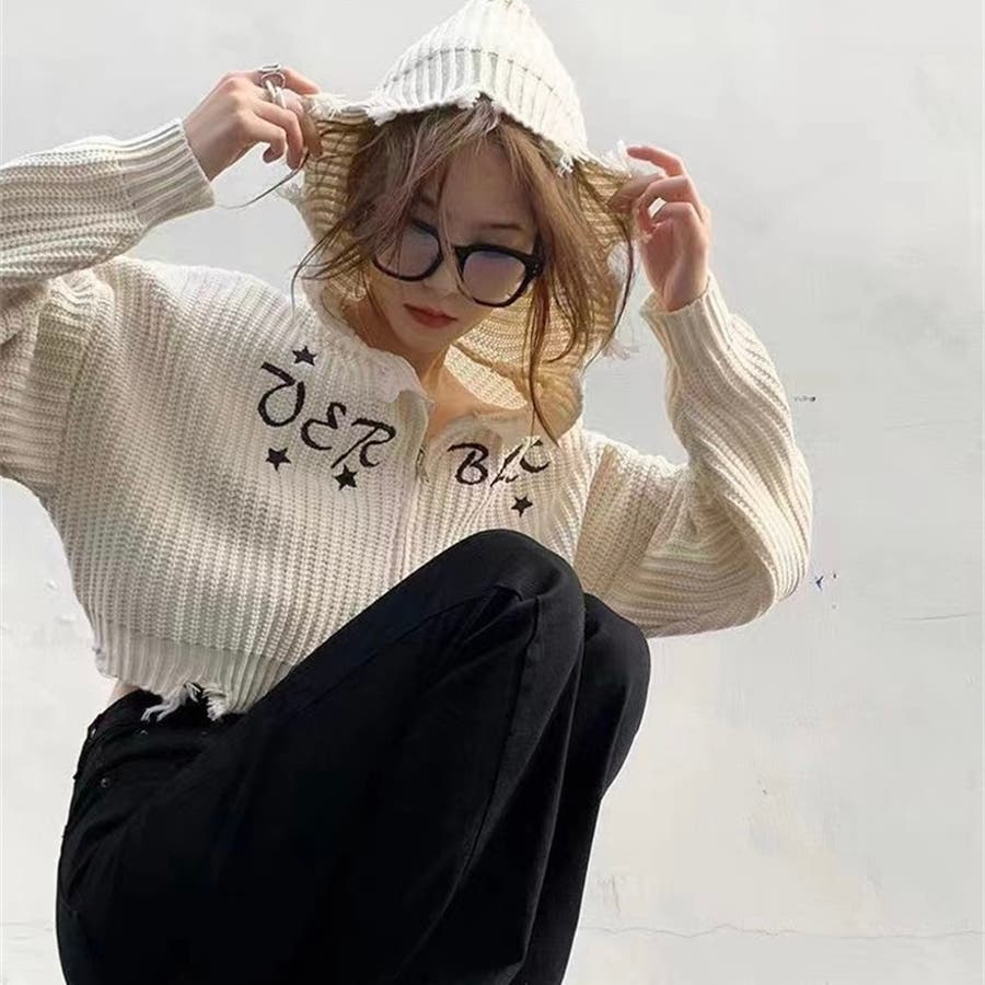 大人 カジュアル きれいめ 韓国ファッション 韓国コーデ Y2K オフィスカジュアル フード付き パーカー トップス フリンジ ファスナー スター 星柄 グランジ 春服 冬服 秋服 10代 20代 30代 40代 春 冬 秋