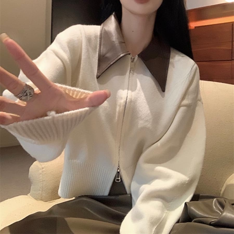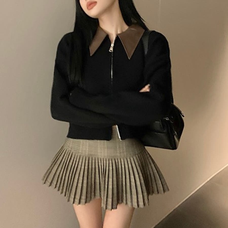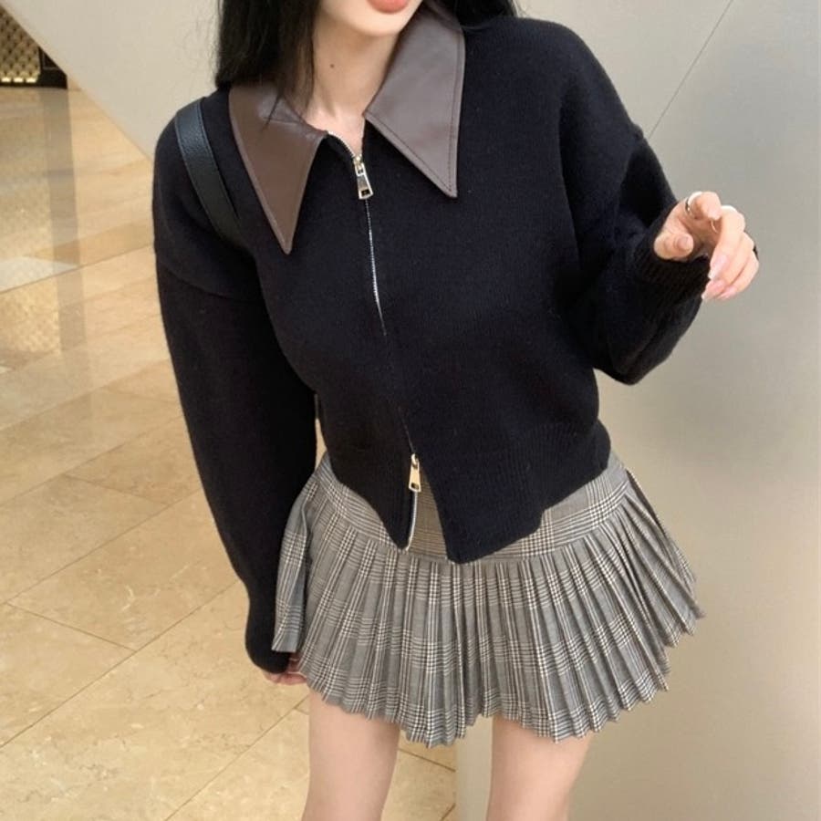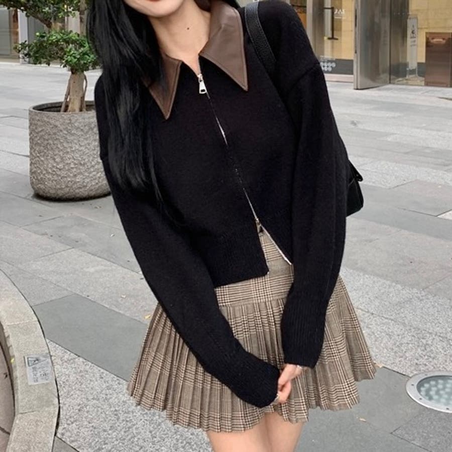 大人 カジュアル きれいめ 韓国ファッション 韓国コーデ トップス フェイクレザー リブ Y2K オフィスカジュアル 春服 冬服 秋服 10代 20代 30代 40代 春 冬 秋