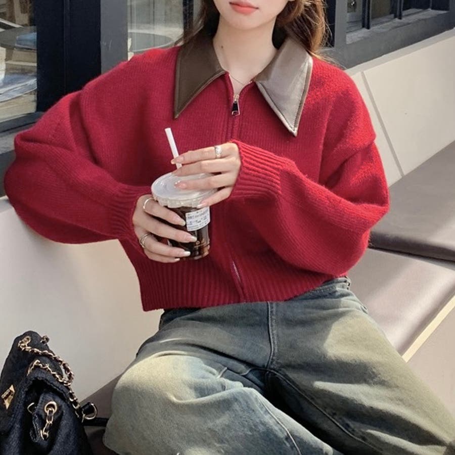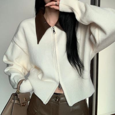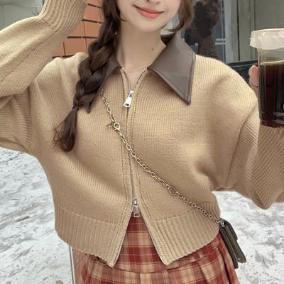 異素材の組み合わせでダブルジップのニット。とても可愛いです。パンツともスカートとも合わせやすいのでお気に入りです。