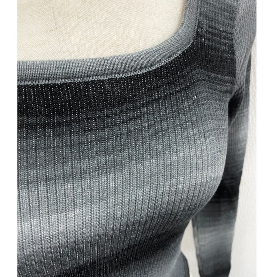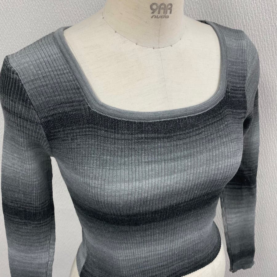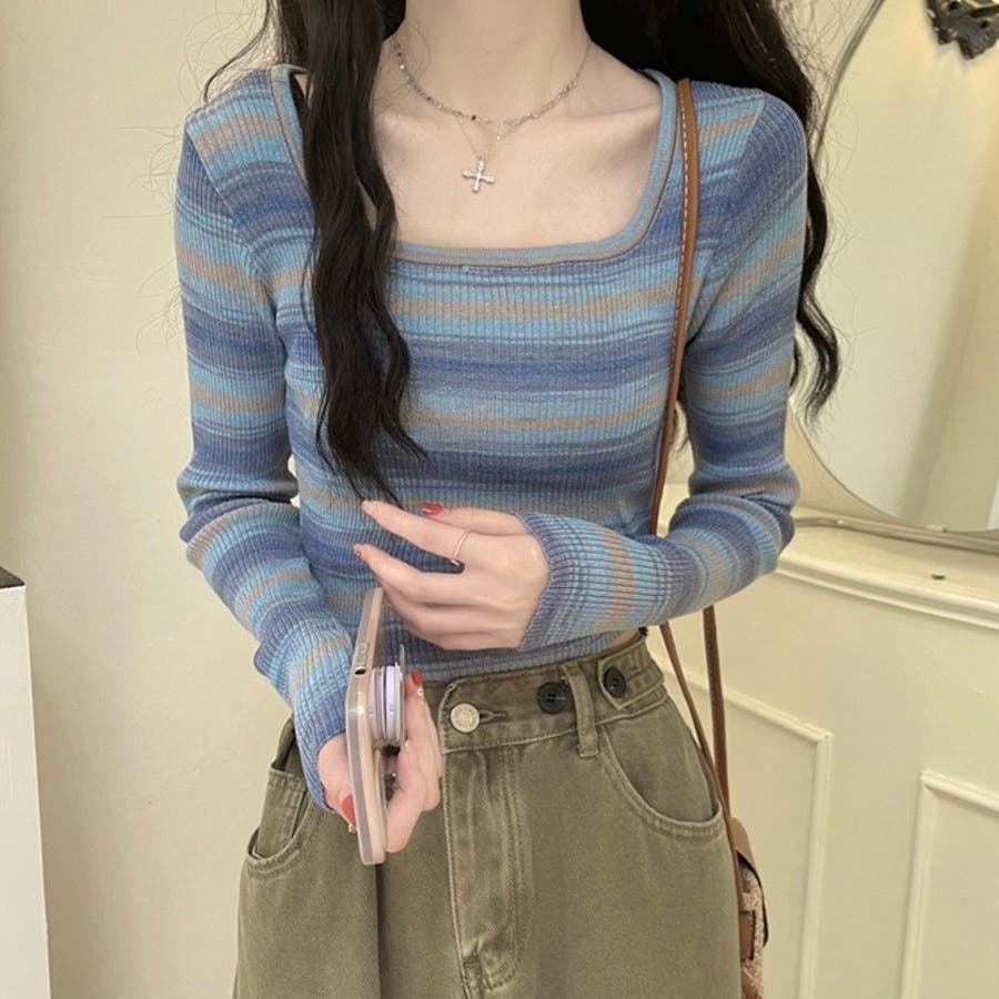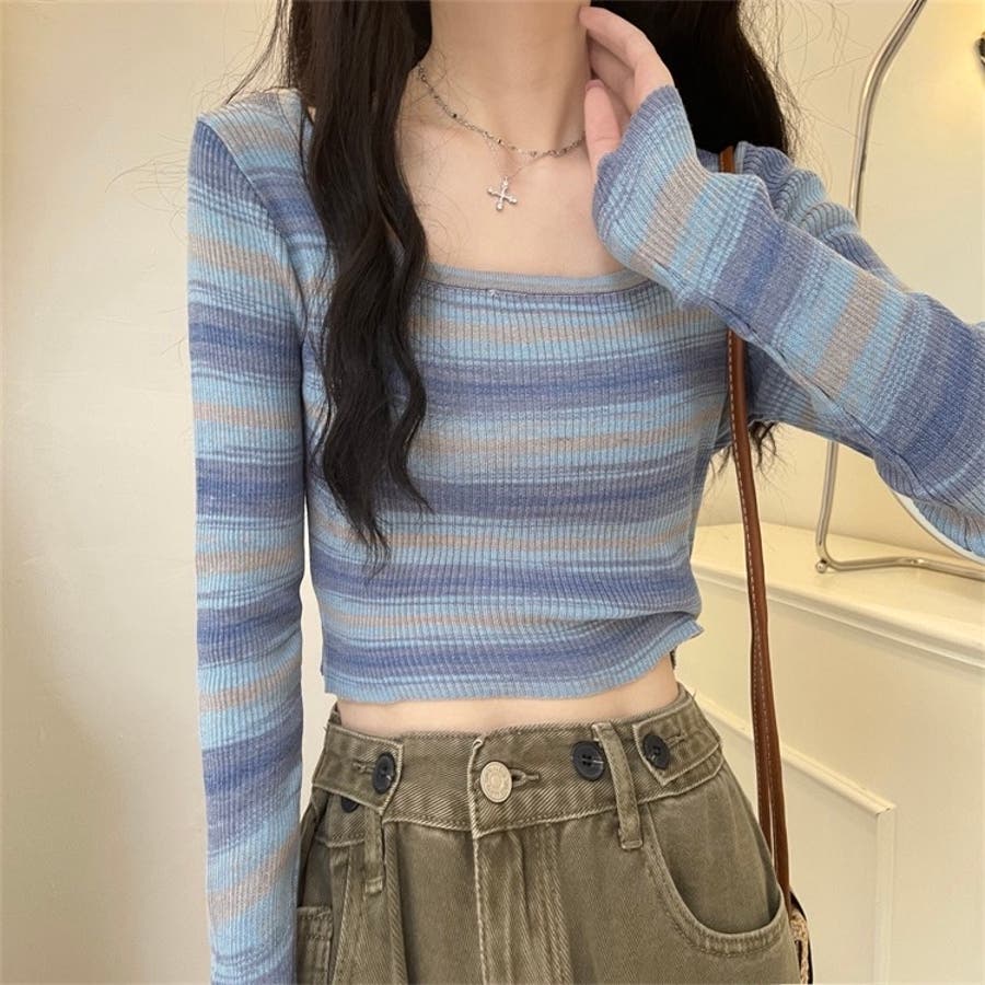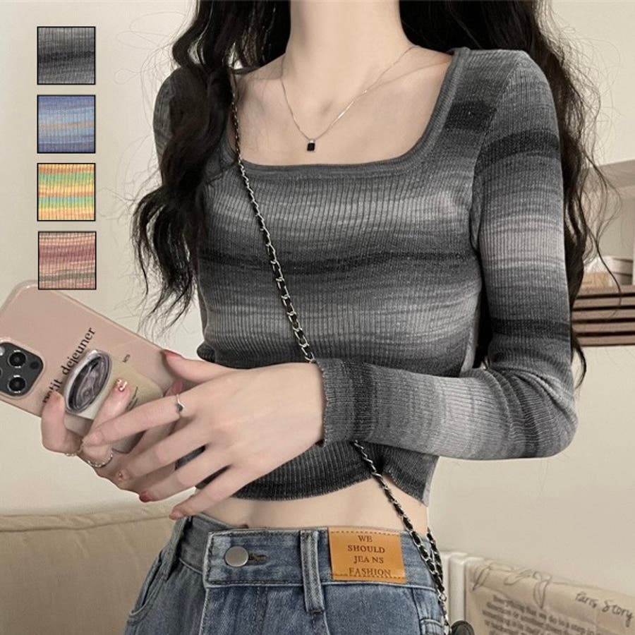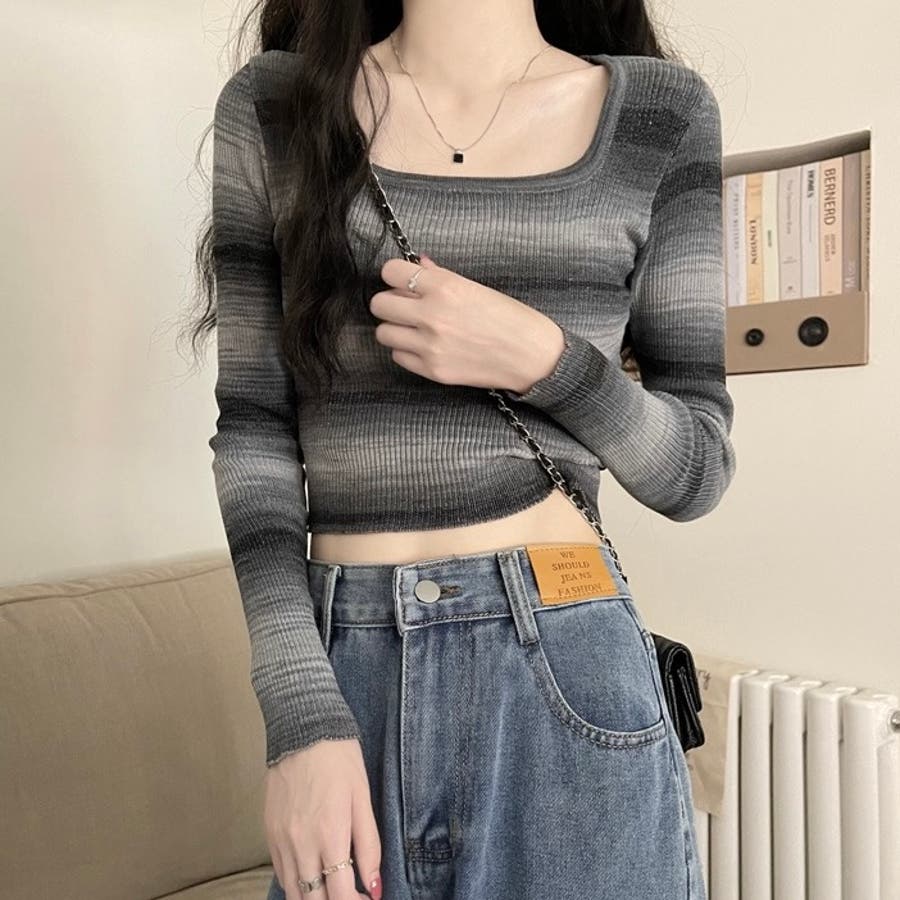 グラデーションをかけたボーダーデザインがカジュアルな雰囲気を演出しつつ、体にフィットするシルエットが女性らしさを引き立てます。