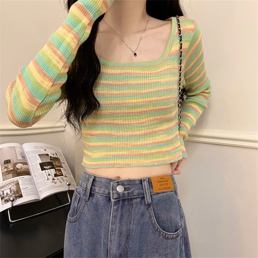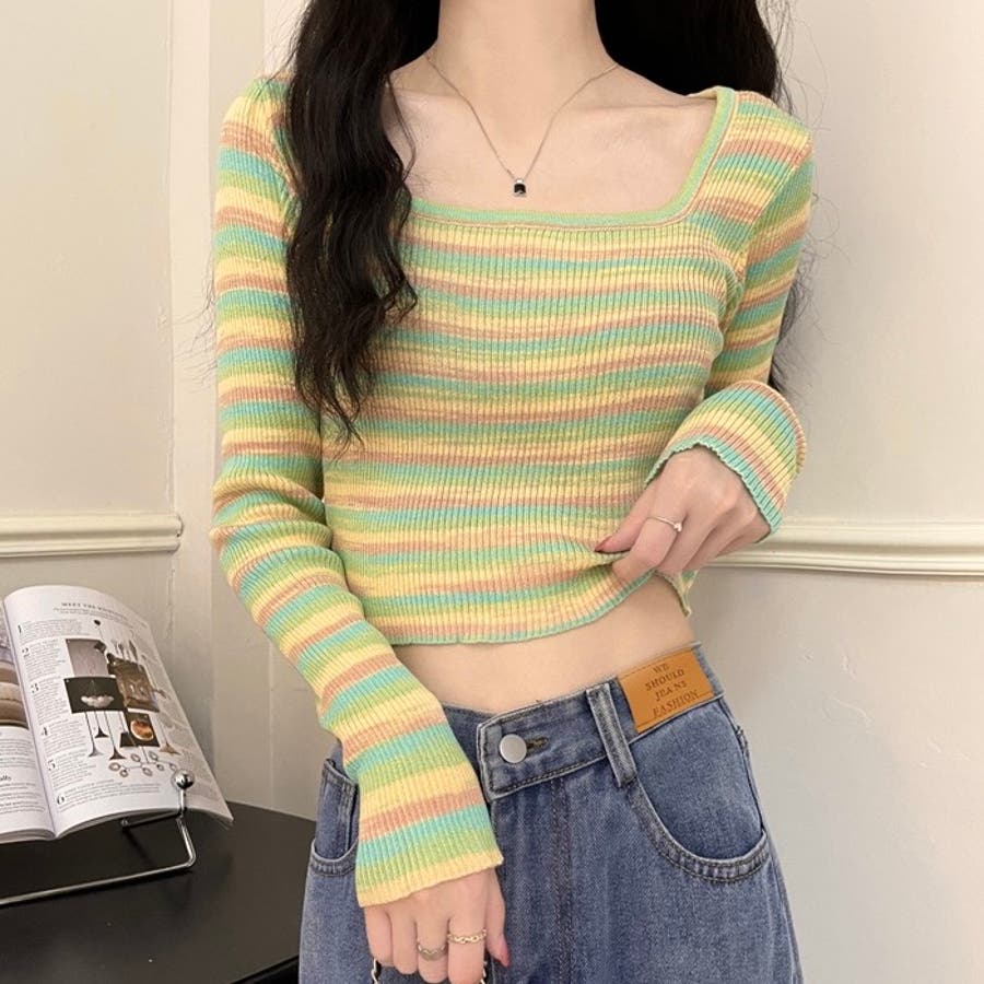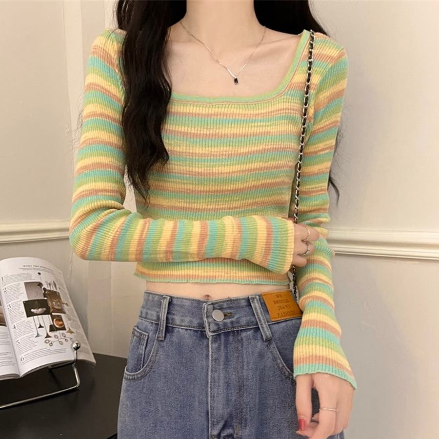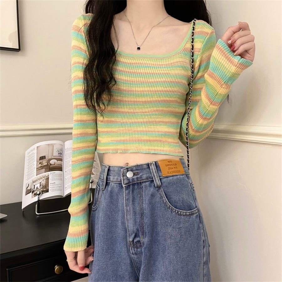 大人 カジュアル きれいめ 韓国ファッション 韓国コーデ Y2K オフィスカジュアル 長袖 タイト カラフル ショート丈 春服 冬服 秋服 10代 20代 30代 40代 春 冬 秋