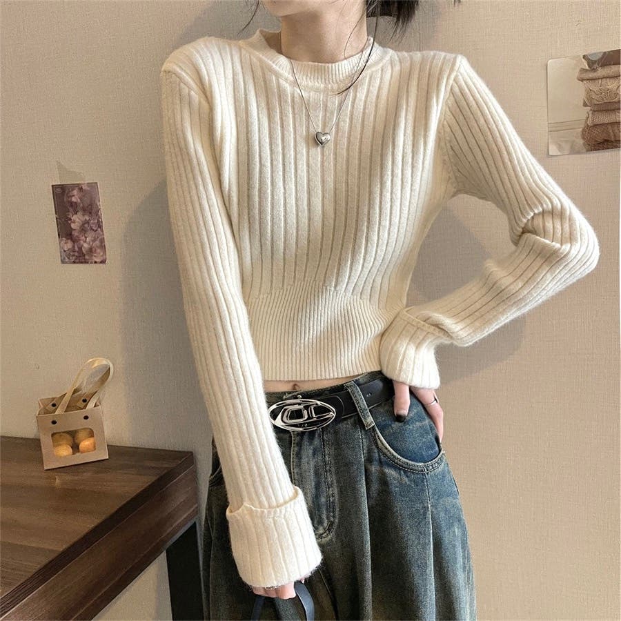 大人 カジュアル きれいめ 韓国ファッション 韓国コーデ Y2K オフィスカジュアル 長袖 ショート丈 短め トップス リブ 春服 冬服 秋服 10代 20代 30代 40代 春 冬 秋