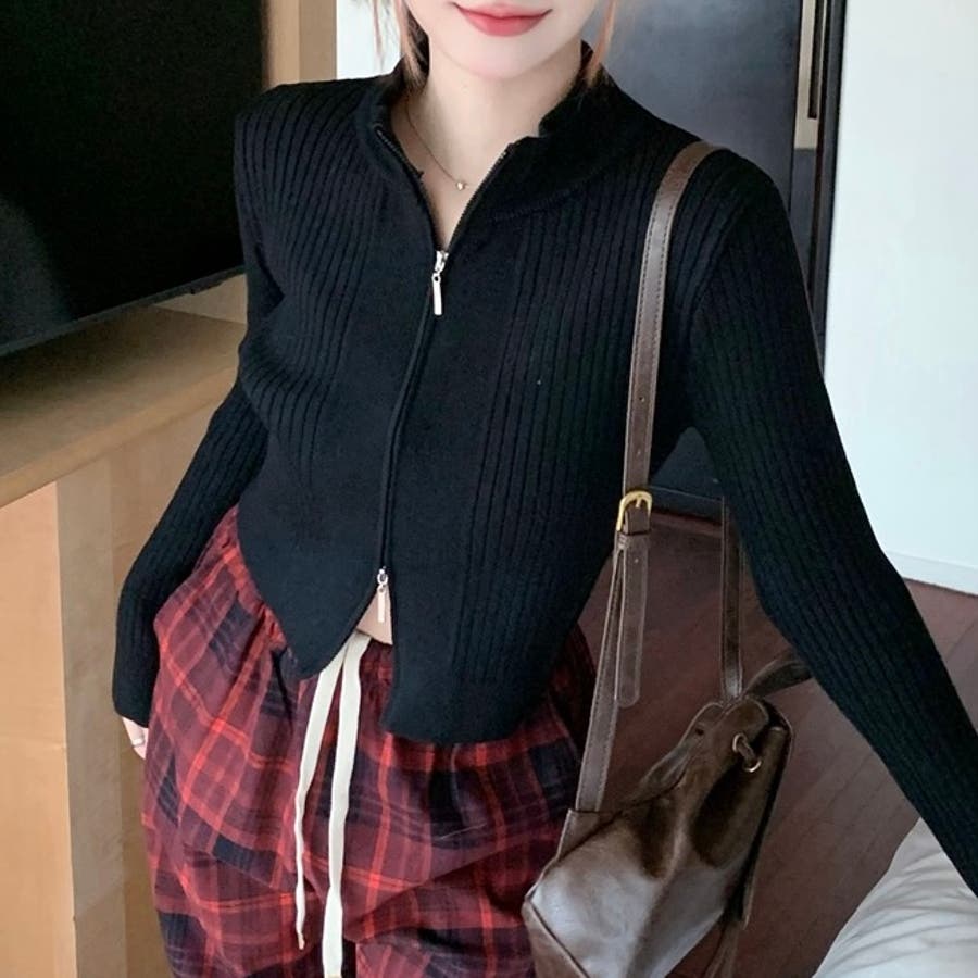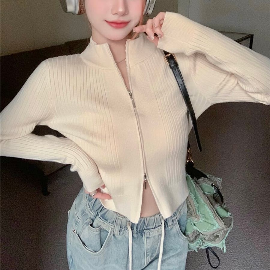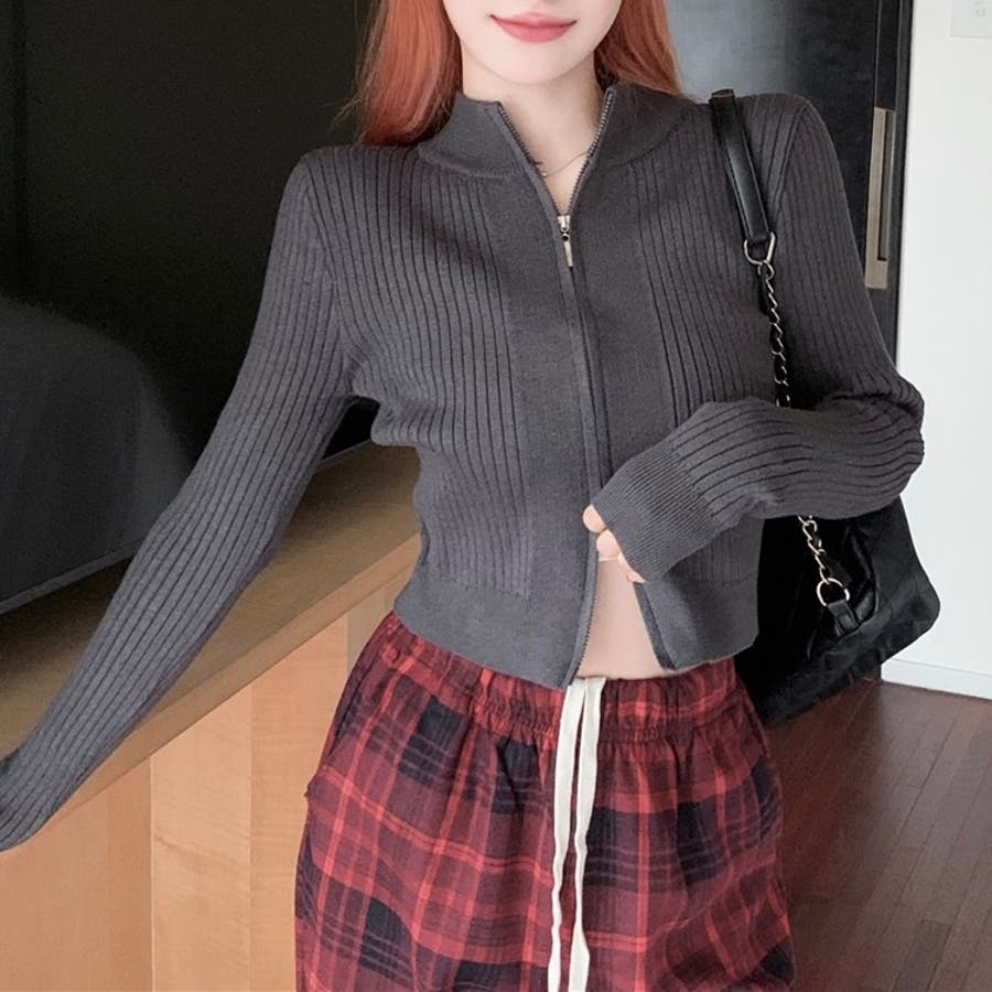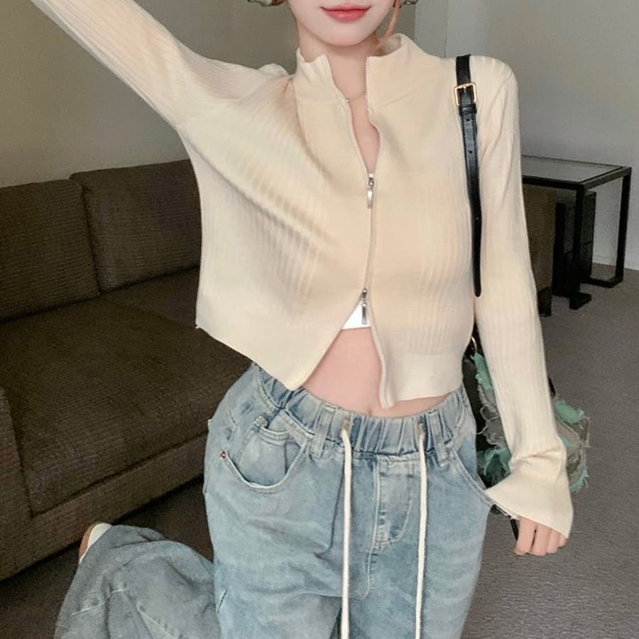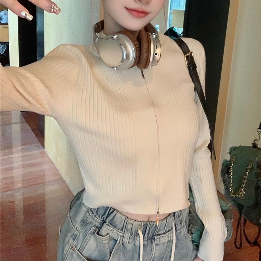 大人 カジュアル きれいめ ショート丈 モックネック シンプル 無地 長袖 韓国ファッション 韓国コーデ Y2K オフィスカジュアル 春服 夏服 秋服 10代 20代 30代 40代 春 夏 秋