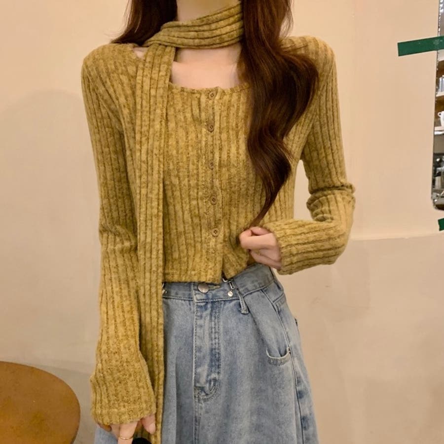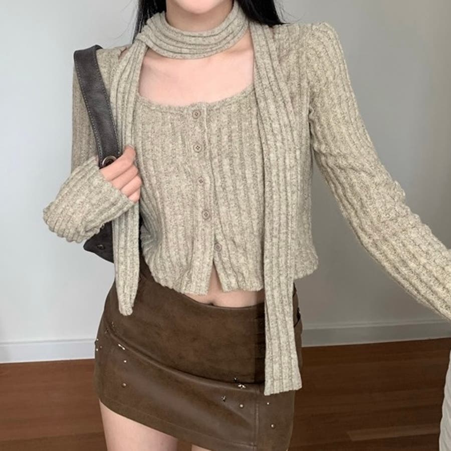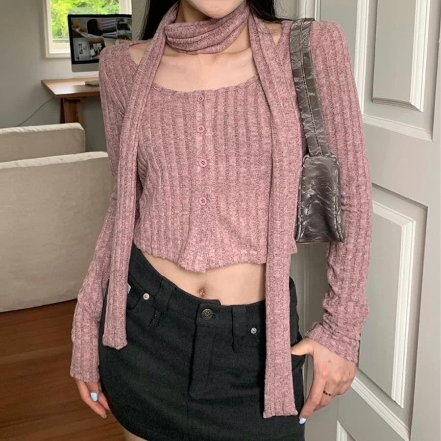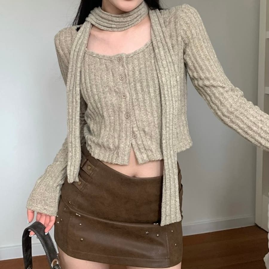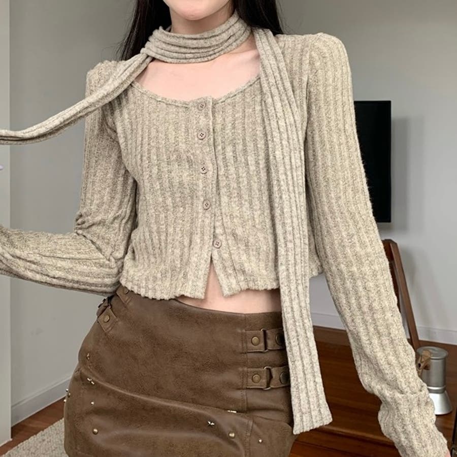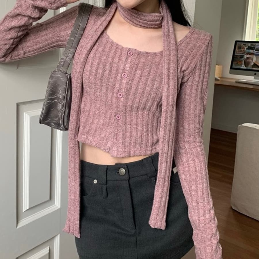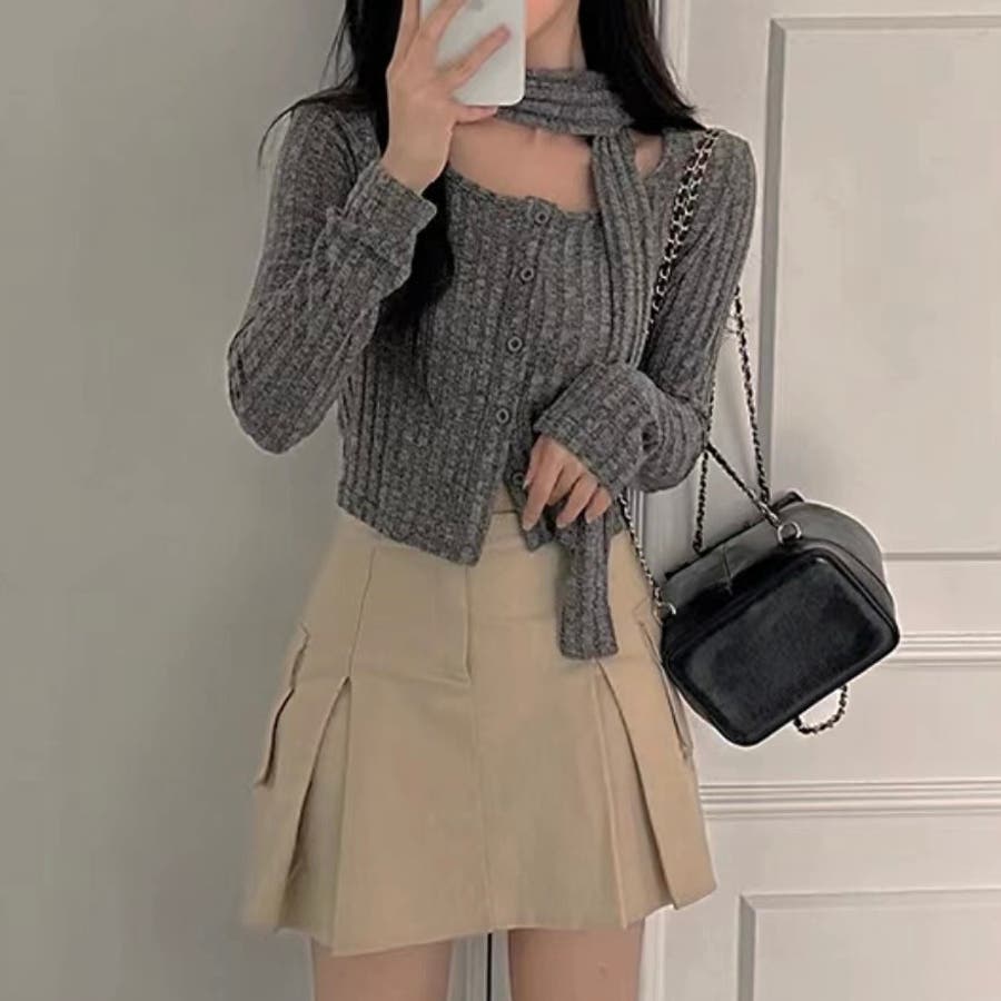大人 カジュアル きれいめ 韓国ファッション 韓国コーデ Y2K オフィスカジュアル カットソー ストール マフラー ショート丈 コンパクト 春服 冬服 秋服 10代 20代 30代 40代 春 冬 秋