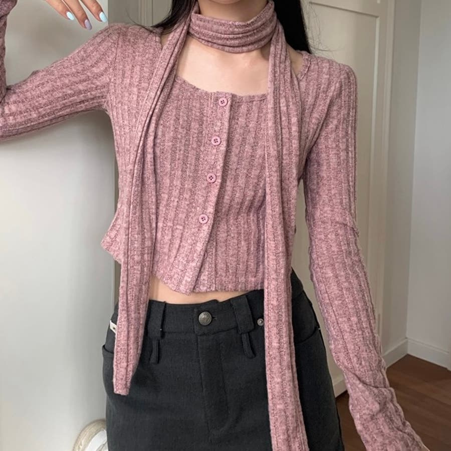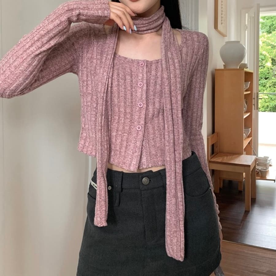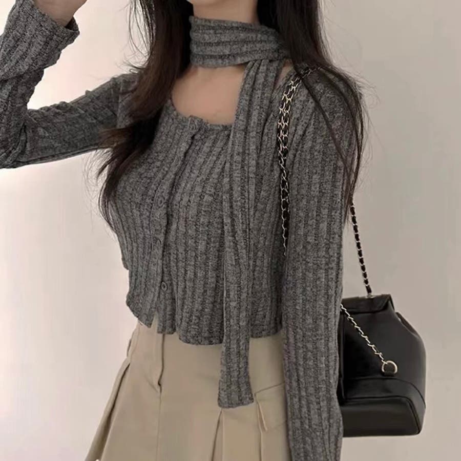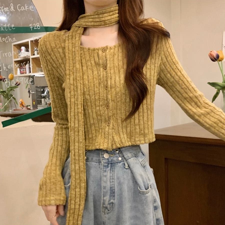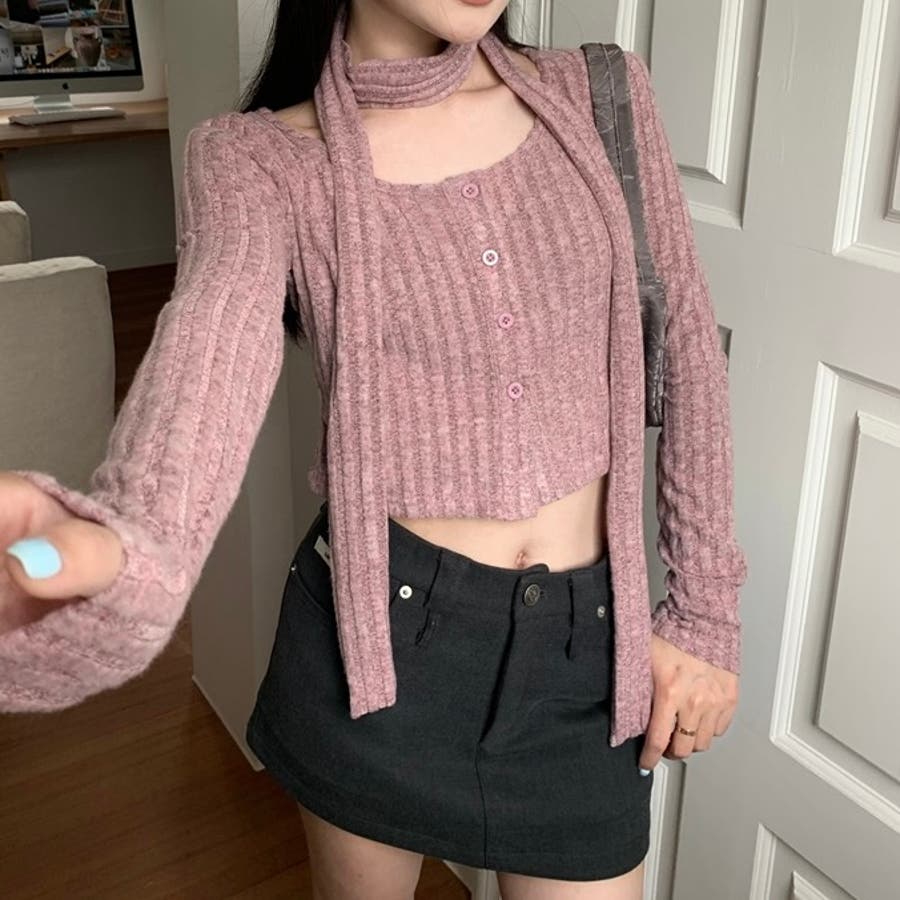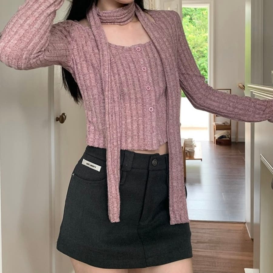 大人 カジュアル きれいめ 韓国ファッション 韓国コーデ Y2K オフィスカジュアル カットソー ストール マフラー ショート丈 コンパクト 春服 冬服 秋服 10代 20代 30代 40代 春 冬 秋