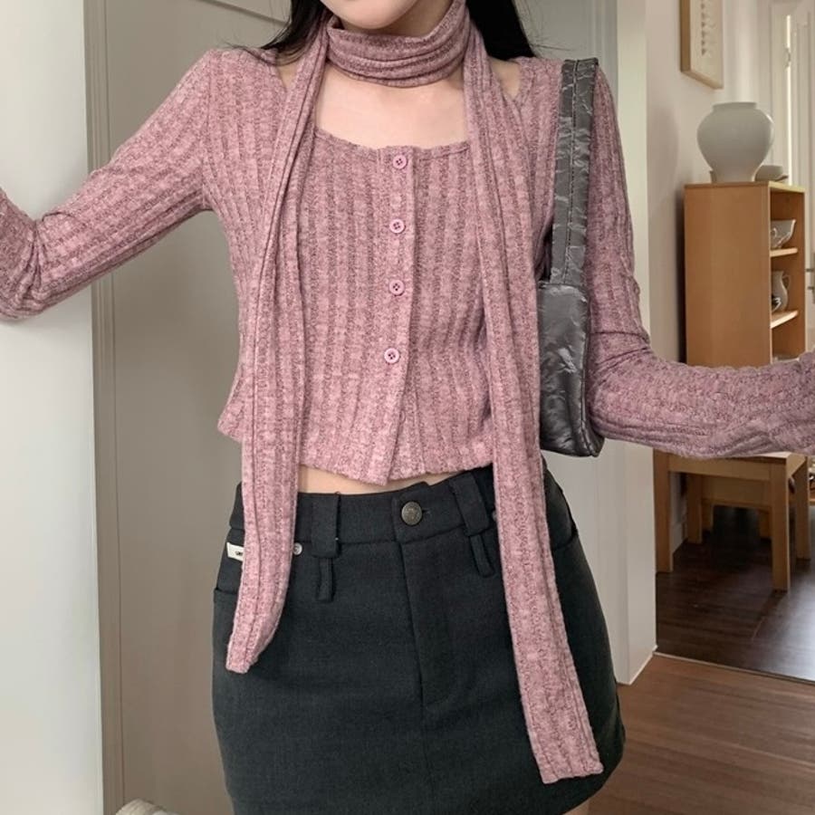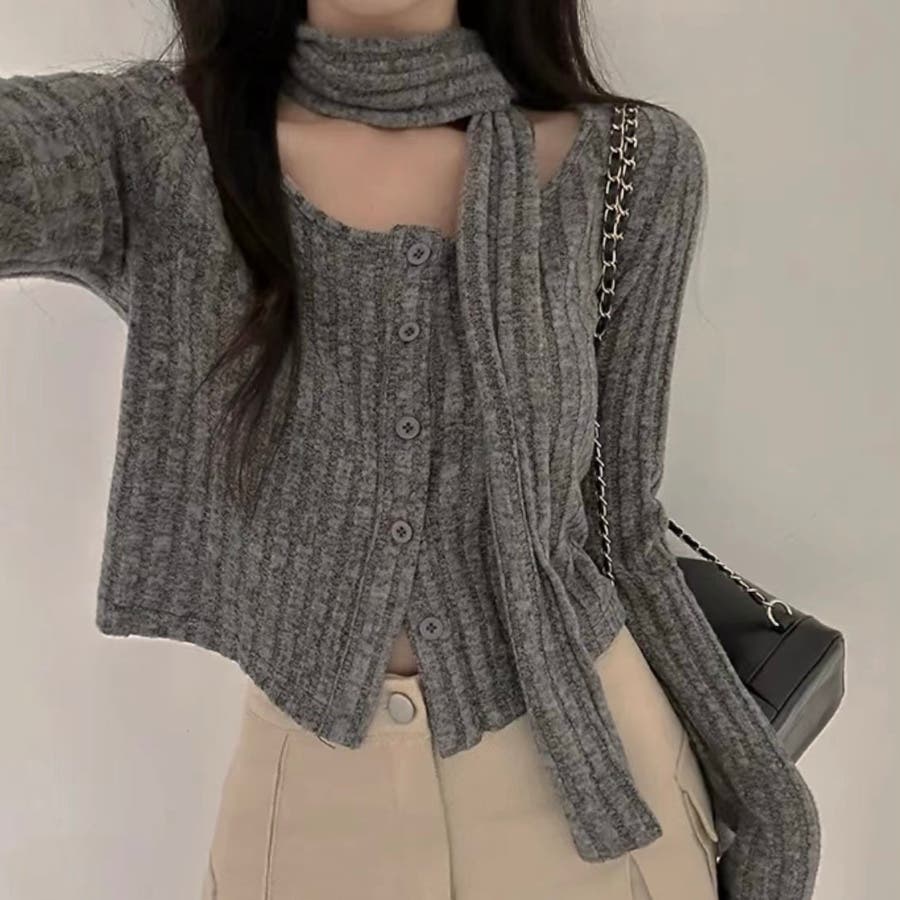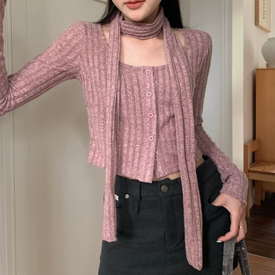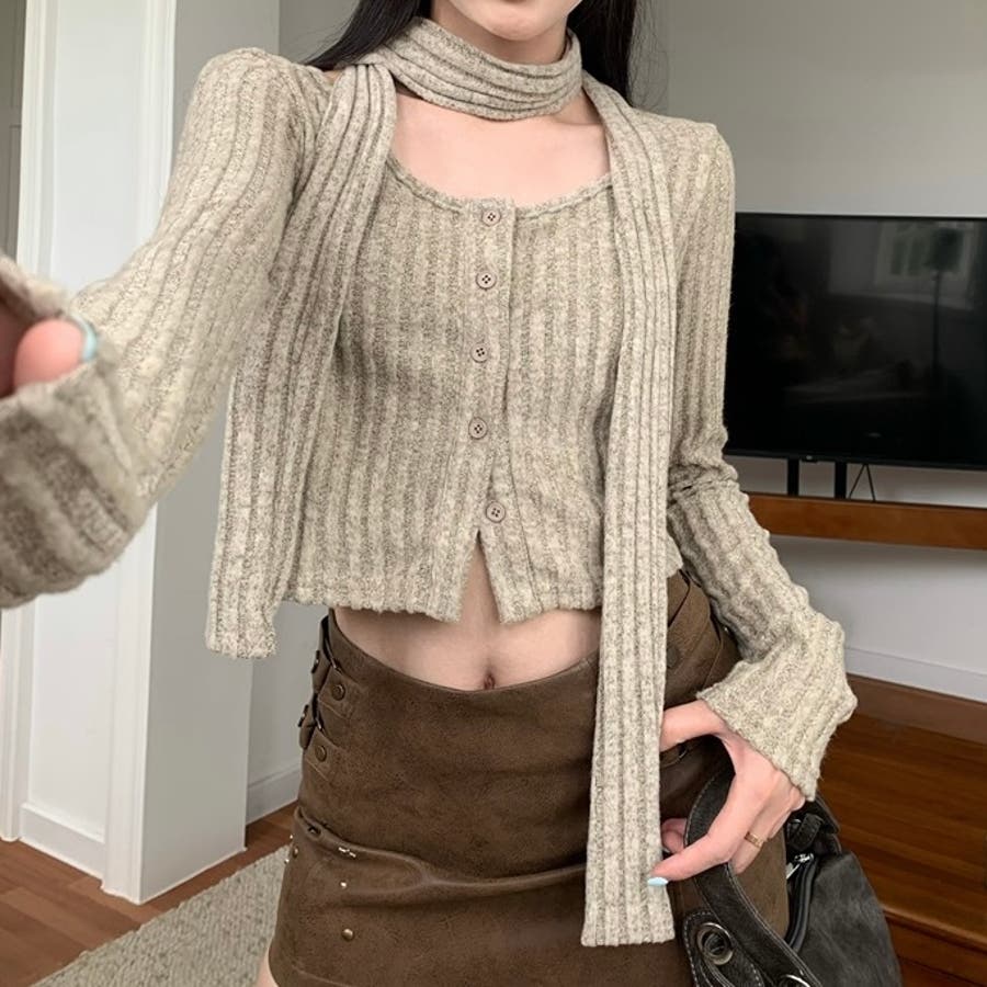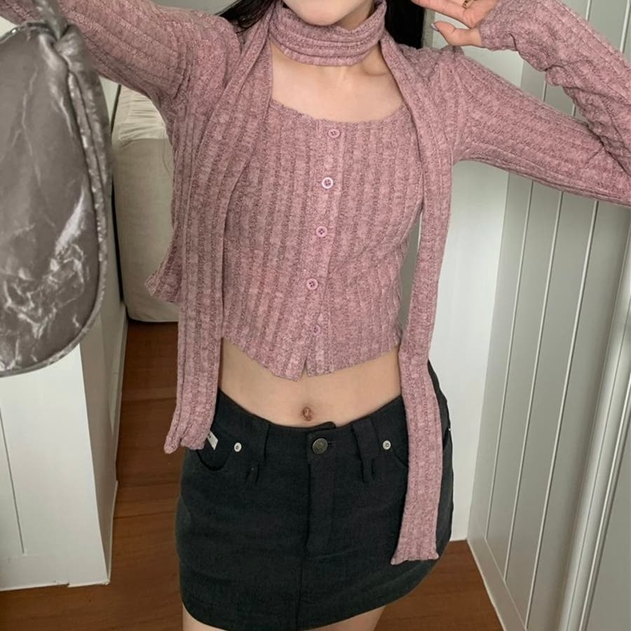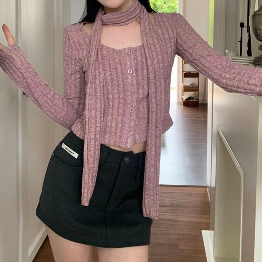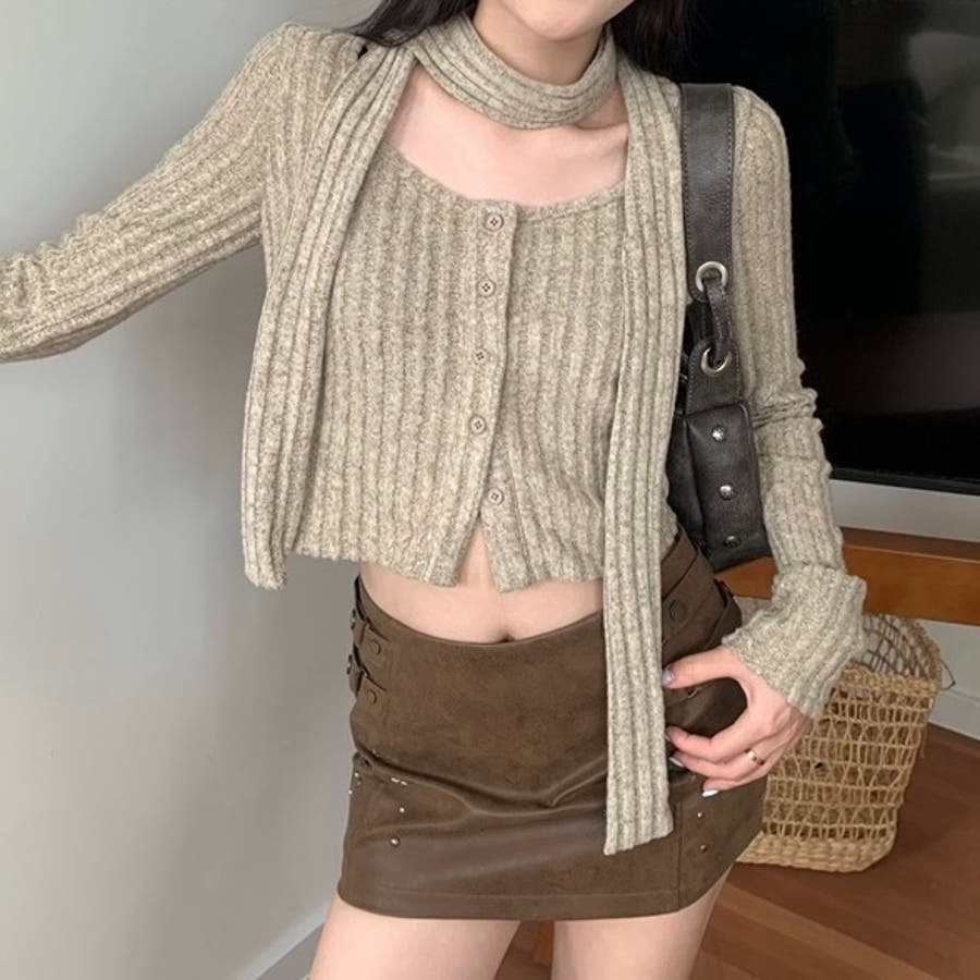 大人 カジュアル きれいめ 韓国ファッション 韓国コーデ Y2K オフィスカジュアル カットソー ストール マフラー ショート丈 コンパクト 春服 冬服 秋服 10代 20代 30代 40代 春 冬 秋