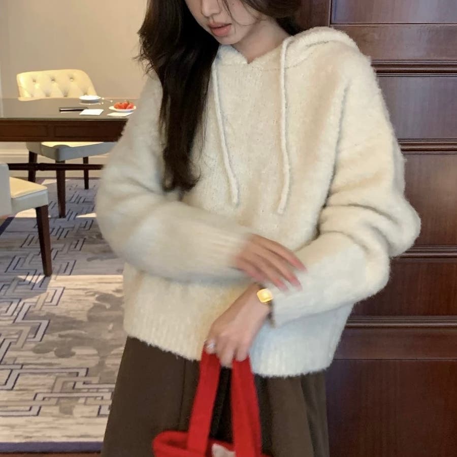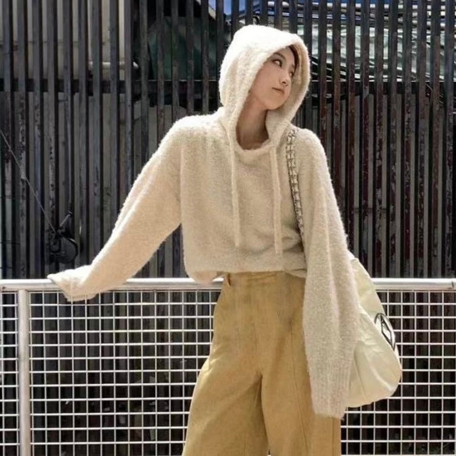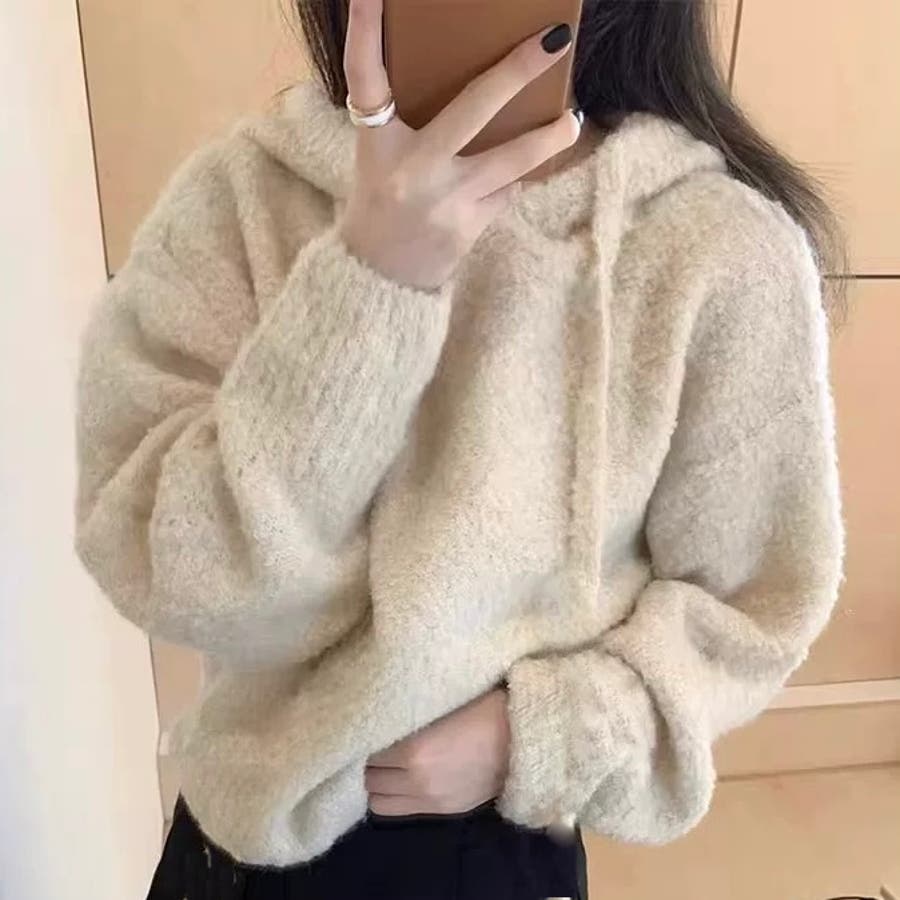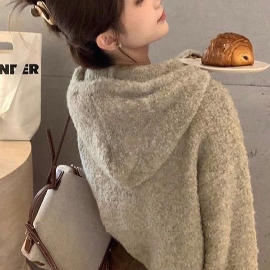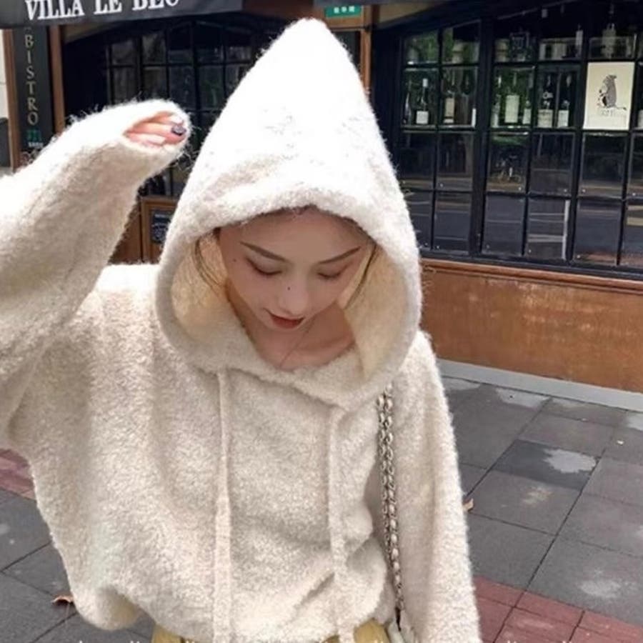大人 カジュアル きれいめ 韓国ファッション 韓国コーデ Y2K オフィスカジュアル パーカー ゆったり 無地 パイル ボア フリース フード ニット トップス 春服 夏服 秋服 10代 20代 30代 40代 春 夏 秋