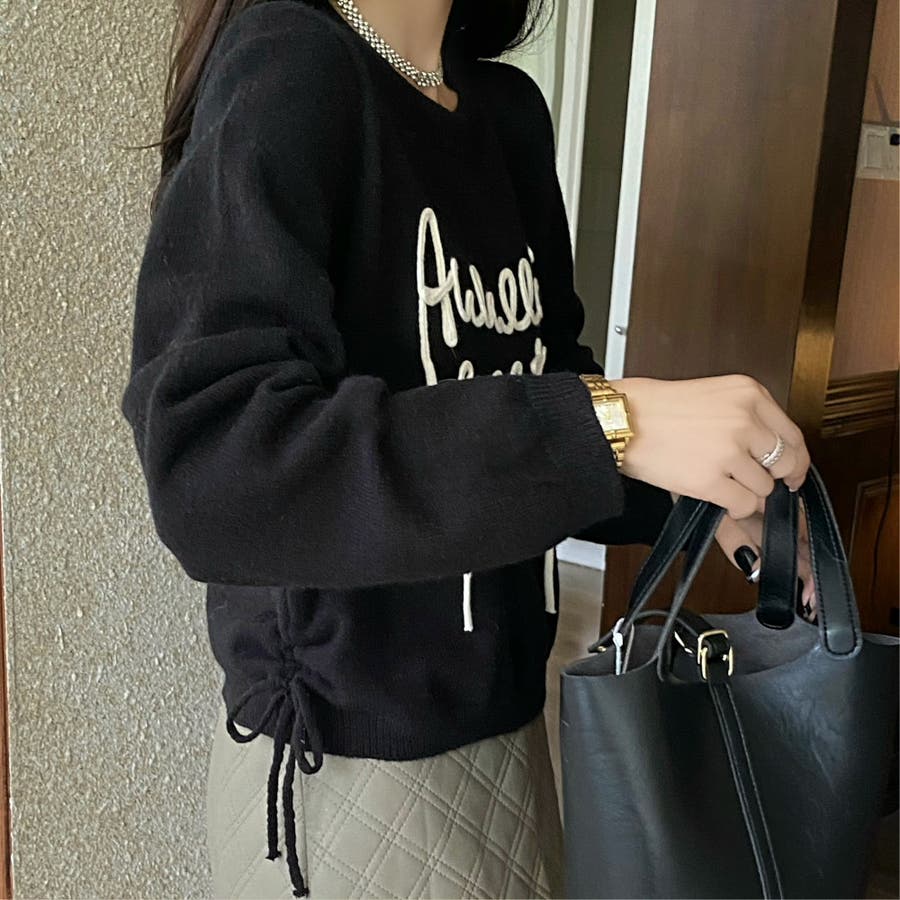 大人 カジュアル きれいめ 韓国ファッション 韓国コーデ Y2K オフィスカジュアル 春服 夏服 秋服 ドローストリング 脇絞り クロップド丈 英字 10代 20代 30代 40代 春 夏 秋