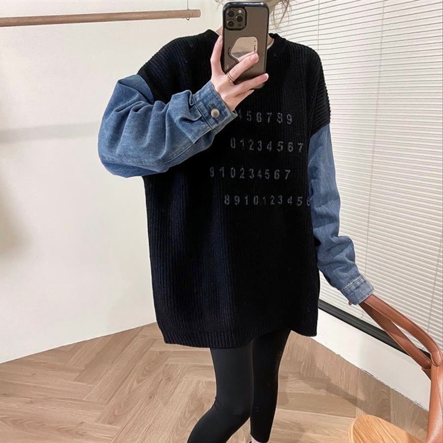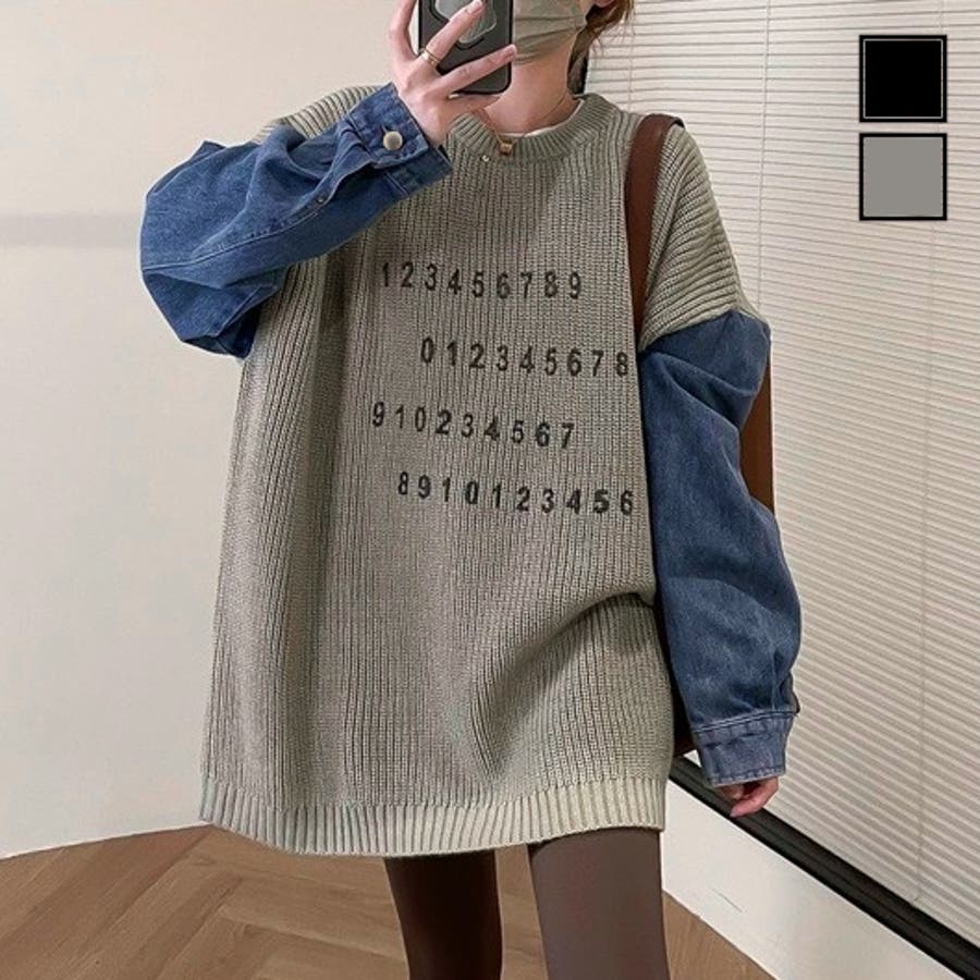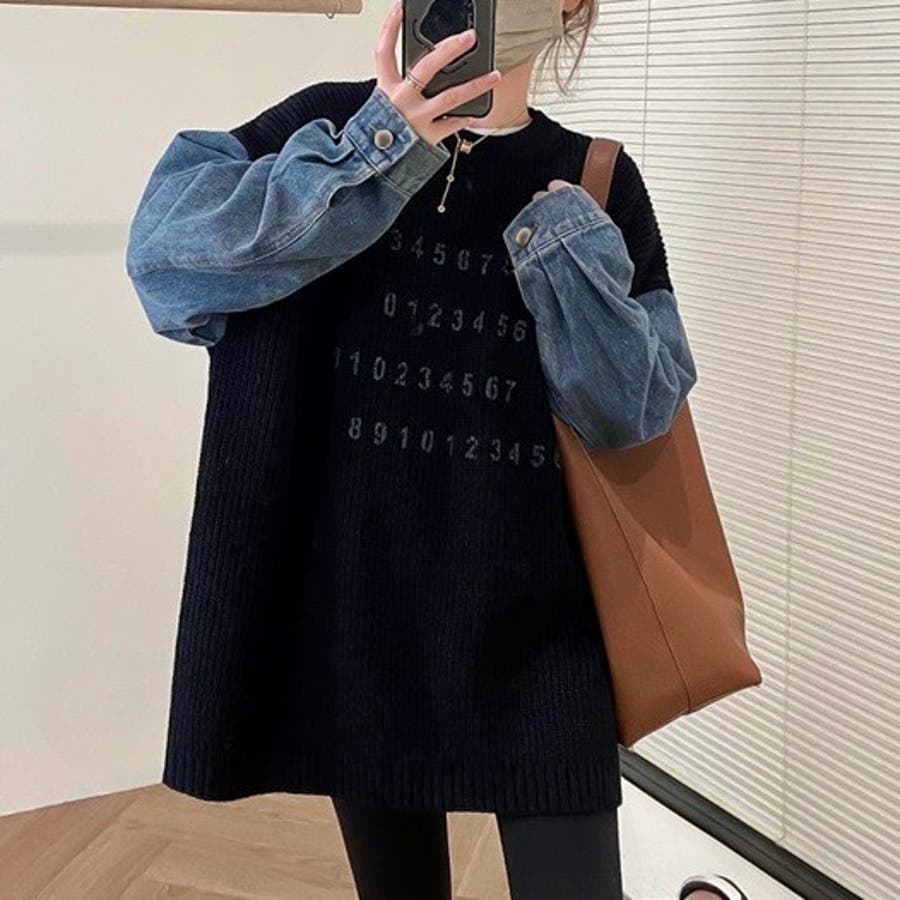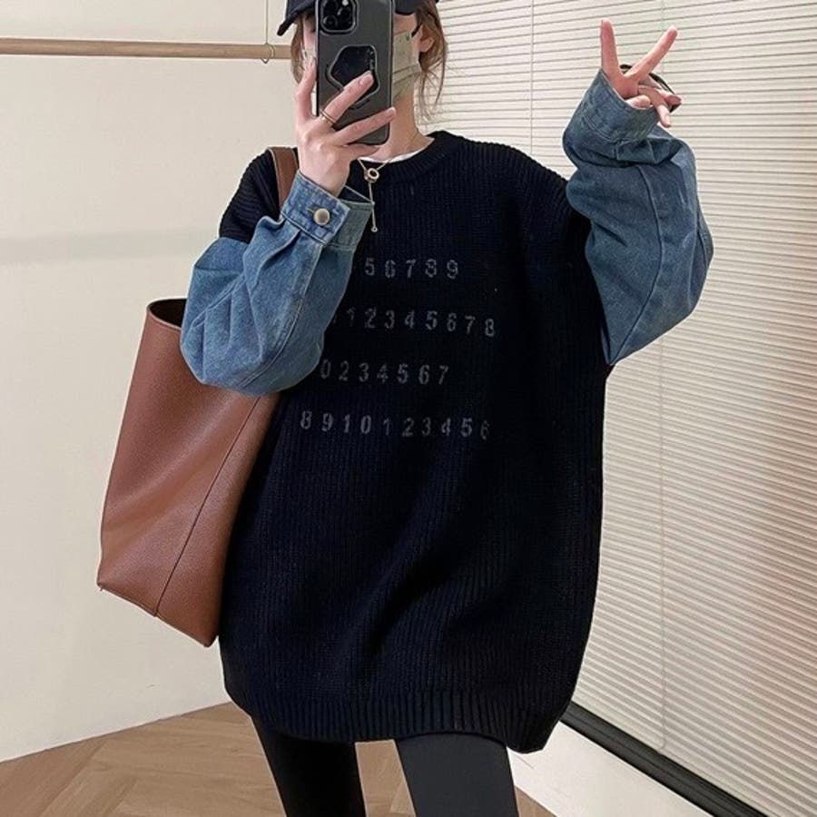 オーバーサイズのニット×デニムスリーブが絶妙なバランスを生み出すカジュアルプルオーバー。