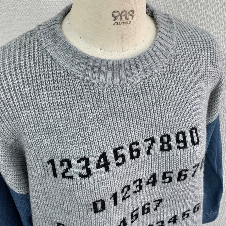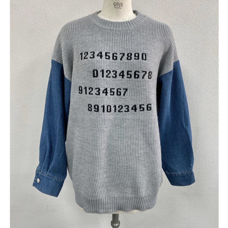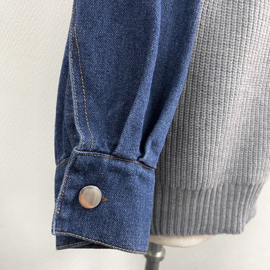 デニムスリーブ切替えニット