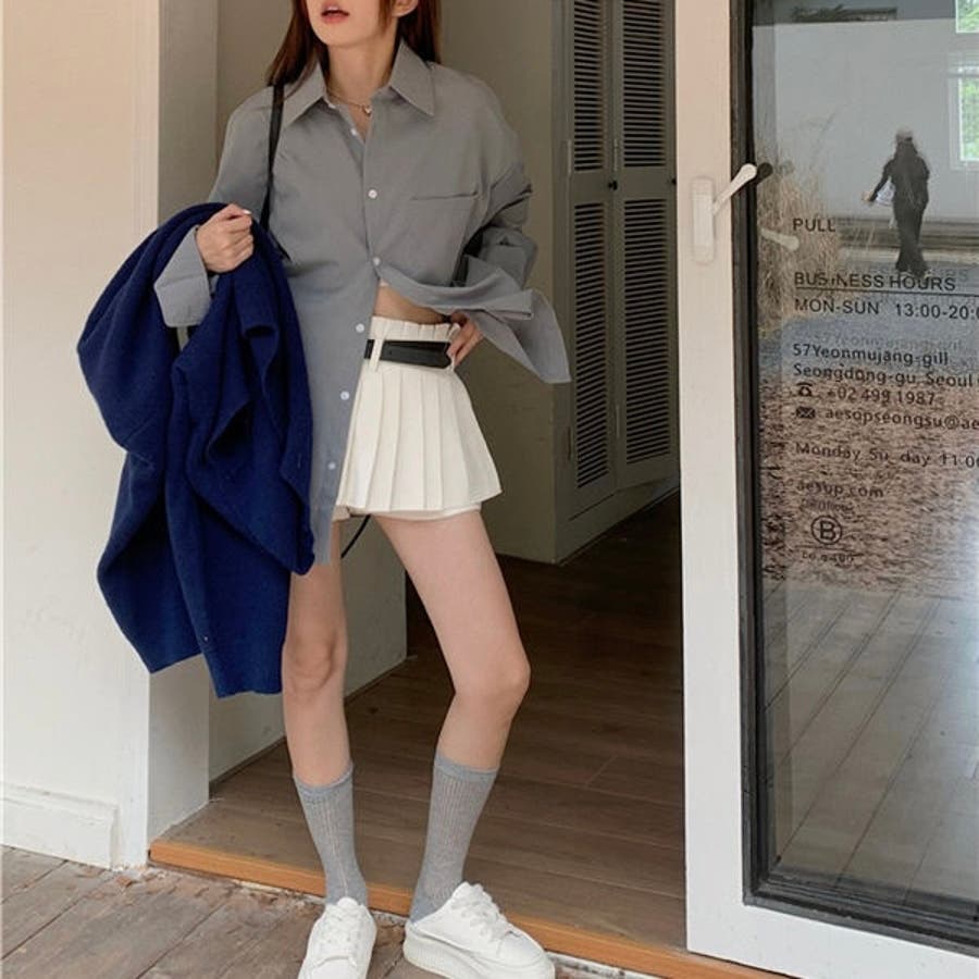 シャツを軽くインしてプリーツスカートを合わせると、きれいめカジュアルな雰囲気に。足元はローファーを選んで、上品なトラッドスタイルを楽しんで。