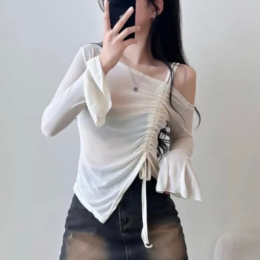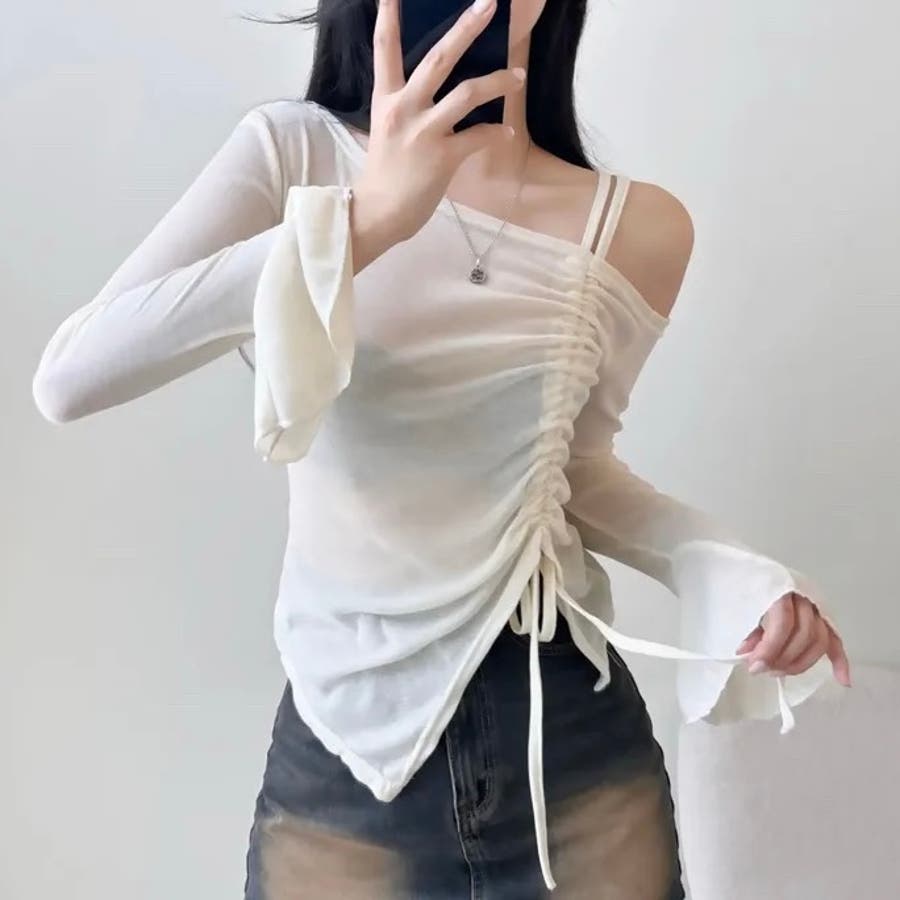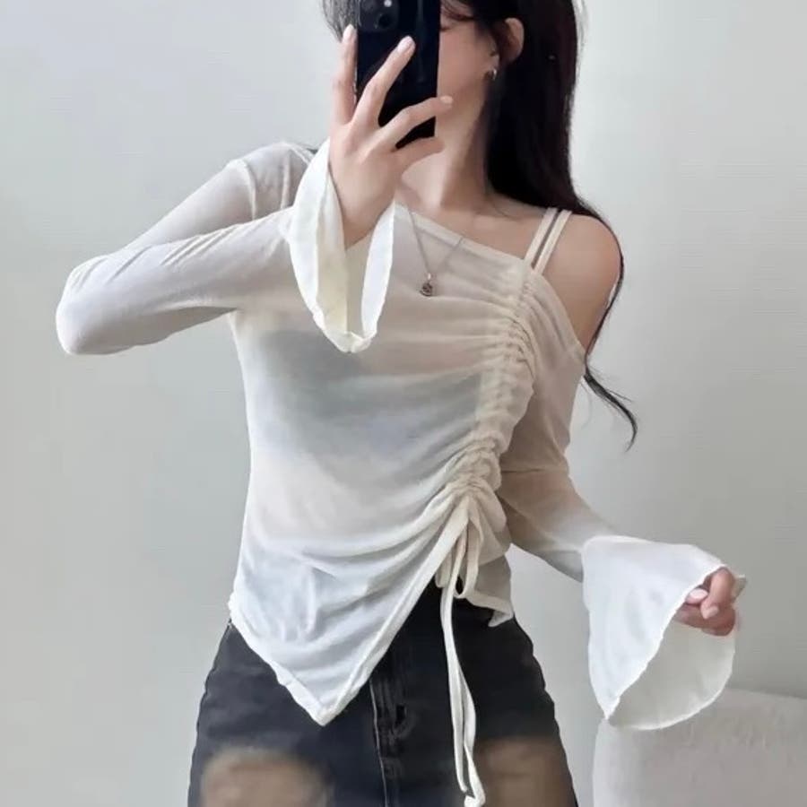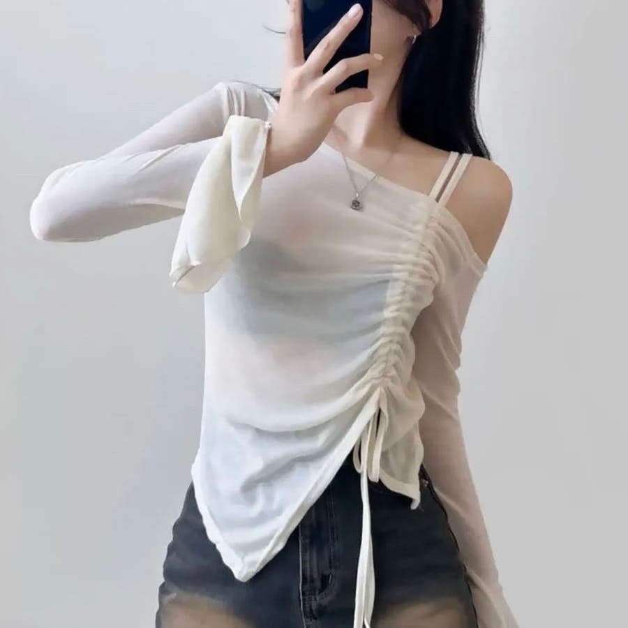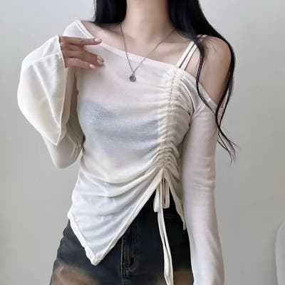 大人 カジュアル きれいめ 韓国ファッション 韓国コーデ 透け感 モード シャーリング ギャザー Y2K オフィスカジュアル 春服 夏服 秋服 10代 20代 30代 40代 春 夏 秋