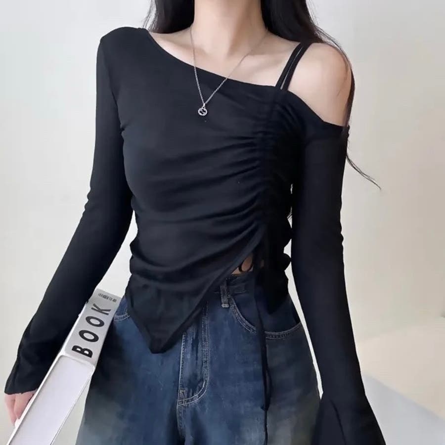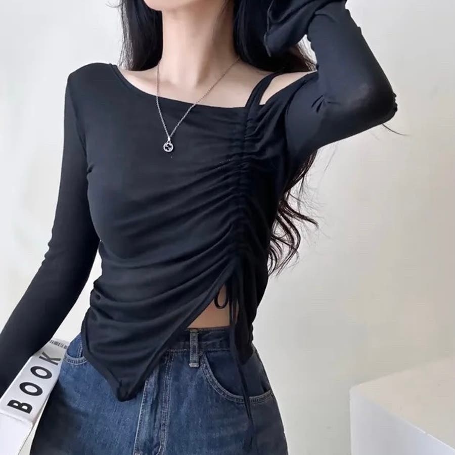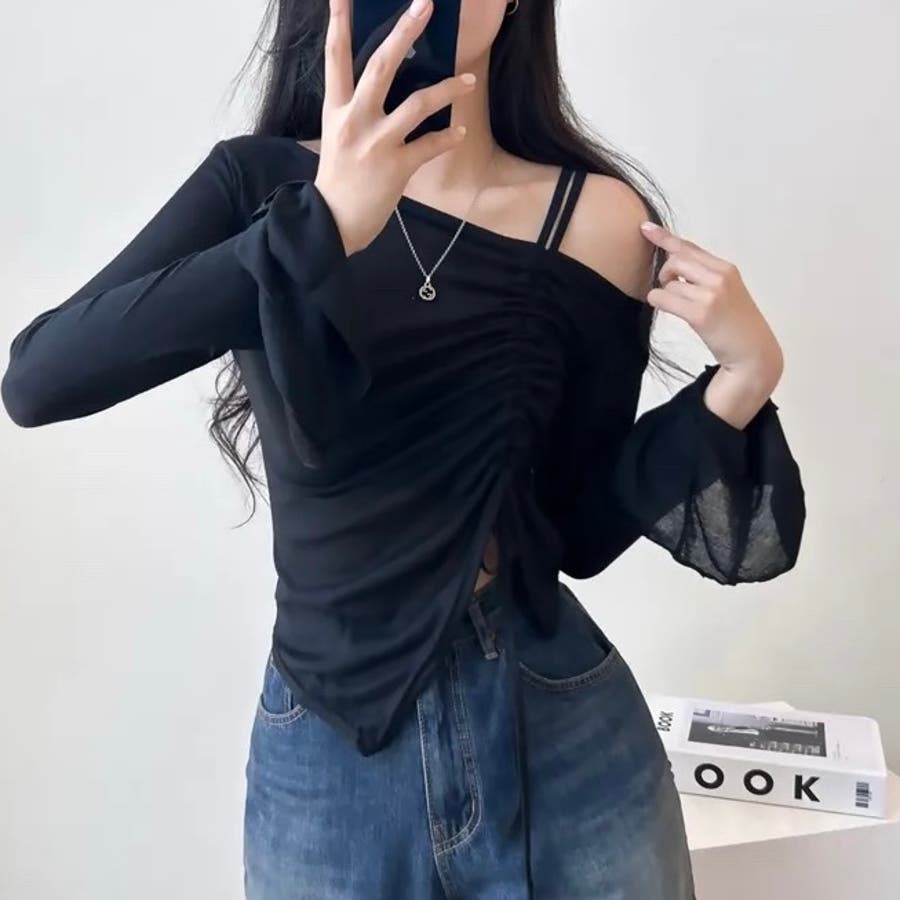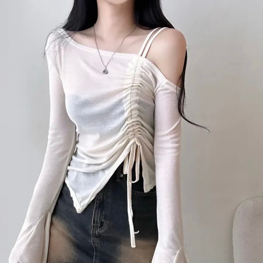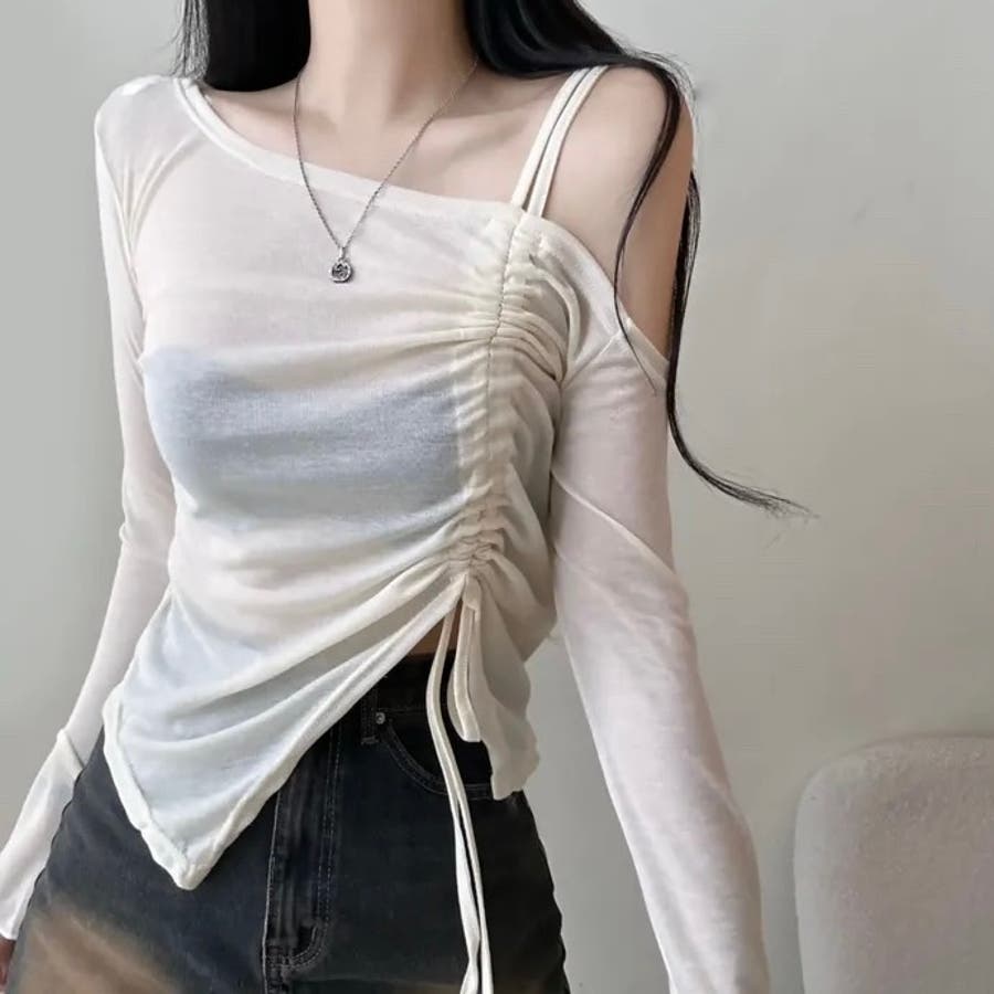 大人 カジュアル きれいめ 韓国ファッション 韓国コーデ 透け感 モード シャーリング ギャザー Y2K オフィスカジュアル 春服 夏服 秋服 10代 20代 30代 40代 春 夏 秋