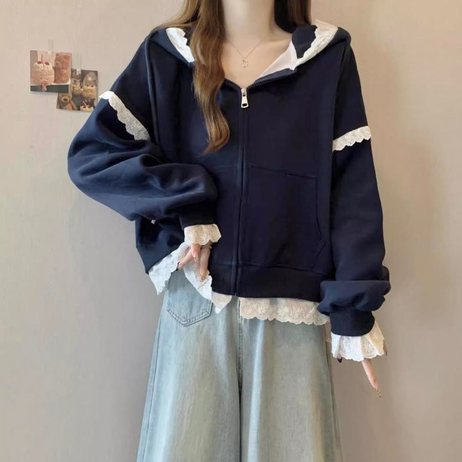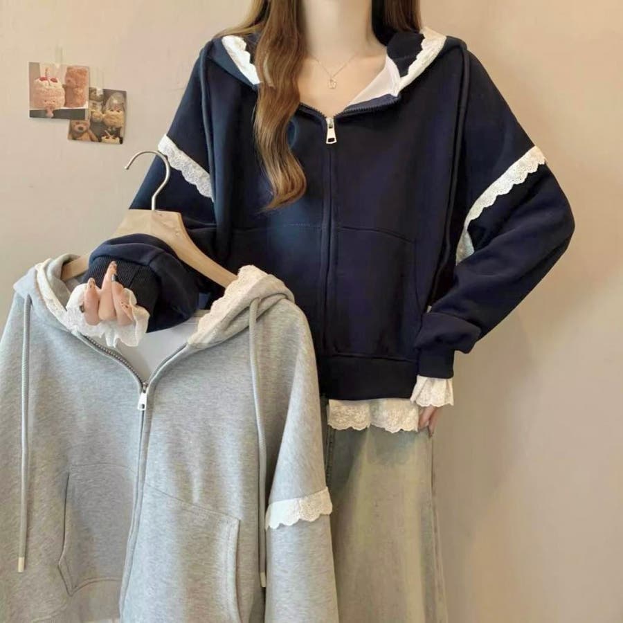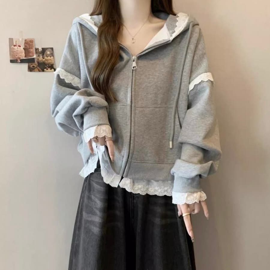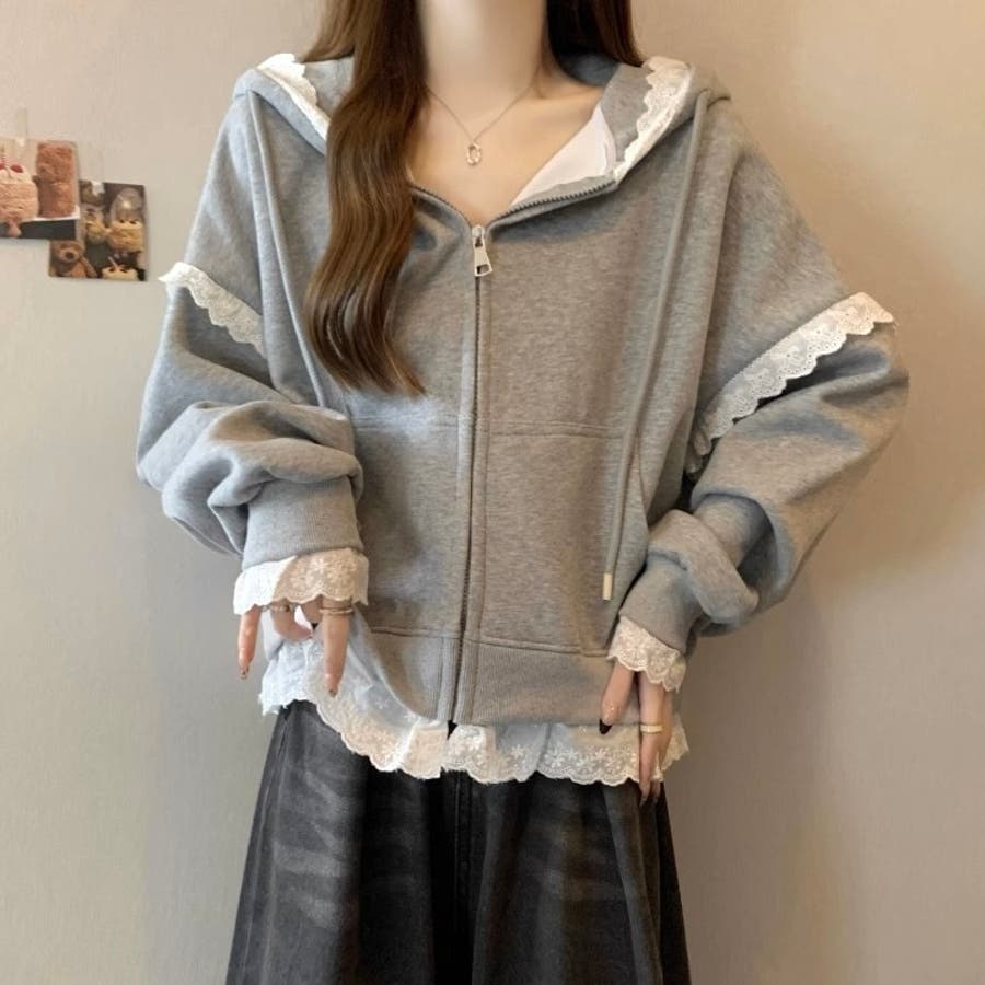 【春夏新作】レーストリミングガーリージップパーカー