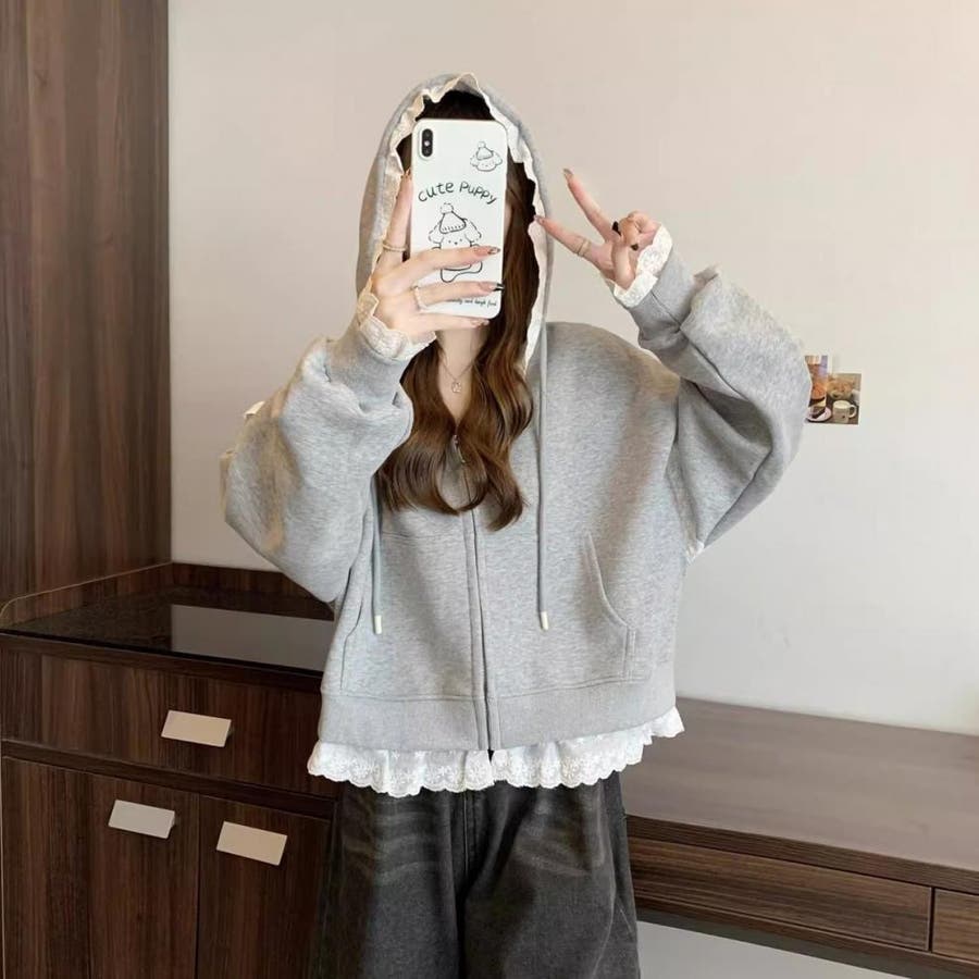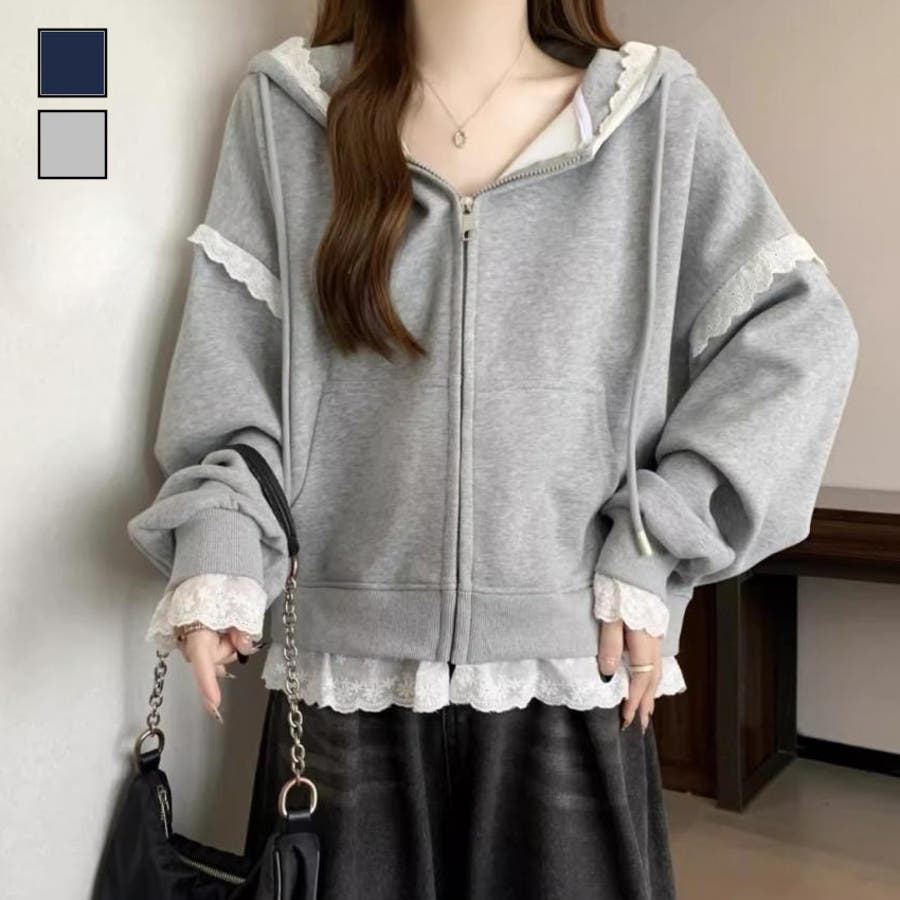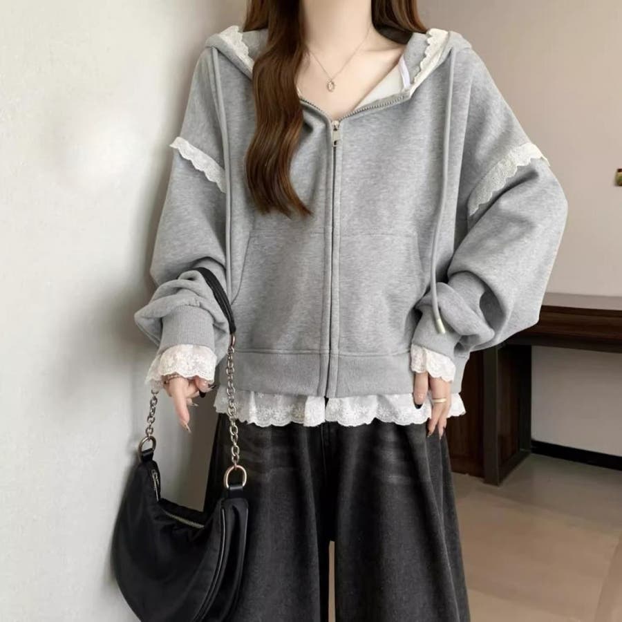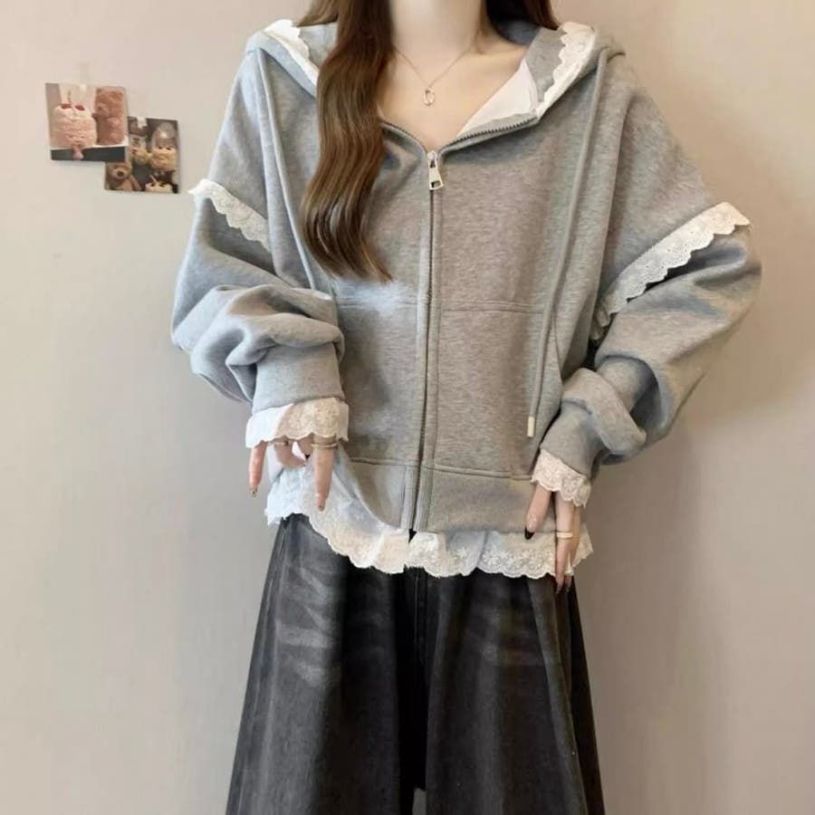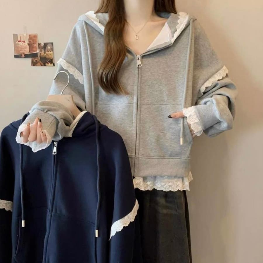 【春夏新作】レーストリミングガーリージップパーカー