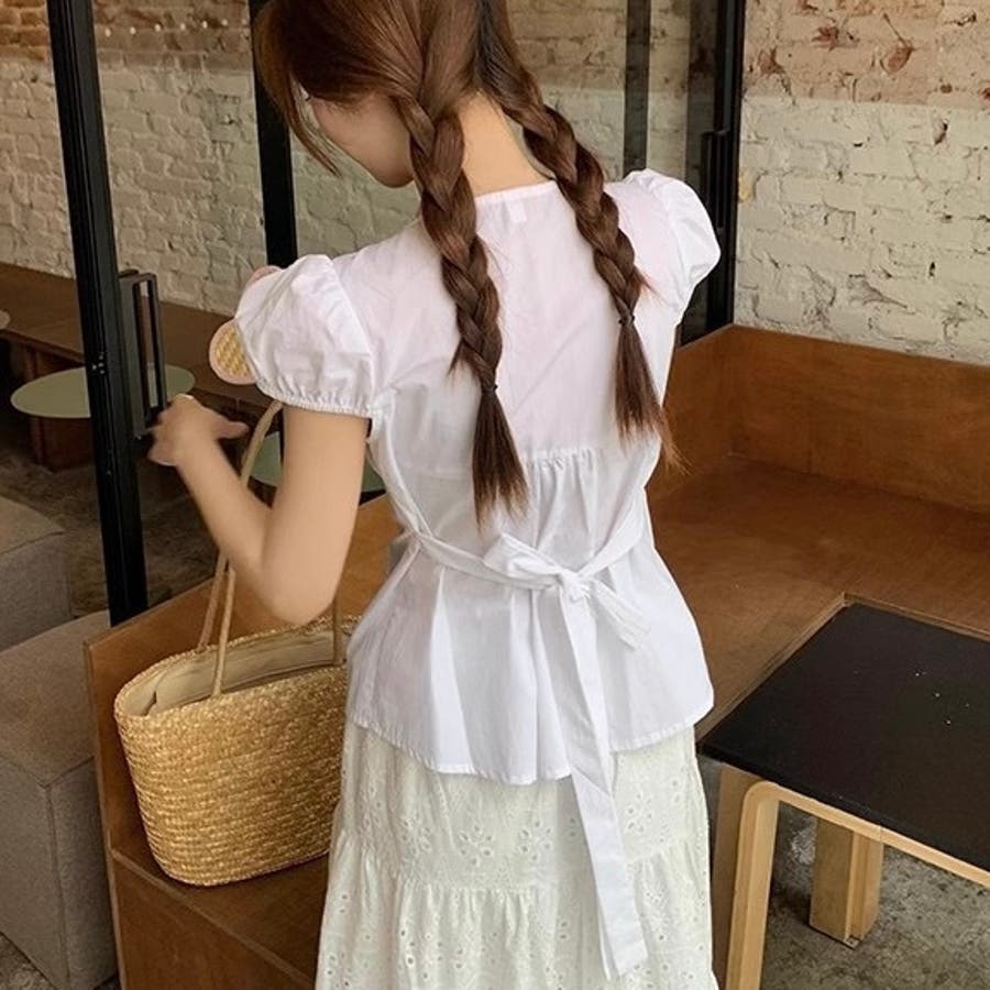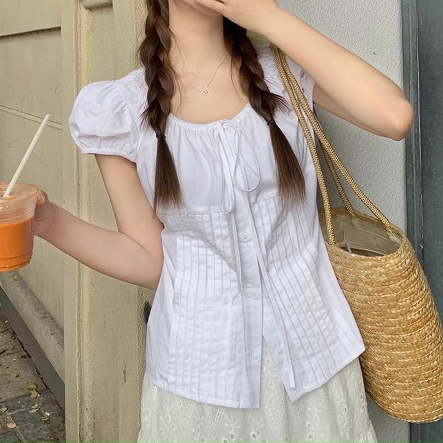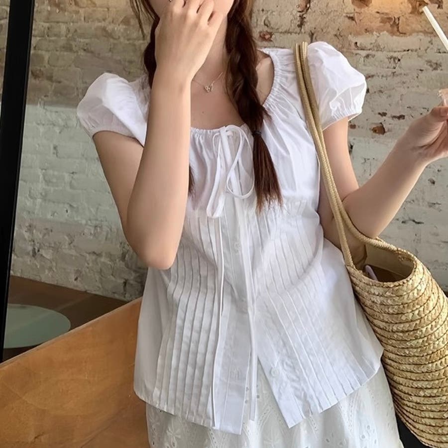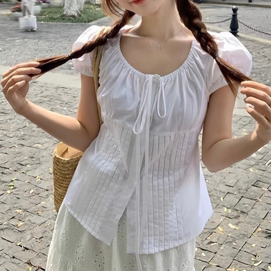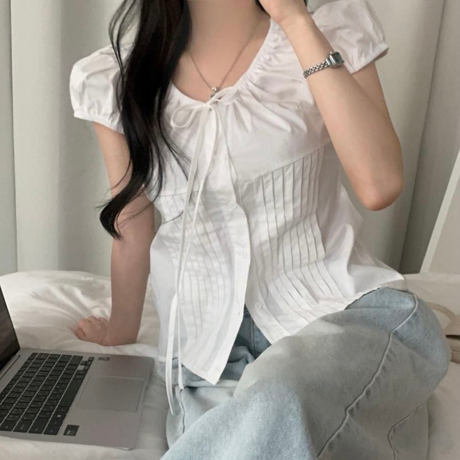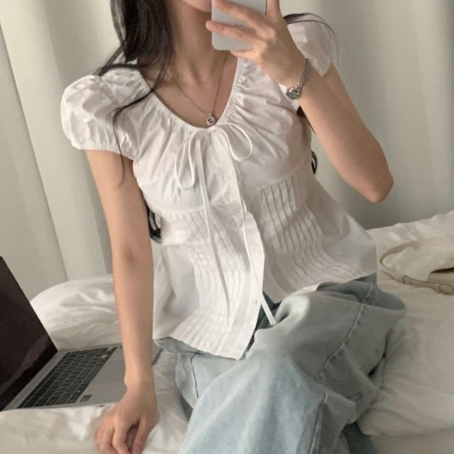 大人 カジュアル きれいめ シャツ ガーリー フェミニン フレンチスリーブ 半袖 通勤 通学 韓国ファッション 韓国コーデ Y2K オフィスカジュアル 春服 夏服 秋服 10代 20代 30代 40代 春 夏 秋