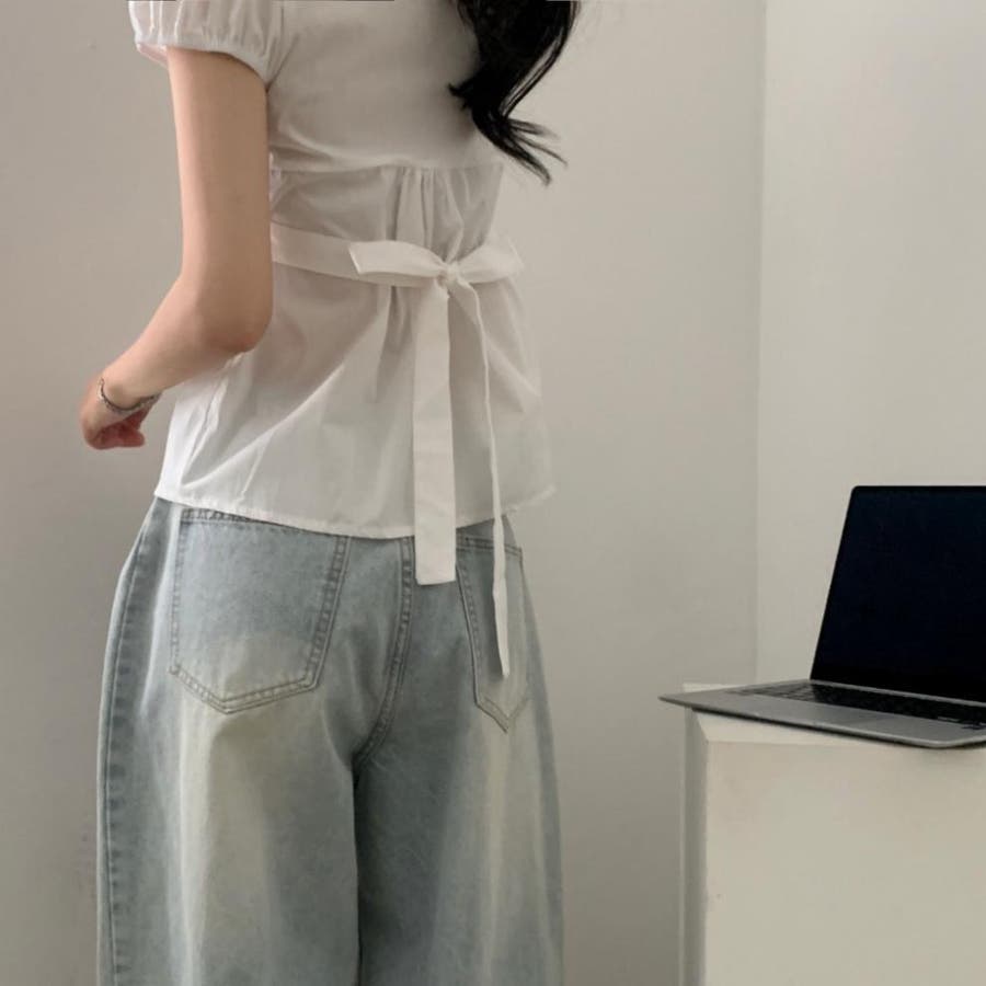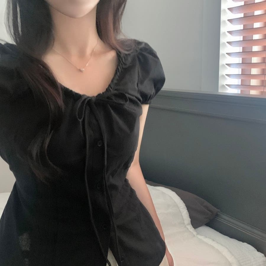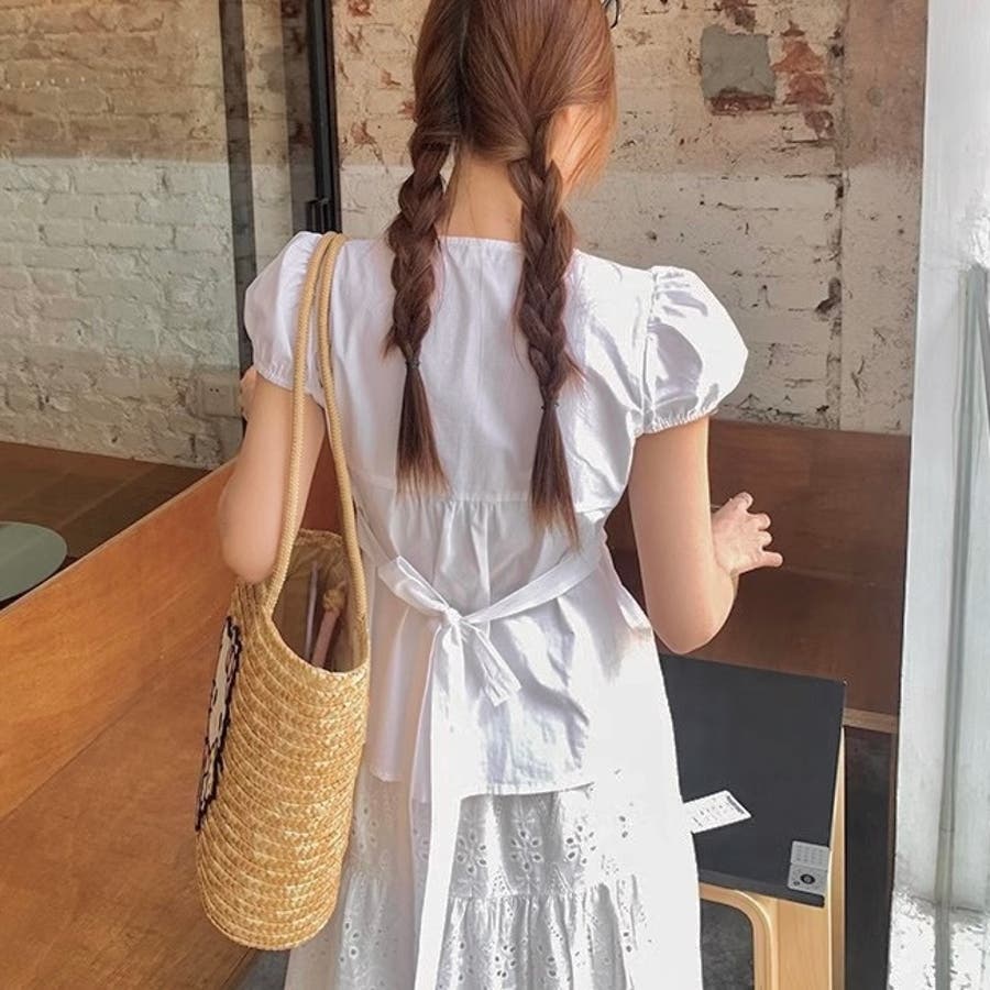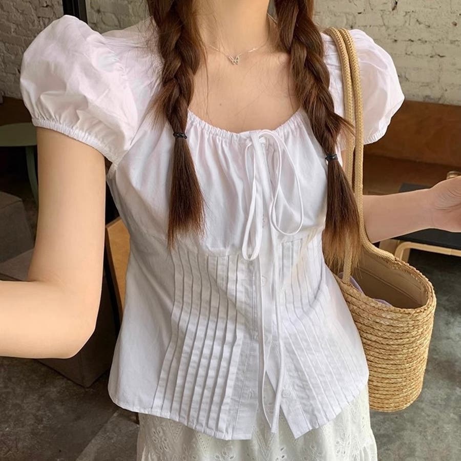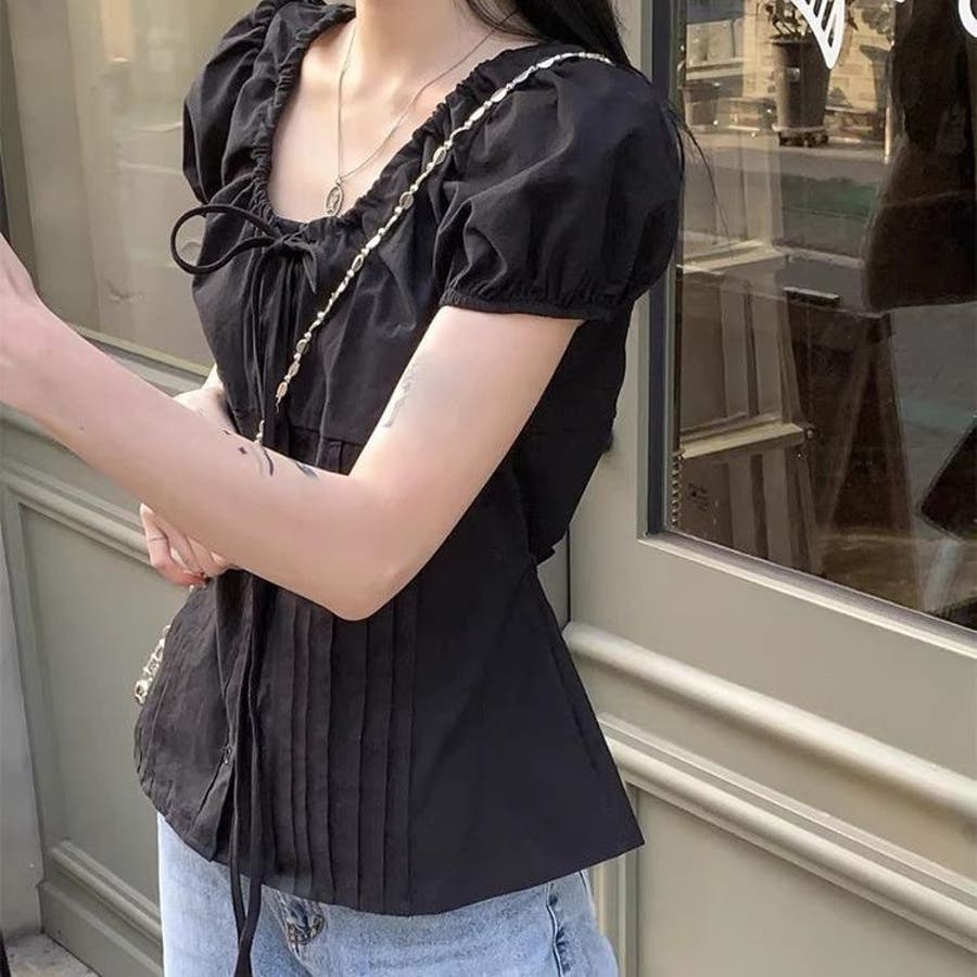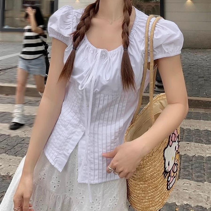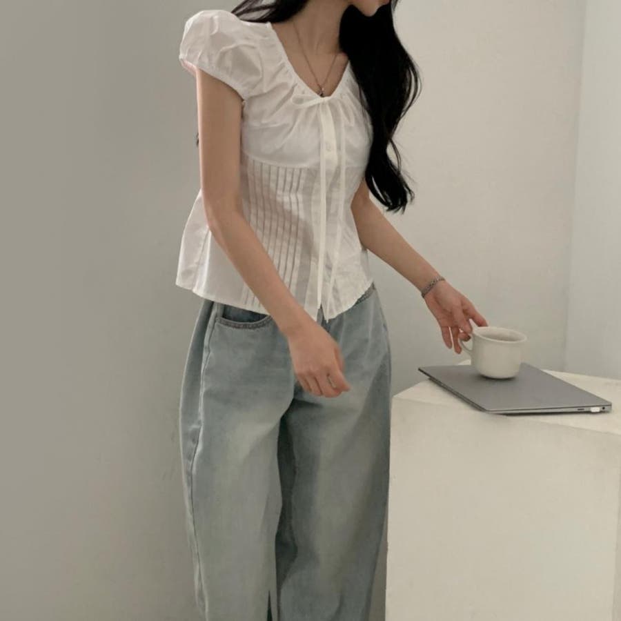 大人 カジュアル きれいめ シャツ ガーリー フェミニン フレンチスリーブ 半袖 通勤 通学 韓国ファッション 韓国コーデ Y2K オフィスカジュアル 春服 夏服 秋服 10代 20代 30代 40代 春 夏 秋