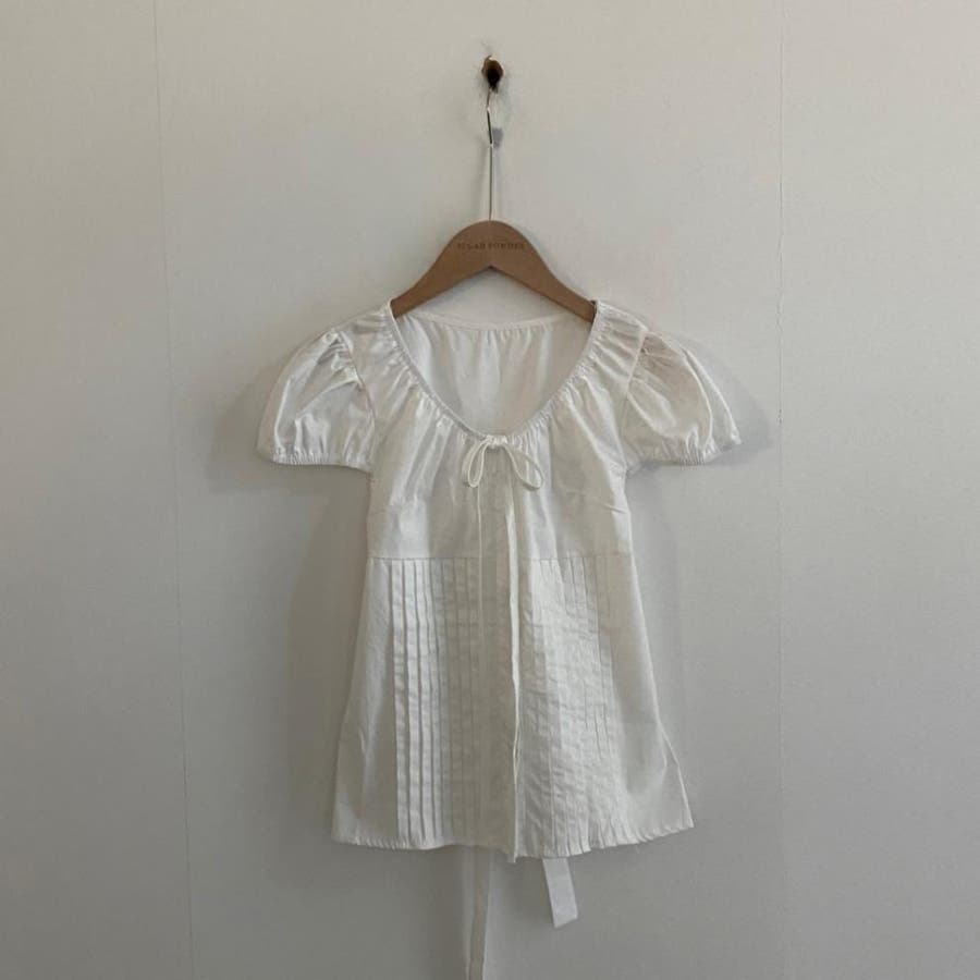 【春夏新作】胸リボンピンタックパフスリーブブラウス