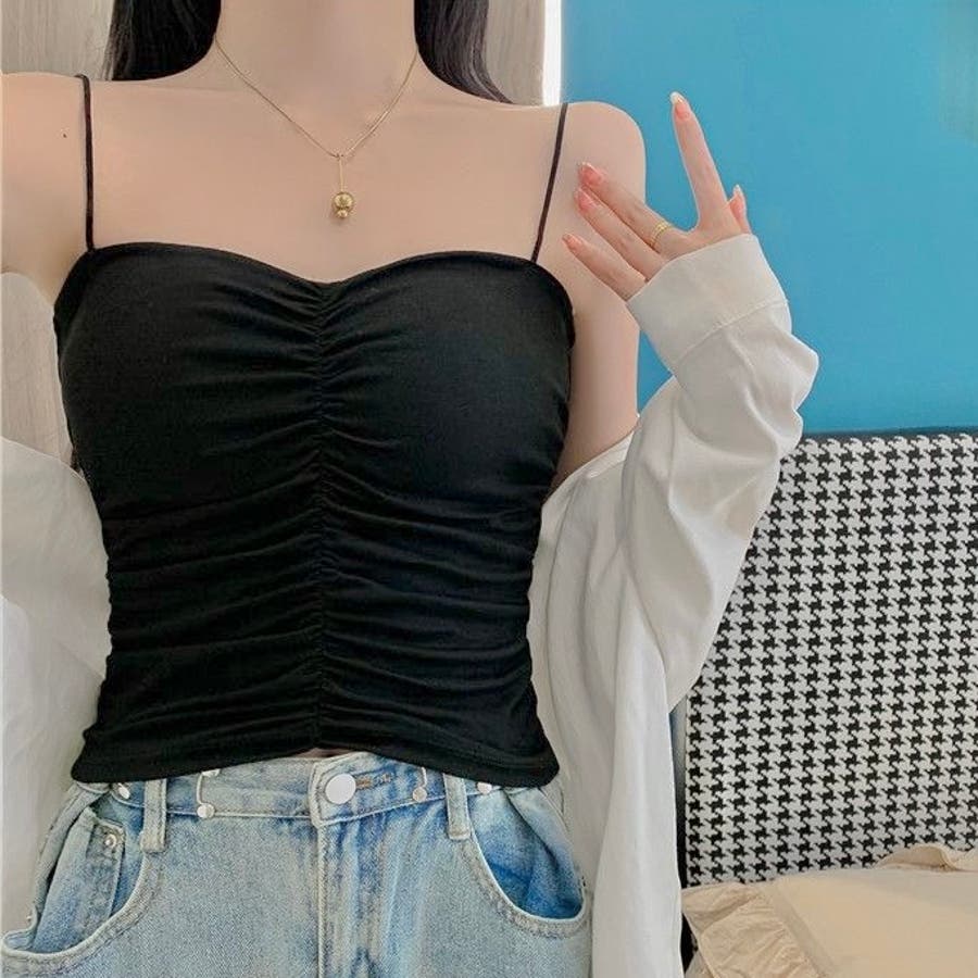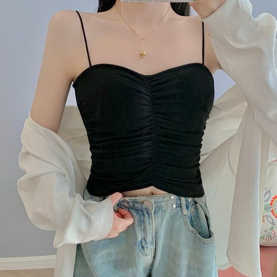 大人 カジュアル きれいめ 韓国ファッション 韓国コーデ Y2K オフィスカジュアル 肌見せ インナー くしゅくしゅ セクシー 肩出し 春服 夏服 秋服 10代 20代 30代 40代 春 夏 秋