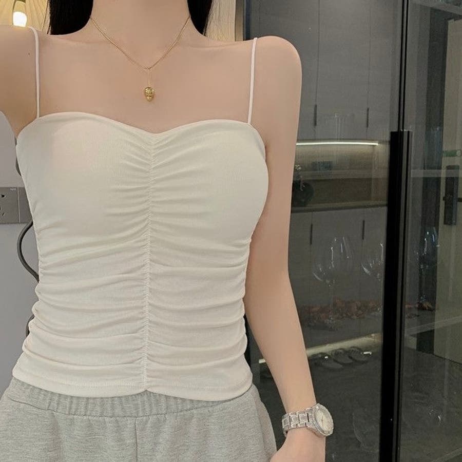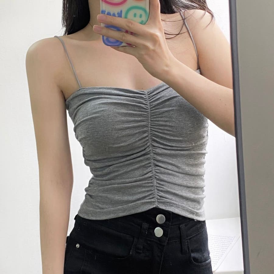【春夏新作】カップ付きセンターギャザーキャミソール