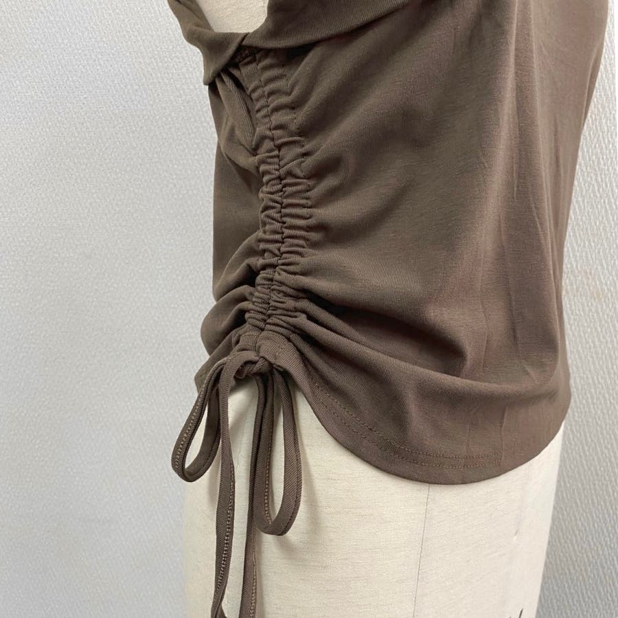 柔らかく伸縮性に優れた素材を使用し、ボディラインに程よくフィットして女性らしいシルエットを引き立てます。