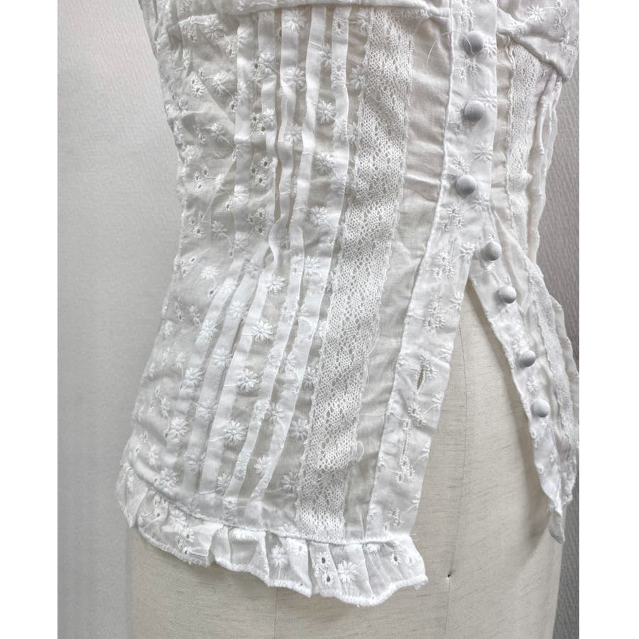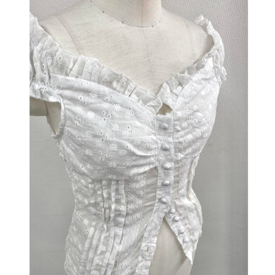 フェミニンな雰囲気漂うレース調のフロントボタンブラウスが登場。
