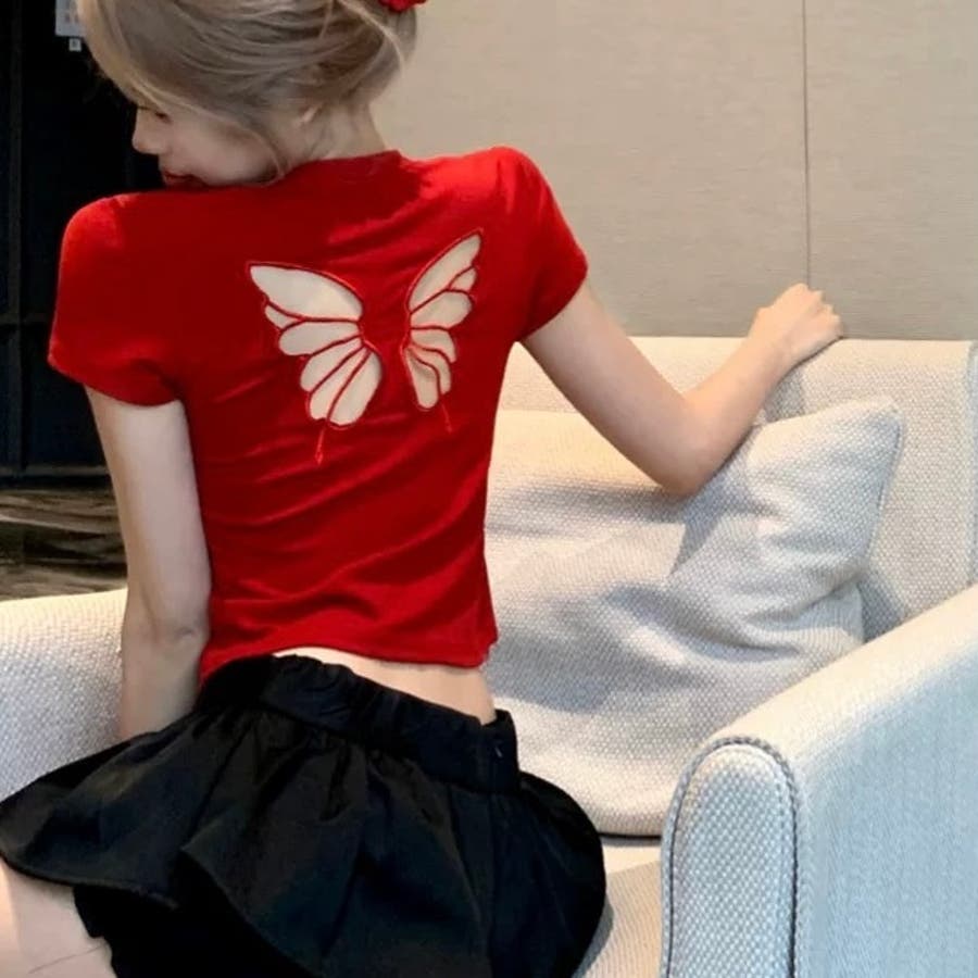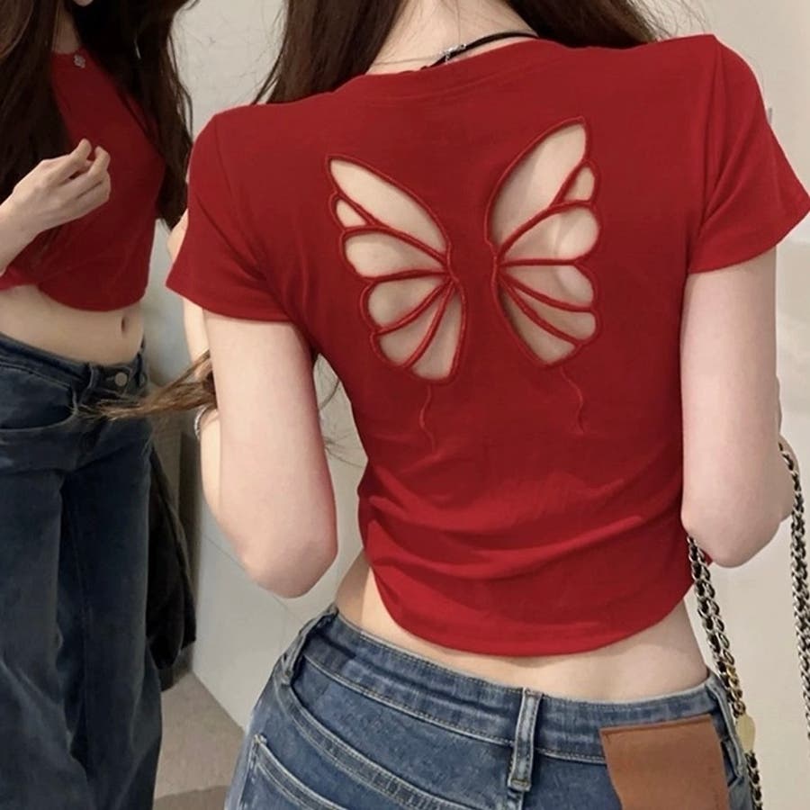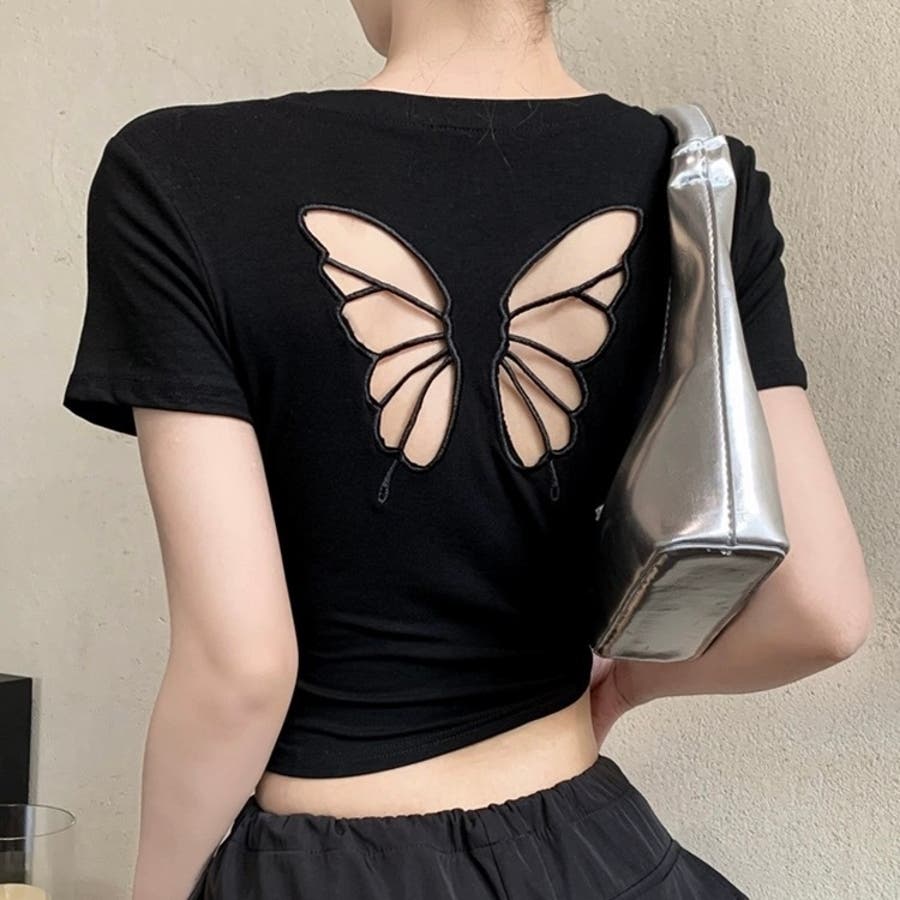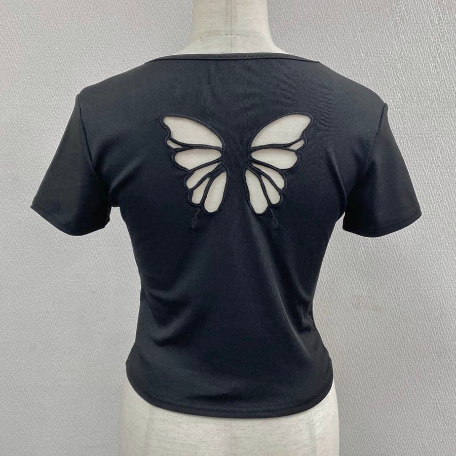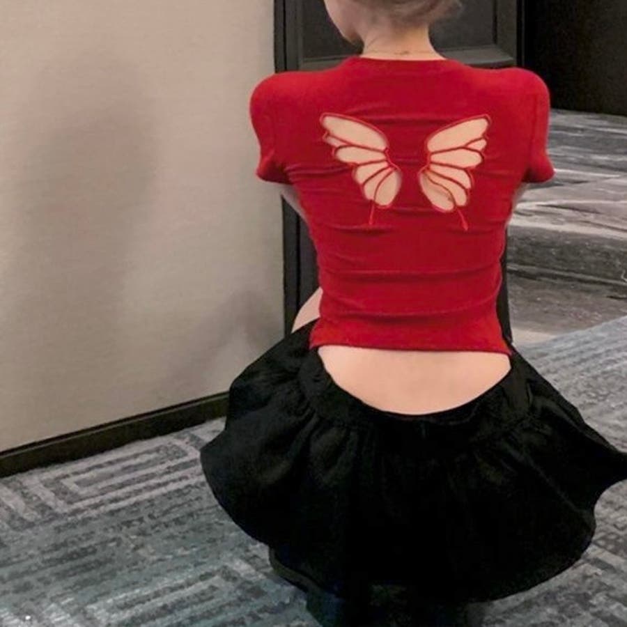 大人 カジュアル きれいめ コンパクト 蝶 チョウ セクシー 肌見せ 背中開き クラブ フェス 韓国ファッション 韓国コーデ Y2K オフィスカジュアル 春服 夏服 秋服 10代 20代 30代 40代 春 夏 秋