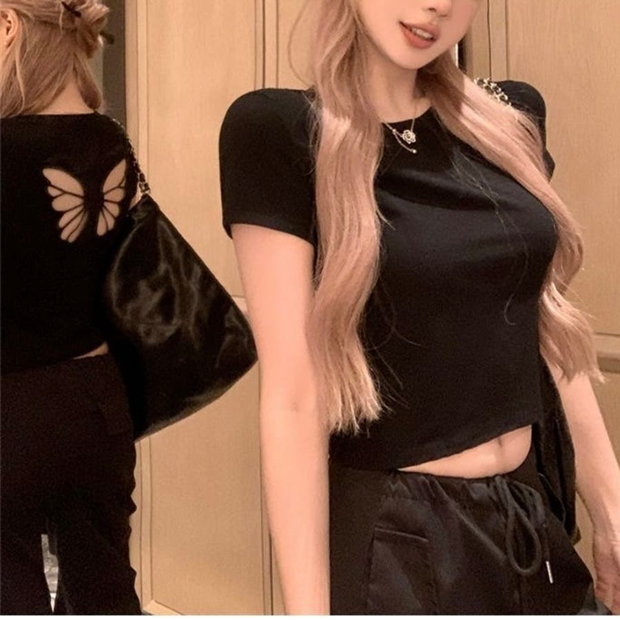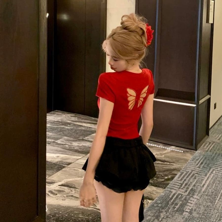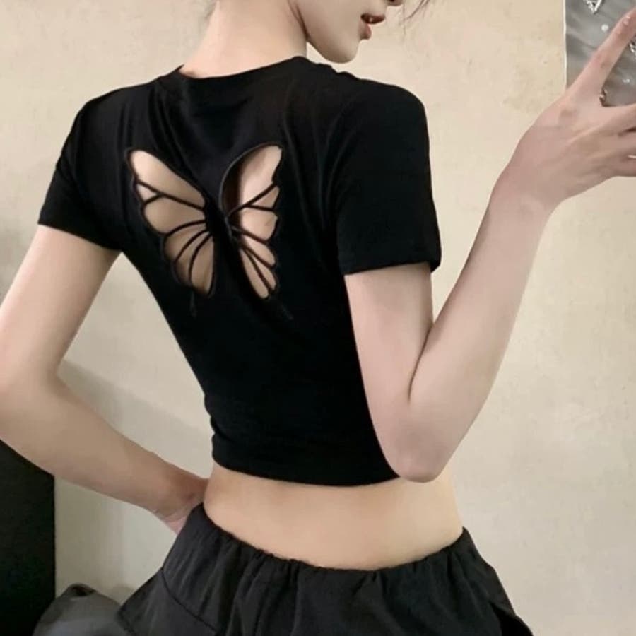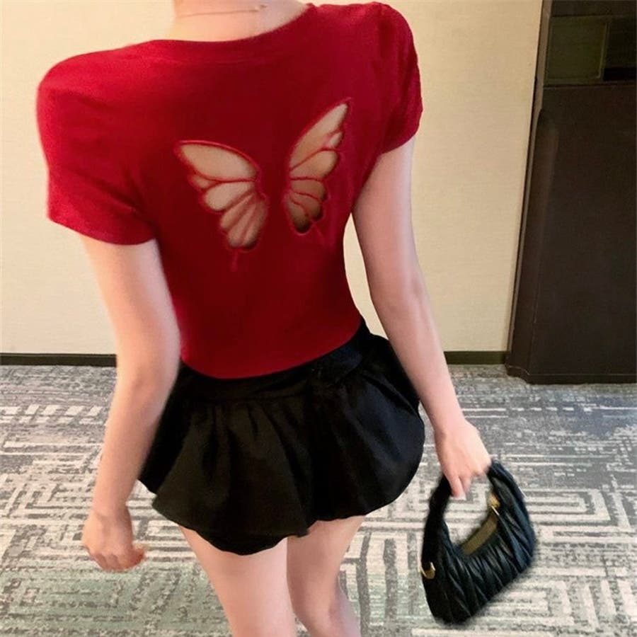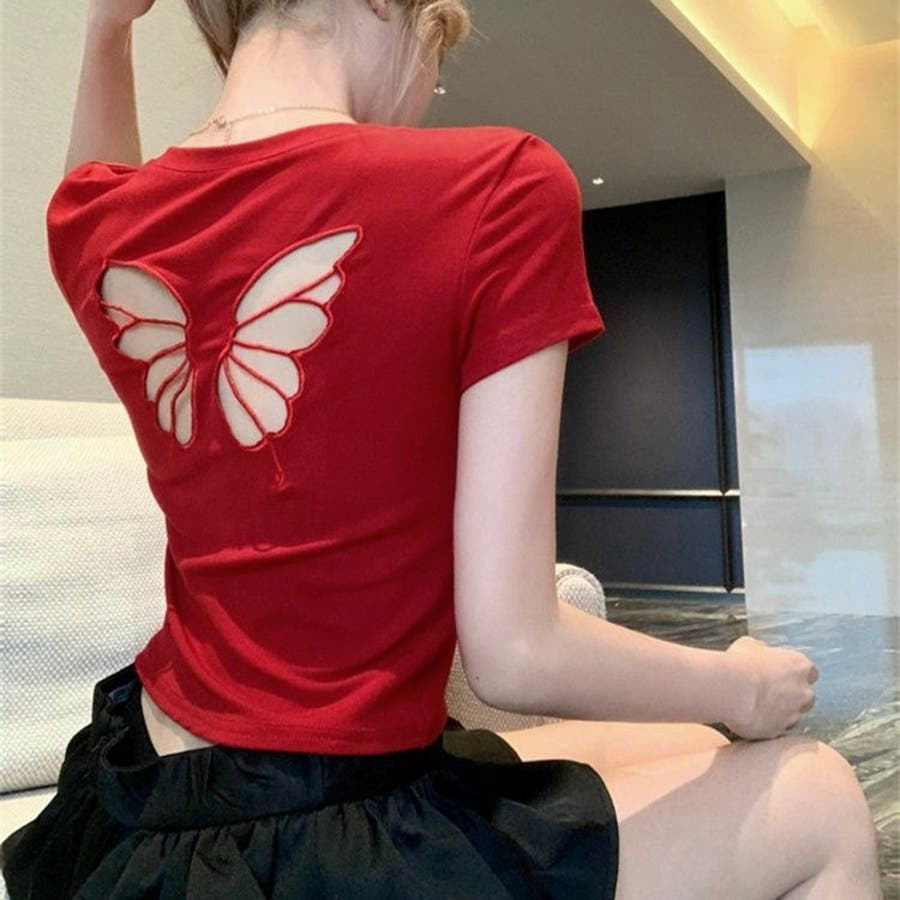 大人 カジュアル きれいめ コンパクト 蝶 チョウ セクシー 肌見せ 背中開き クラブ フェス 韓国ファッション 韓国コーデ Y2K オフィスカジュアル 春服 夏服 秋服 10代 20代 30代 40代 春 夏 秋