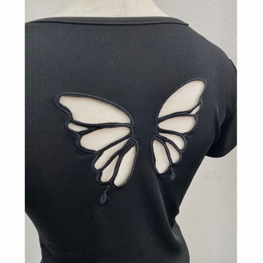 【春夏新作】バック刺繍バタフライ柄肌見せTシャツ