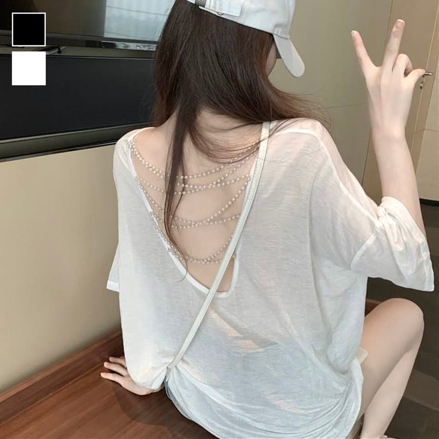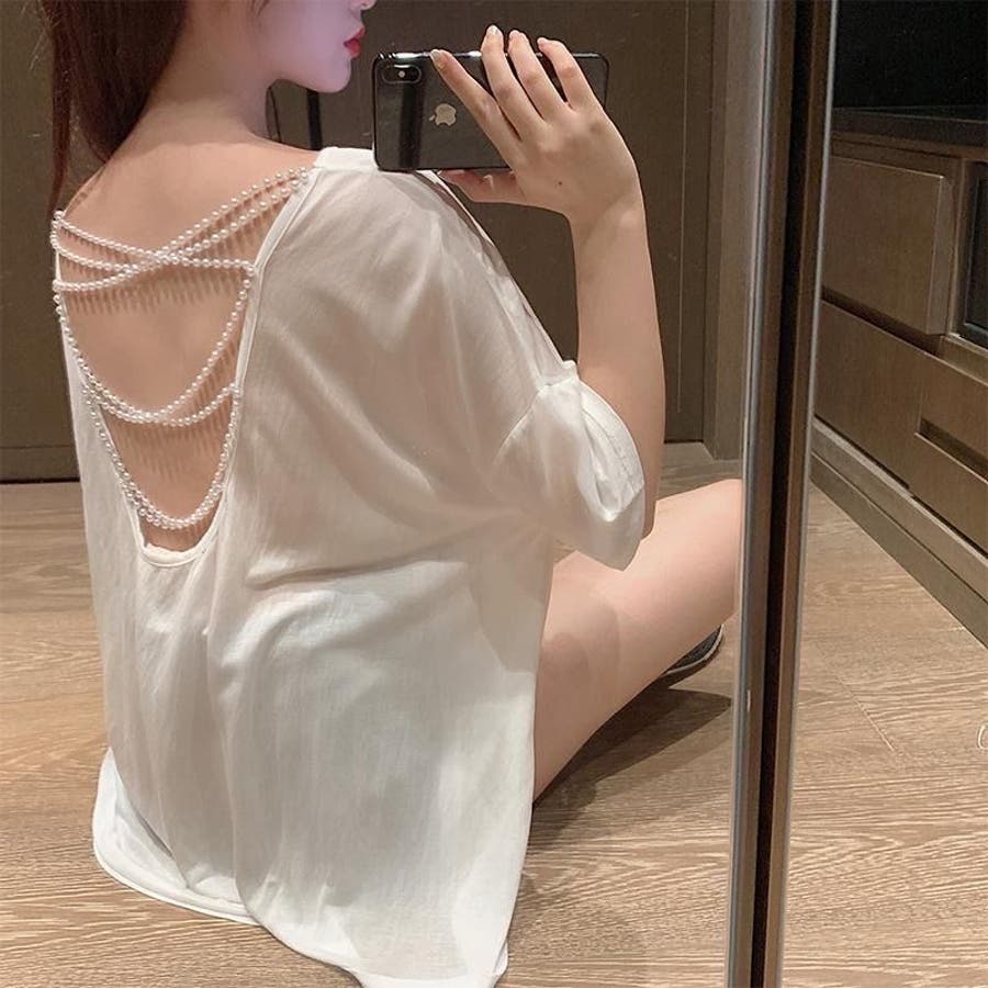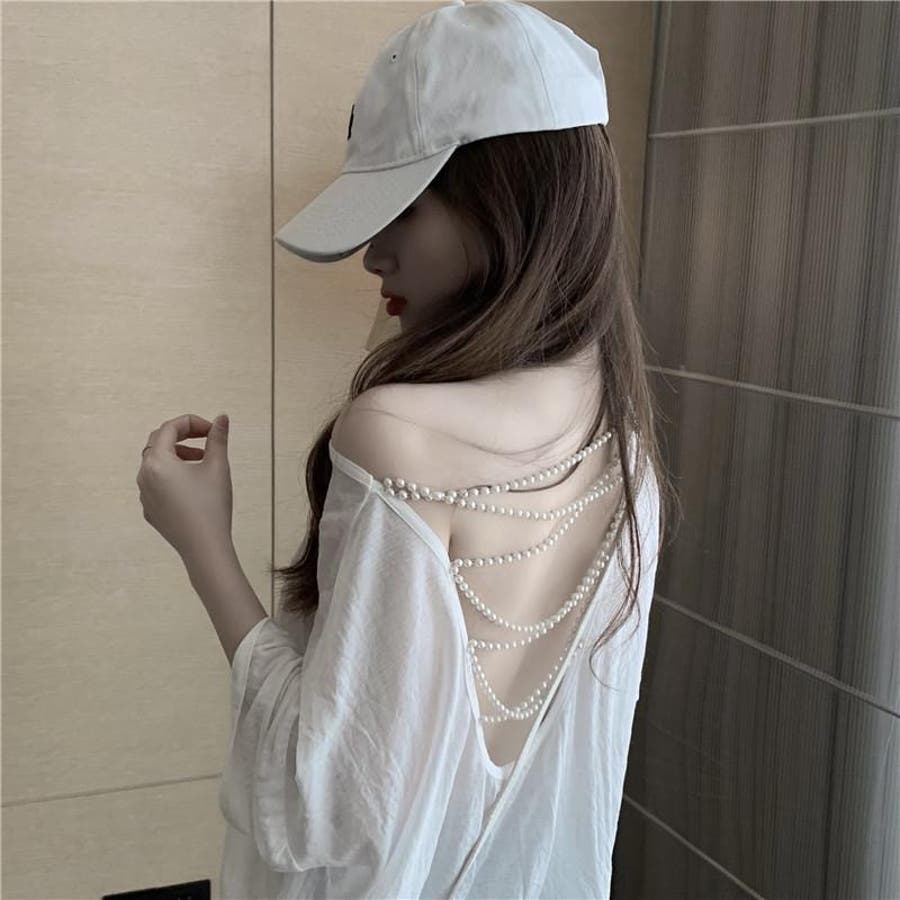 【春夏新作】パールクロス背中開きトップス