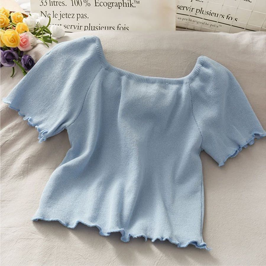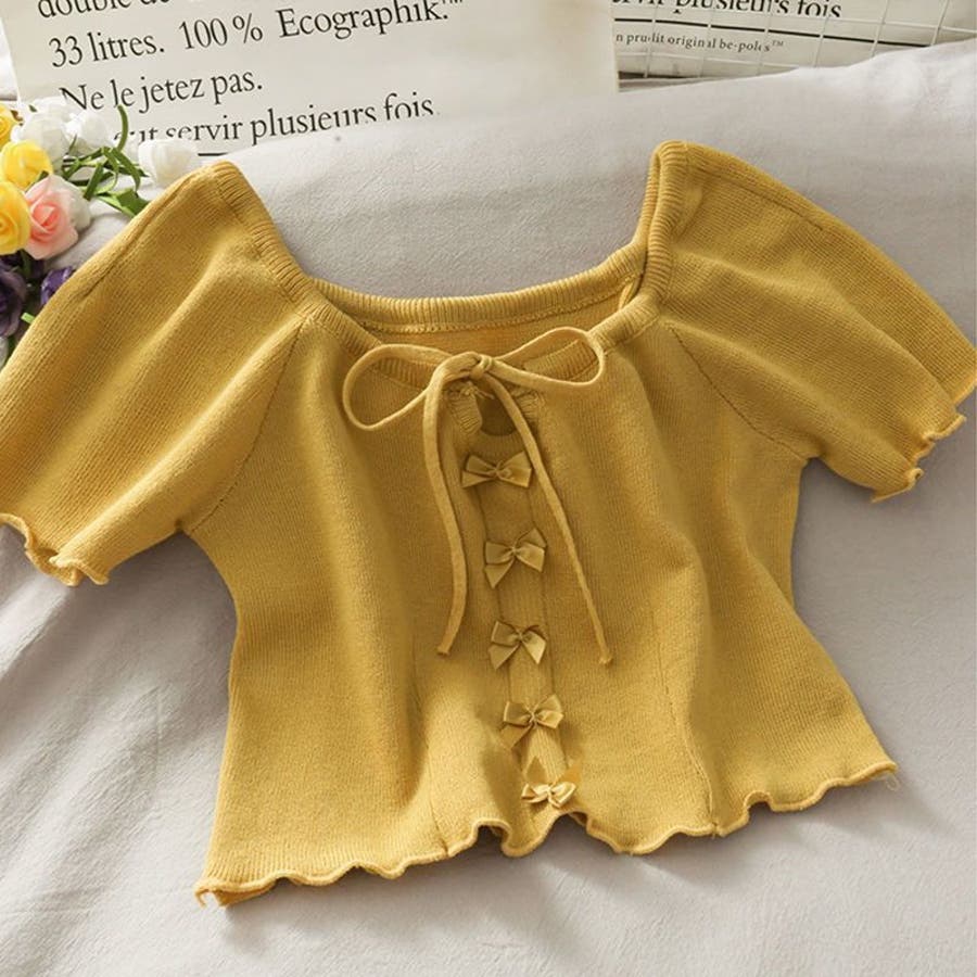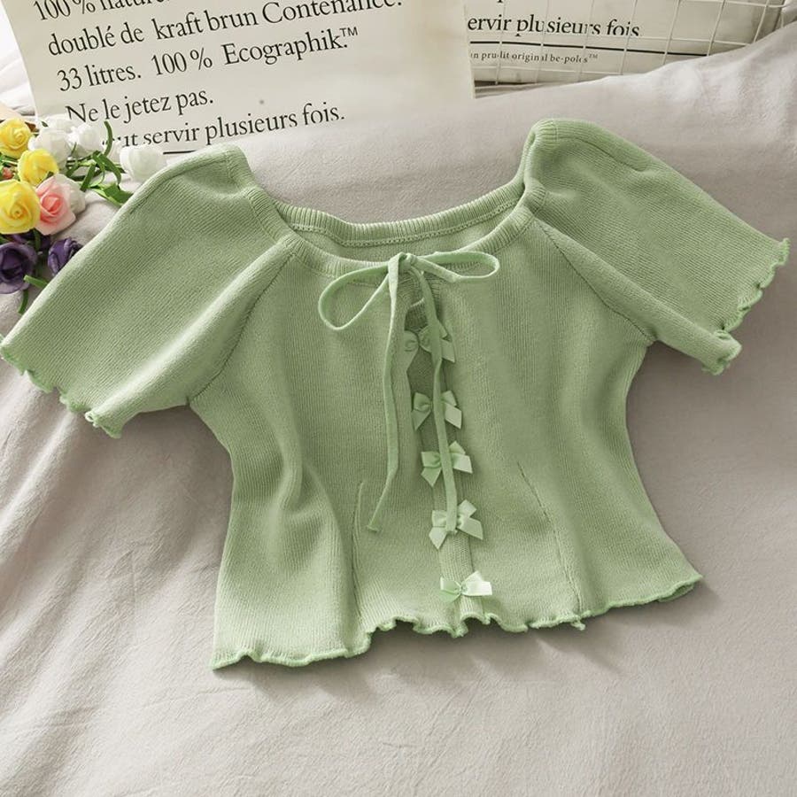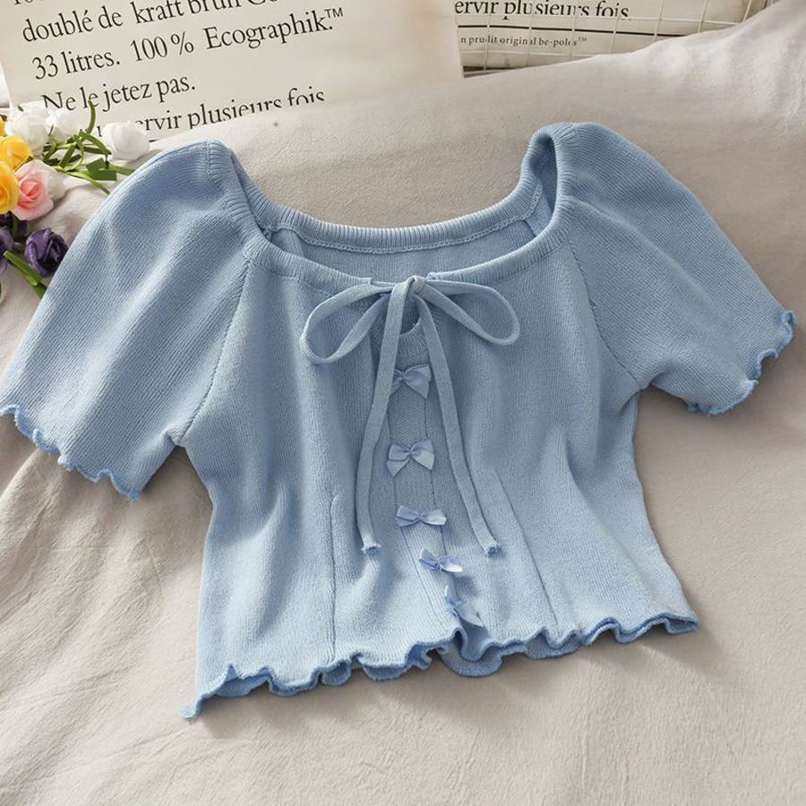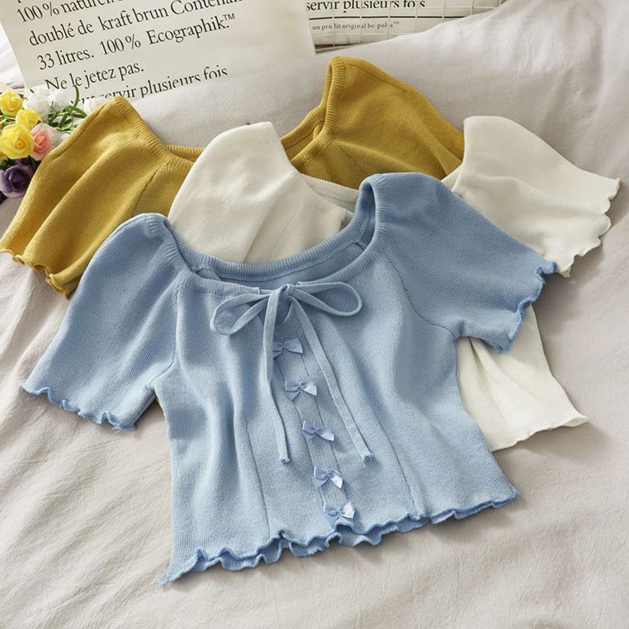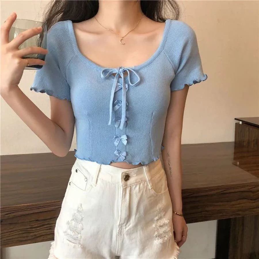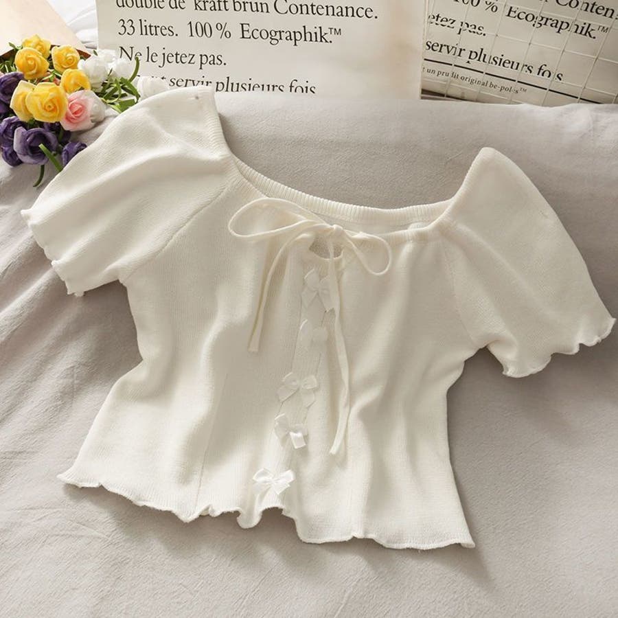 大人 カジュアル きれいめ 韓国ファッション 韓国コーデ Y2K オフィスカジュアル フェミニン ガーリー 半袖 サマーニット トップス 春服 夏服 秋服 10代 20代 30代 40代 春 夏 秋