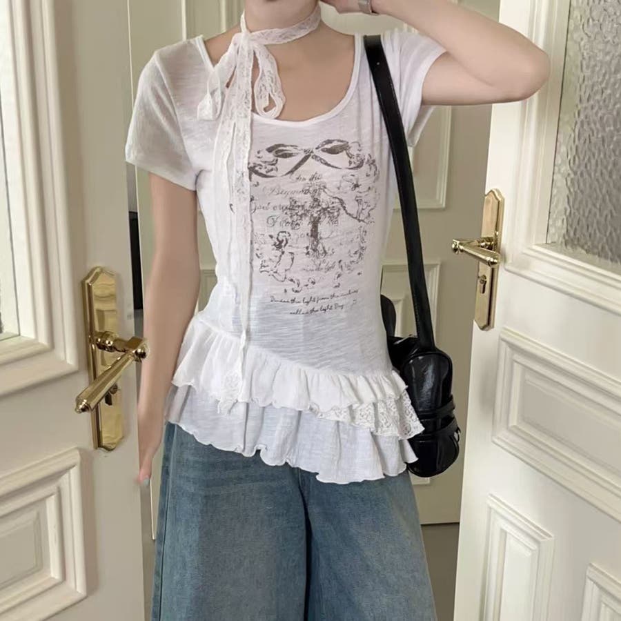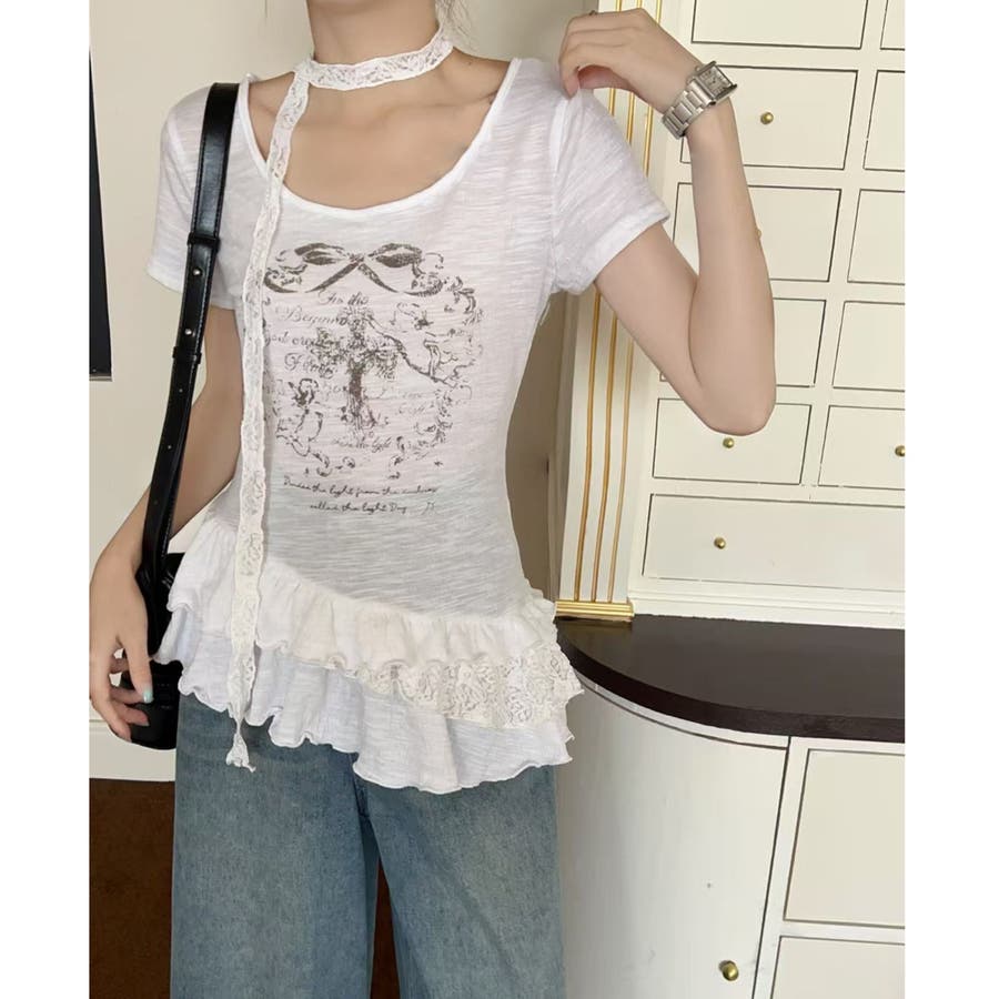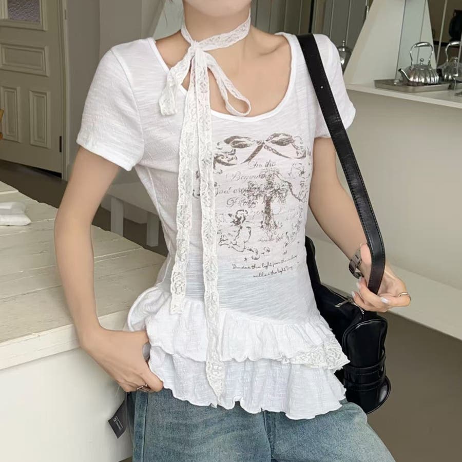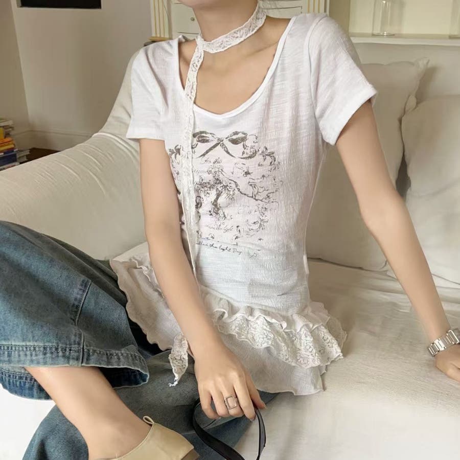 大人 カジュアル きれいめ 韓国ファッション 韓国コーデ Y2K オフィスカジュアル レース ガーリー フェミニン 半袖 フリル 春服 夏服 秋服 10代 20代 30代 40代 春 夏 秋