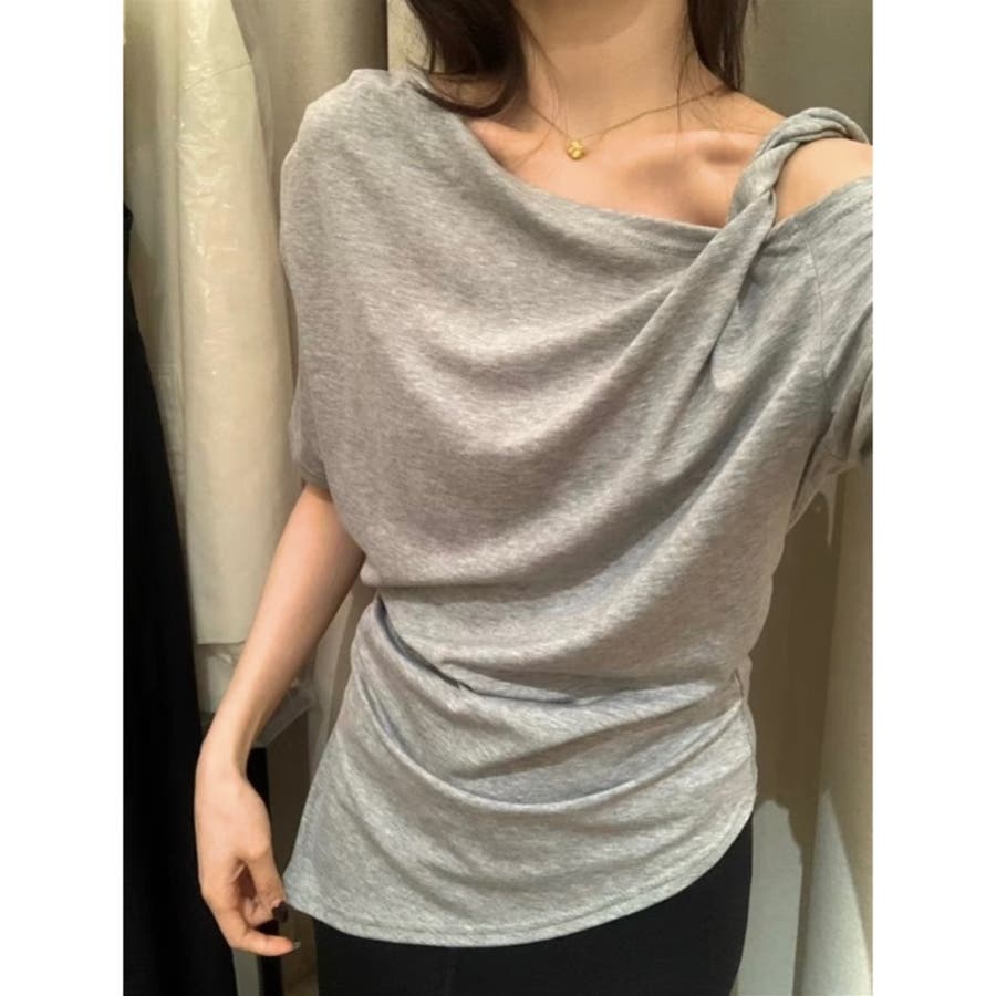 アシンメトリーデザインが印象的なワンショルダートップスは、モード感とリラックス感を兼ね備えたアイテムです。