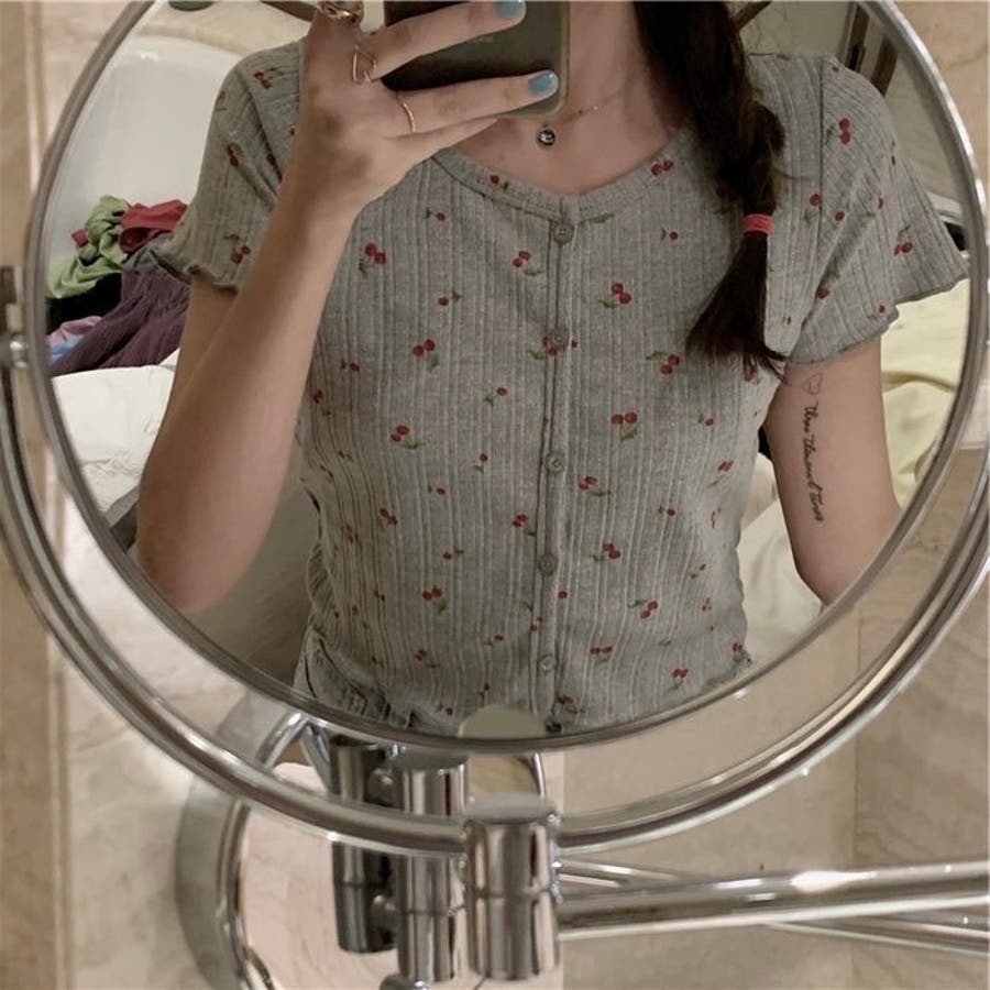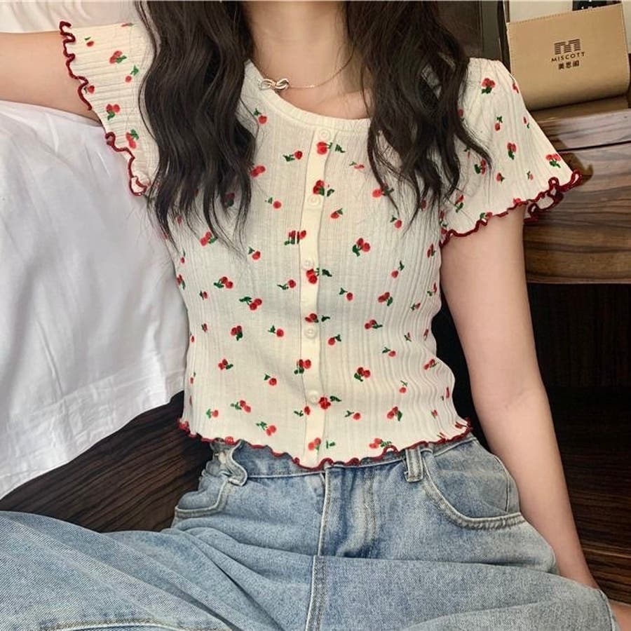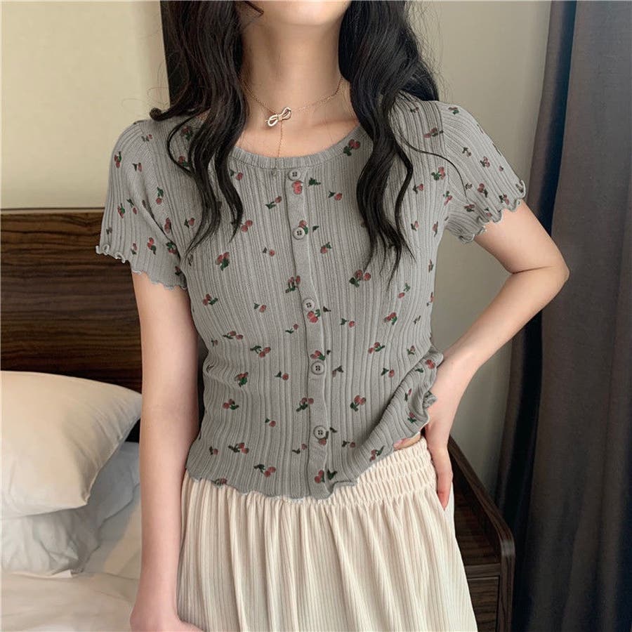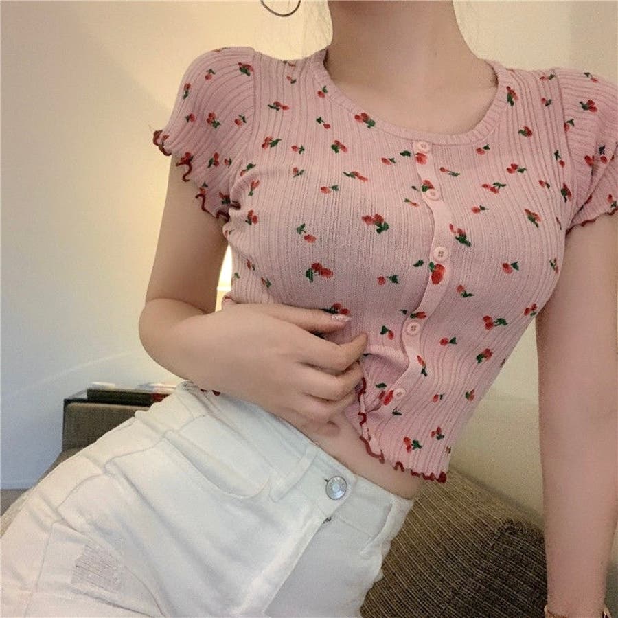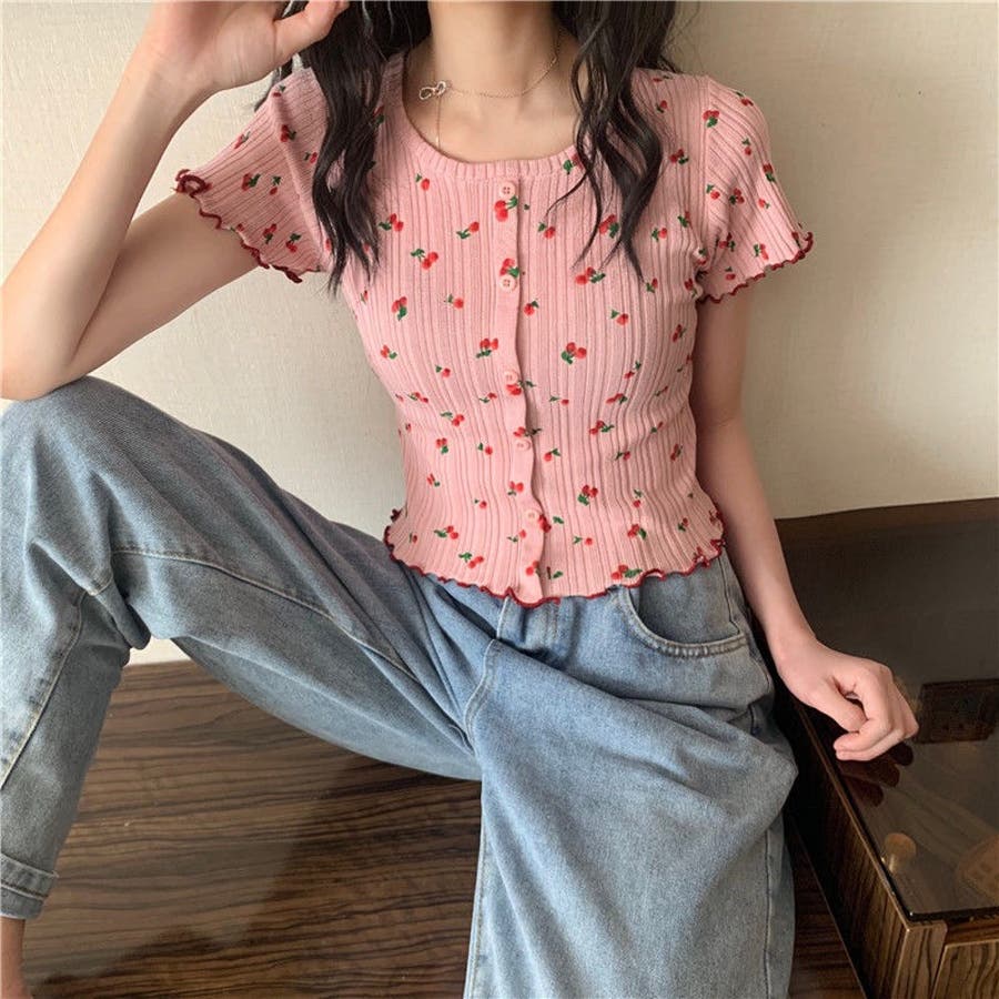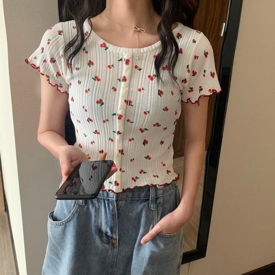 大人 カジュアル きれいめ 韓国ファッション 韓国コーデ Y2K オフィスカジュアル 春服 夏服 秋服 半袖 ニット サマーニット Tシャツ フェミニン ガーリー キュート さくらんぼ 10代 20代 30代 40代 春 夏 秋